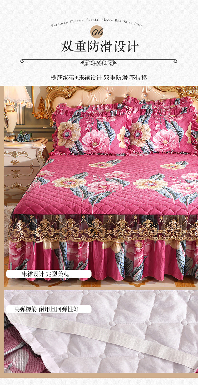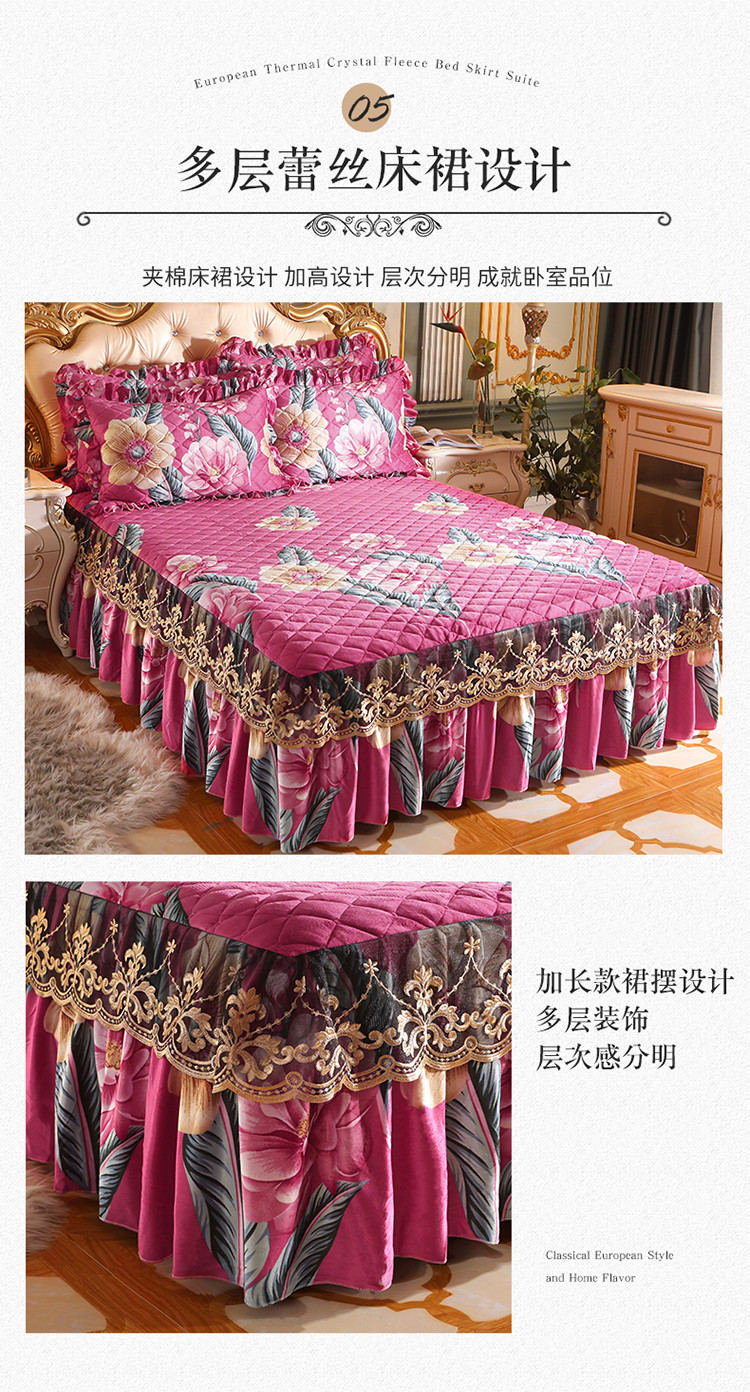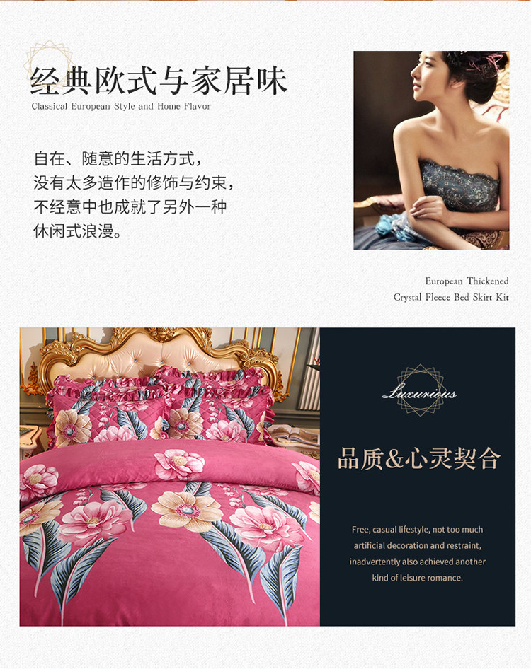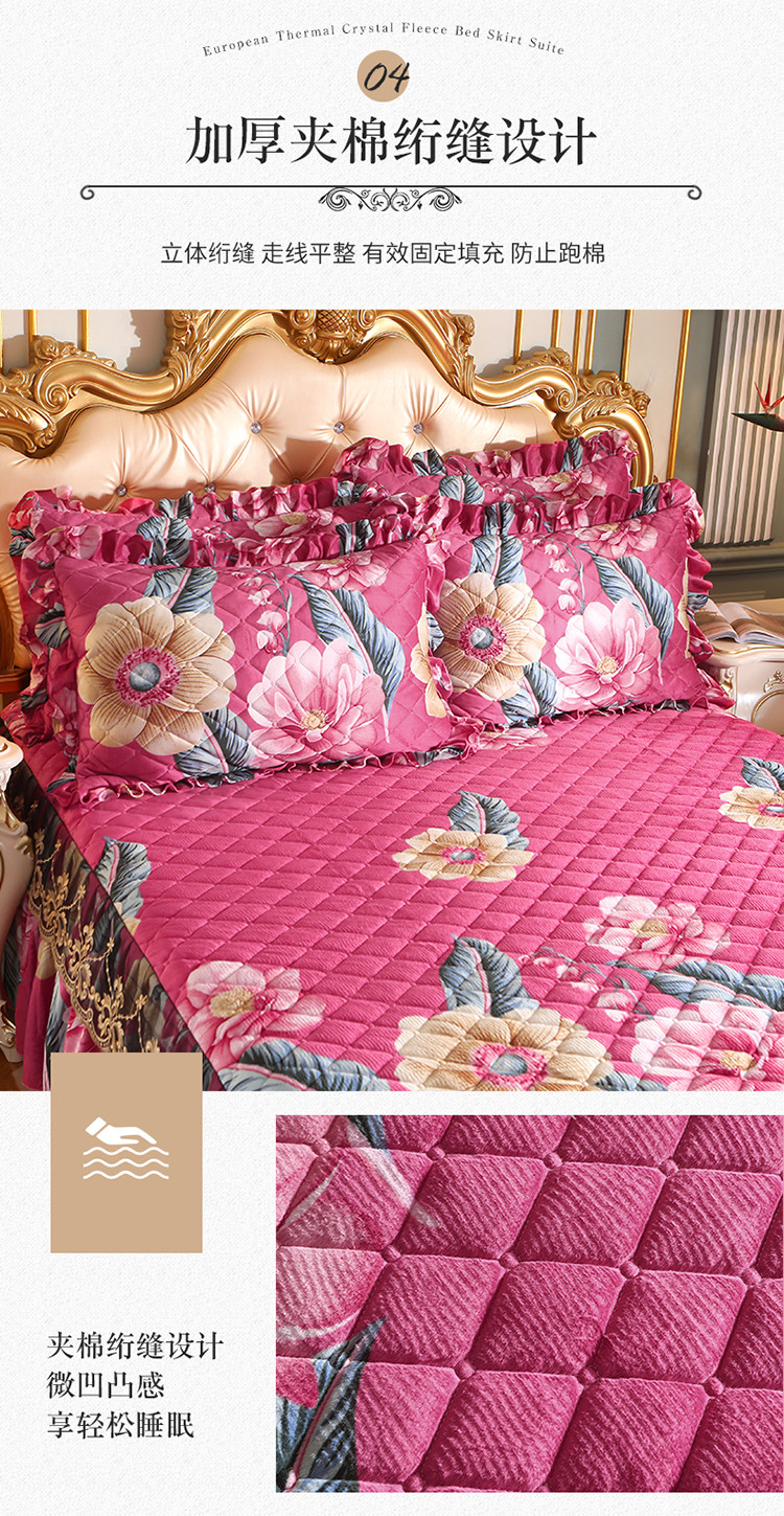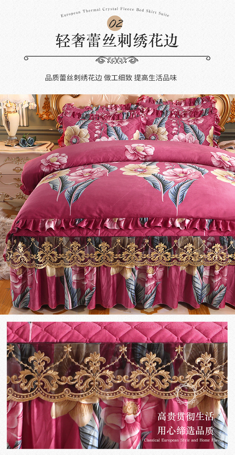 当前位置: 91家纺网 > 商品网购 > 床品套件 > 四件套 > 水晶绒四件套 > 宜凡家纺 2021新款夹棉水晶绒床裙四件套 花花世界