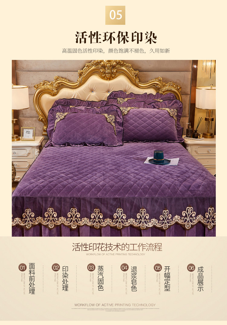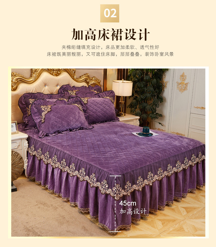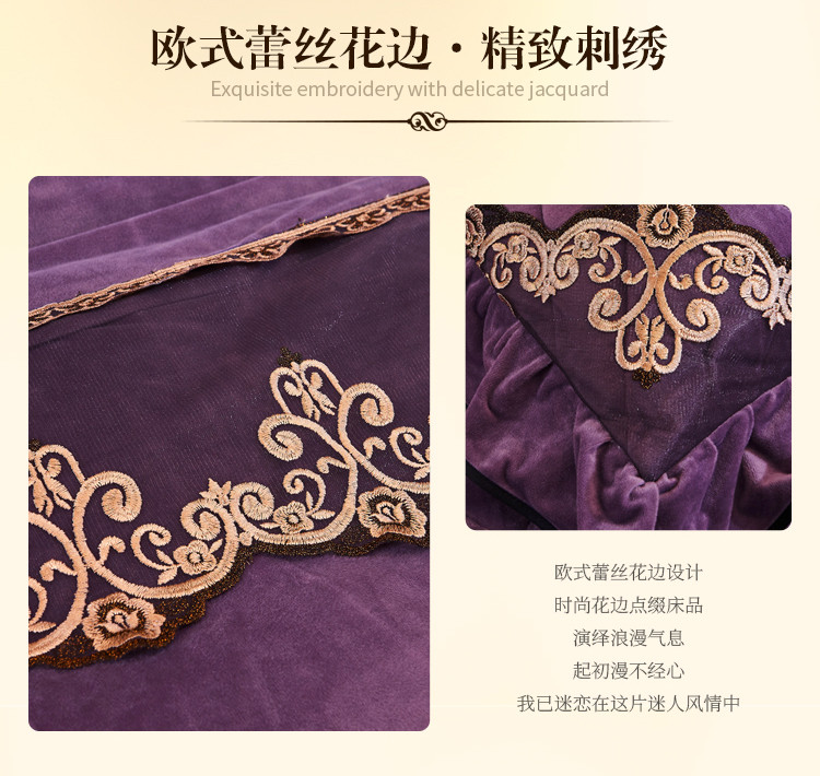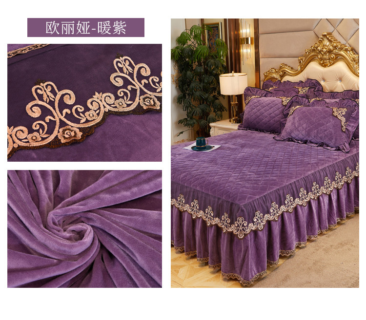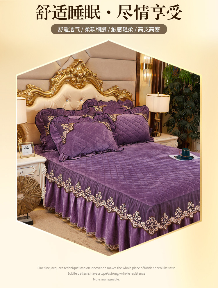 (总)星尚家纺 2024新款加厚保暖全消光牛奶绒夹棉床裙四件套-玫瑰之恋,粉玉,寐紫,浅蓝,水绿