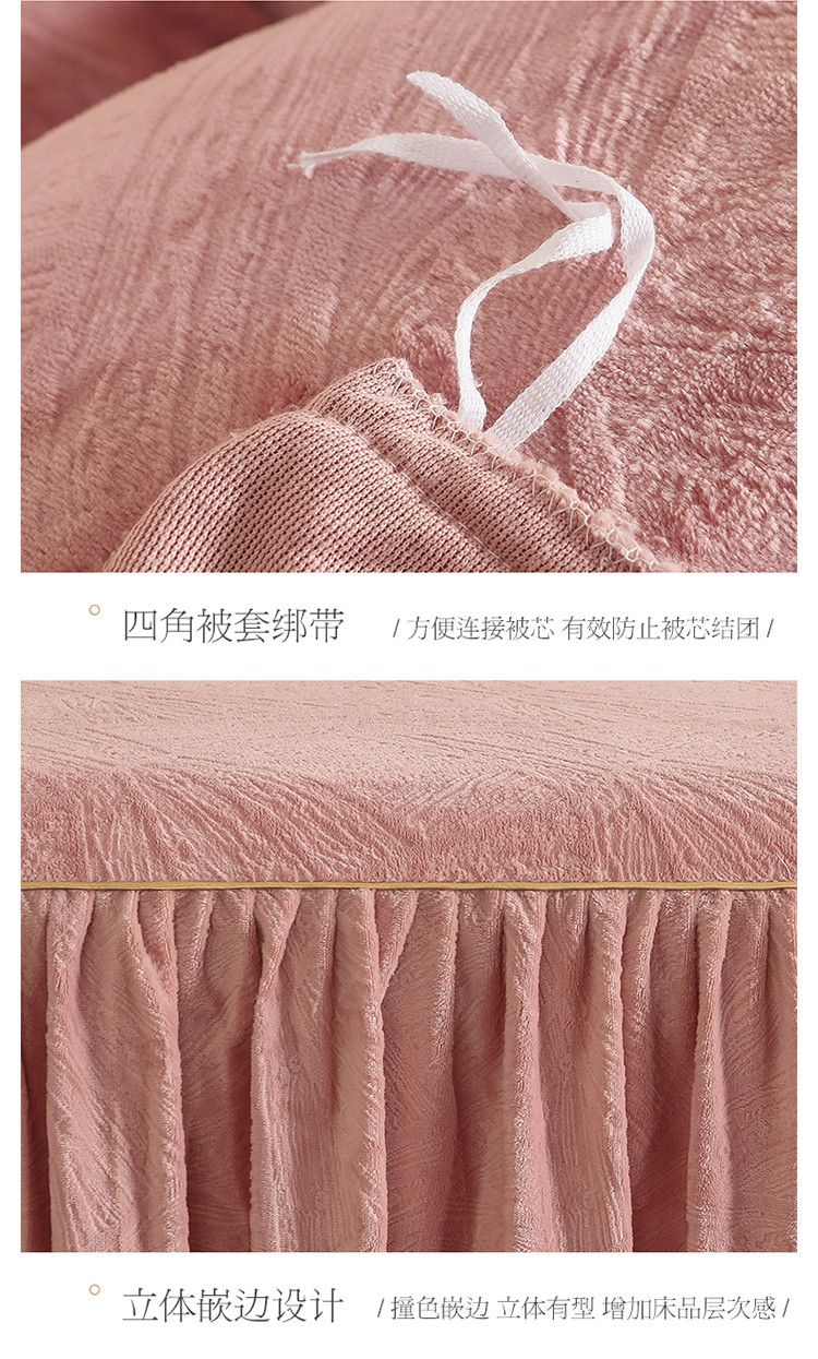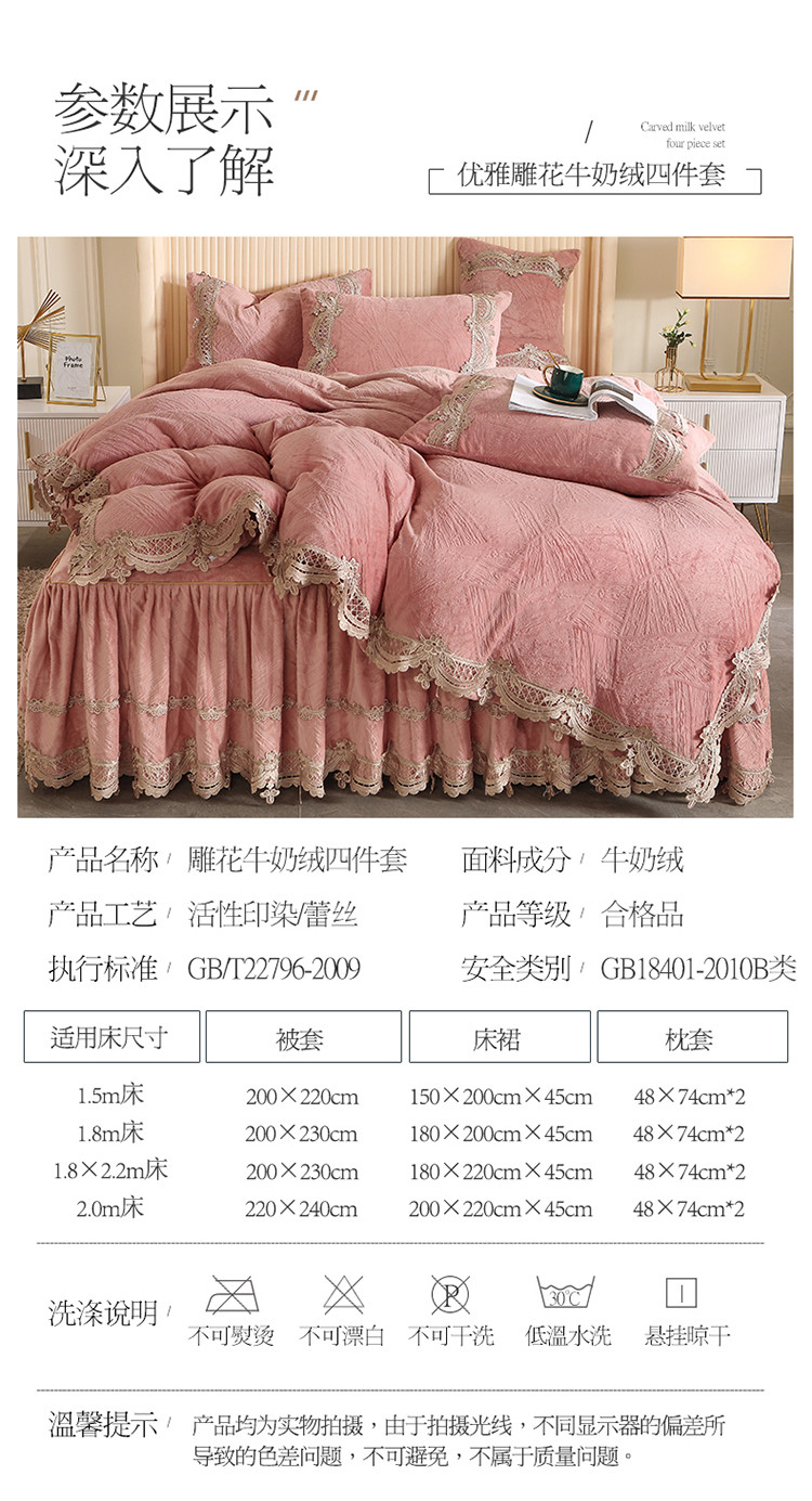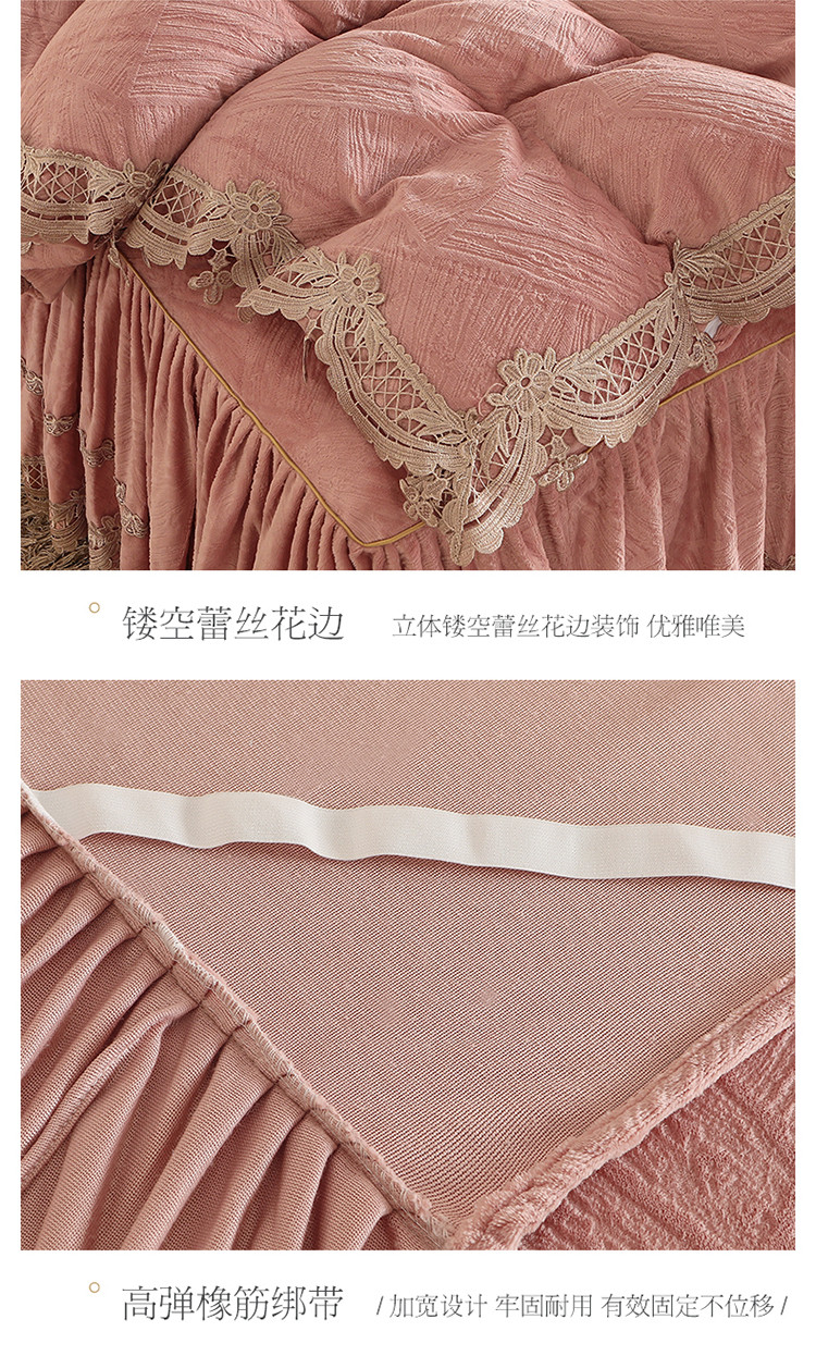 商品名称:网红馆 2025新款牛奶绒雕花床裙四件套 莫兰迪-仙粉