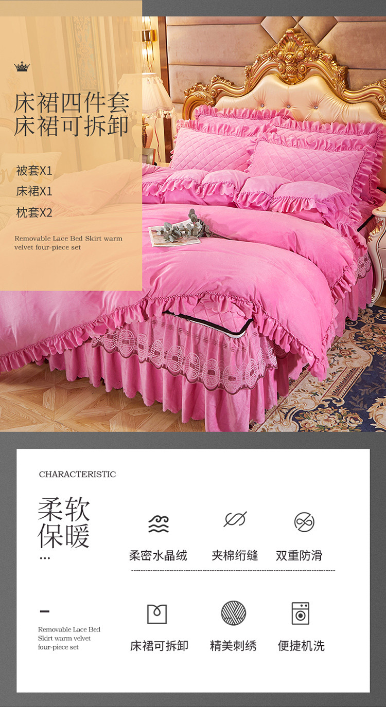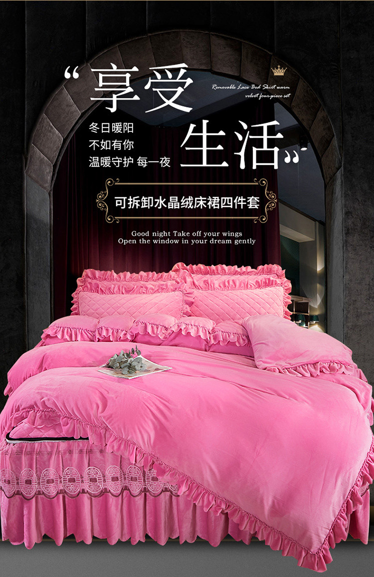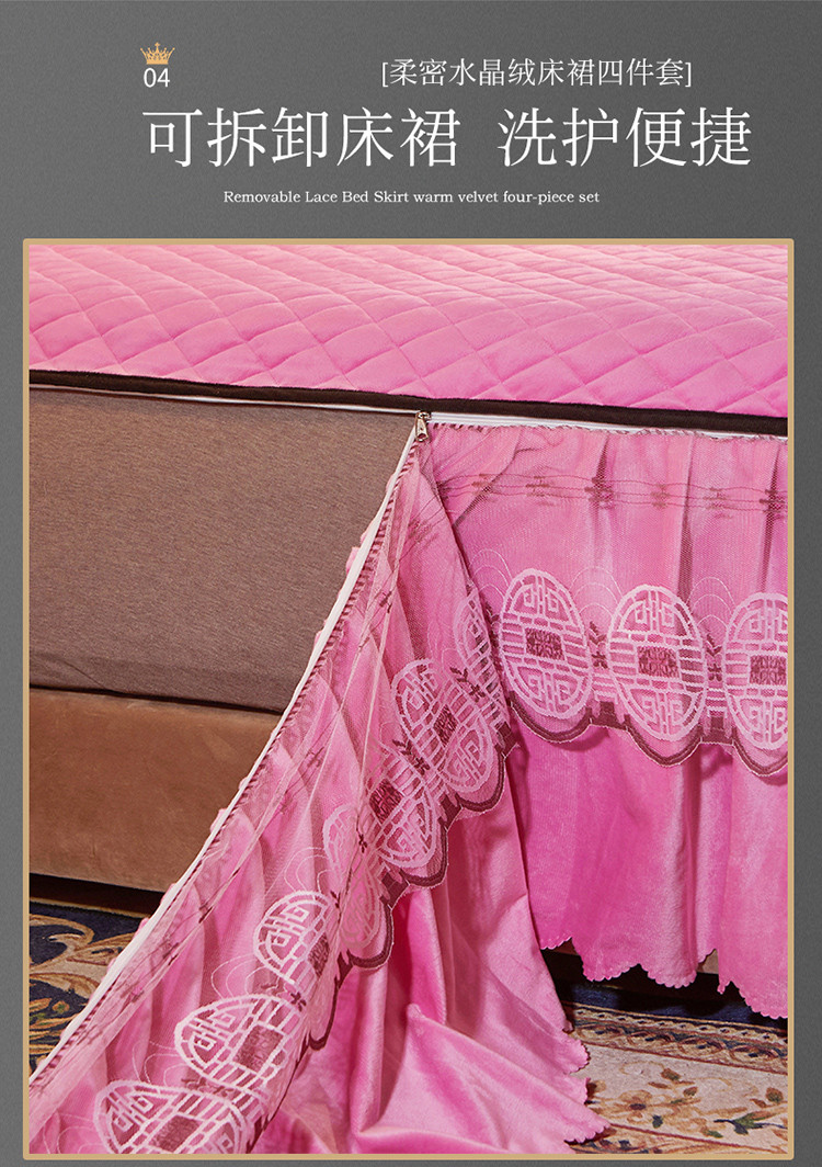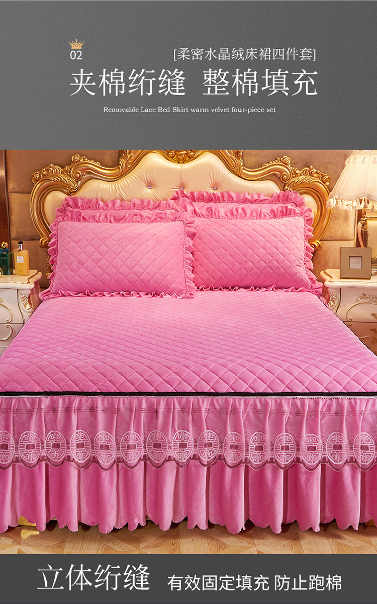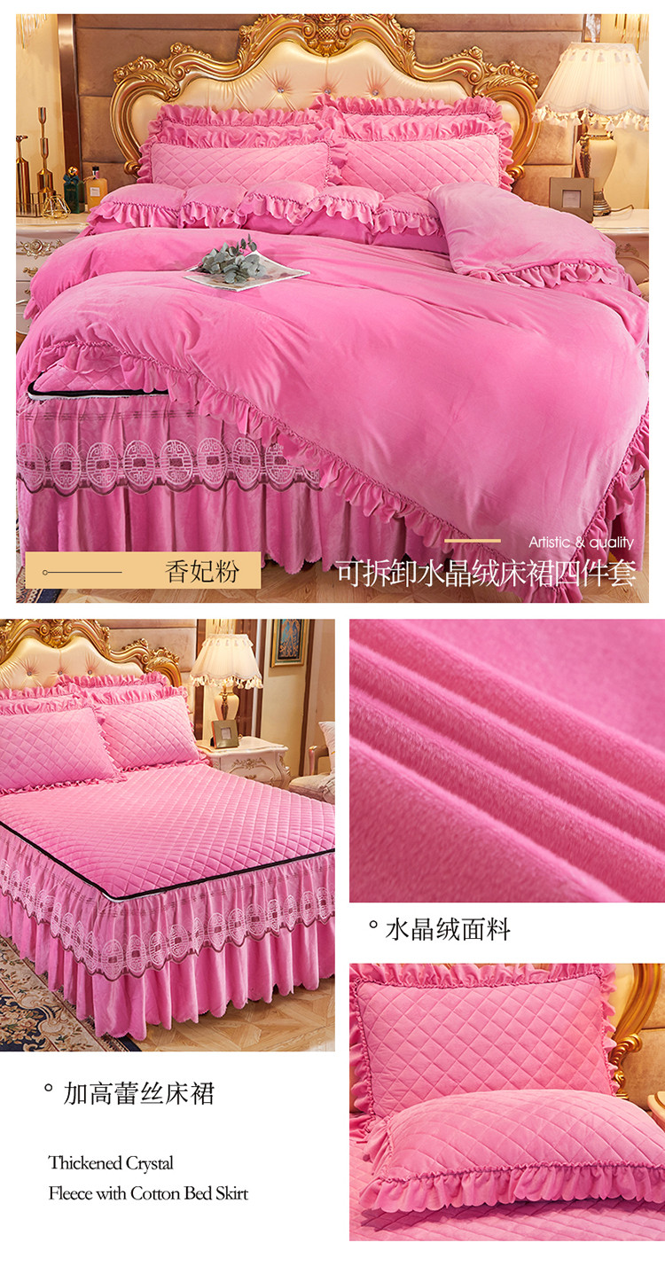 当前位置: 91家纺网 > 商品网购 > 床品套件 > 四件套 > 水晶绒四件套 > 情恒2025新款夹棉水晶绒可拆卸床裙四件套金碧辉煌系列香妃粉