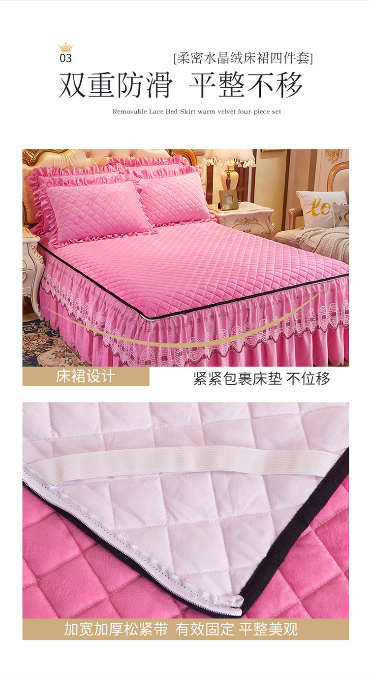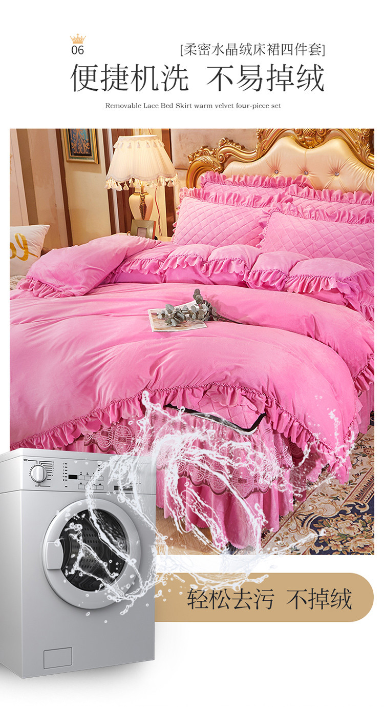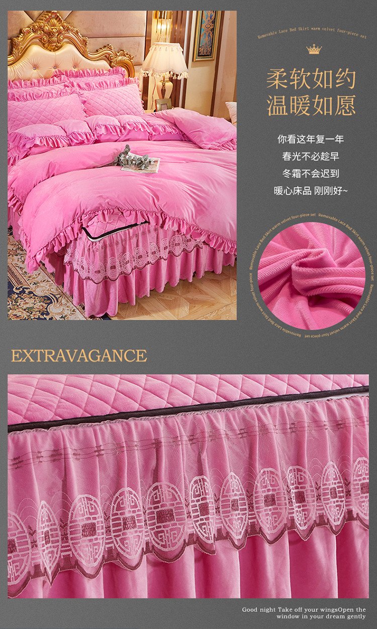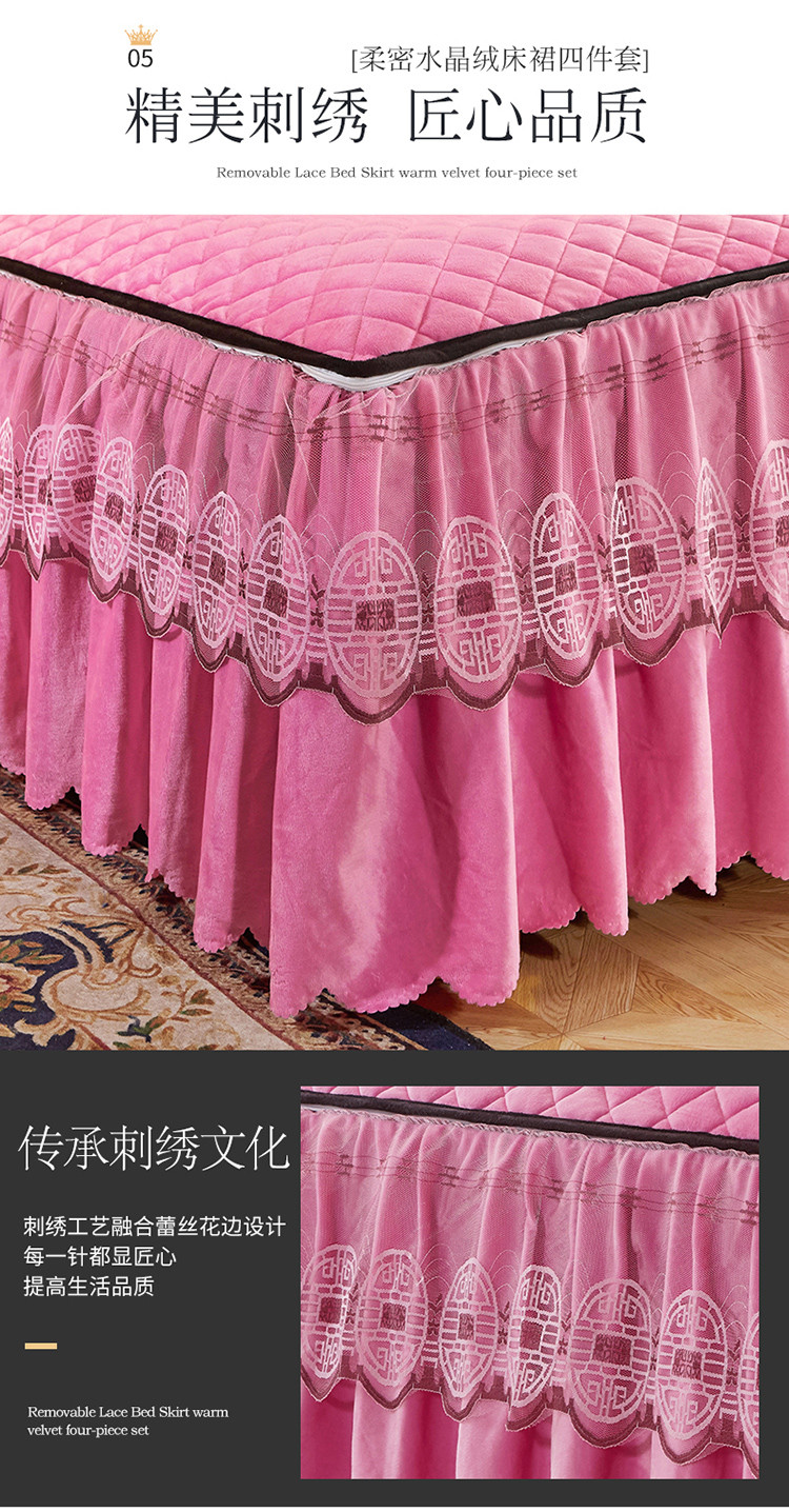 当前位置: 91家纺网 > 商品网购 > 床品套件 > 四件套 > 水晶绒四件套 > 情恒2025新款夹棉水晶绒可拆卸床裙四件套金碧辉煌系列香妃粉