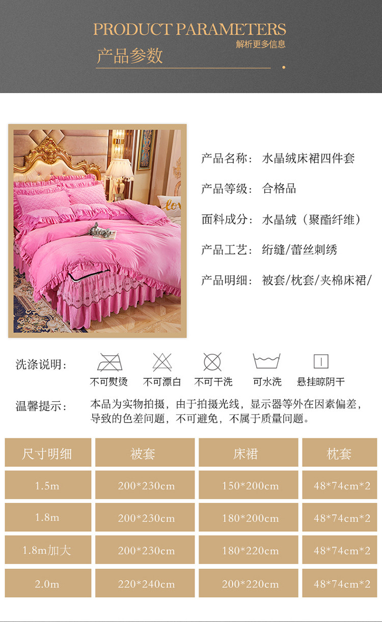 1.8m加大床(床裙180x220cm被套200x230cm枕套48x74cm*2) | ¥170.00 |