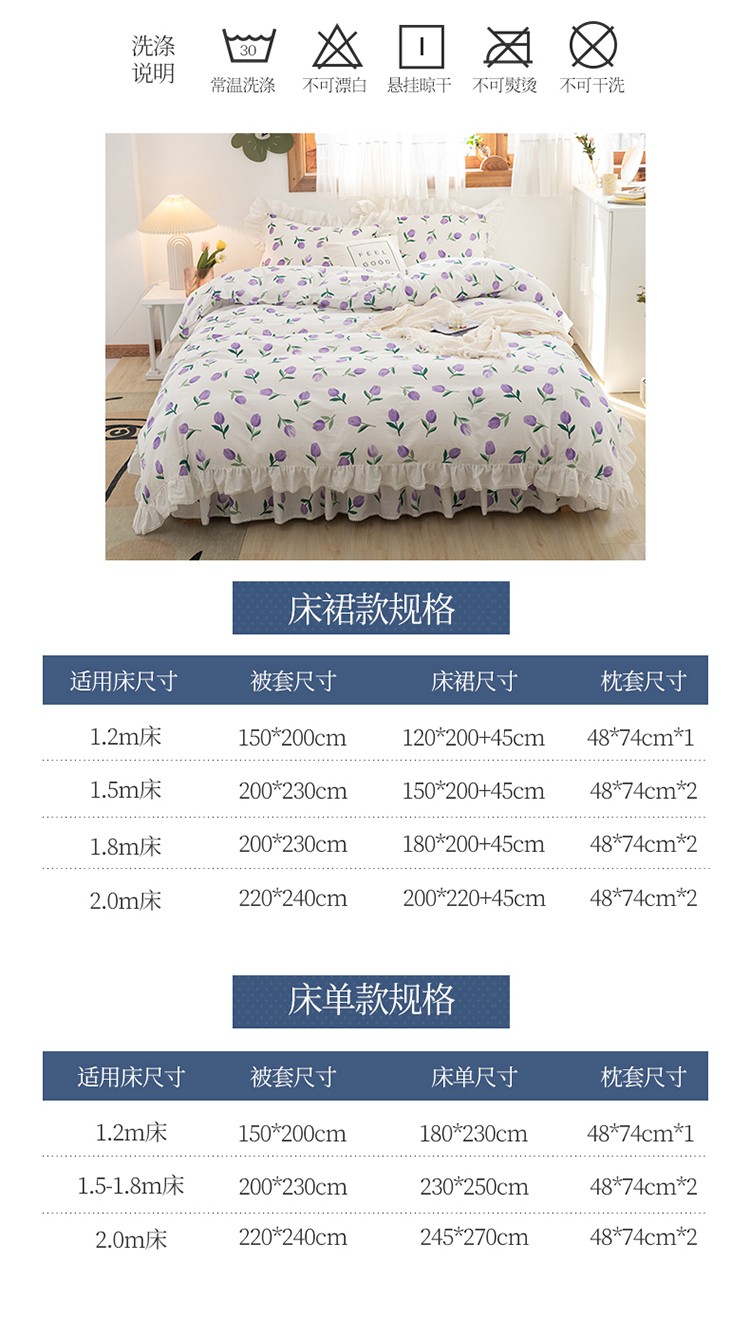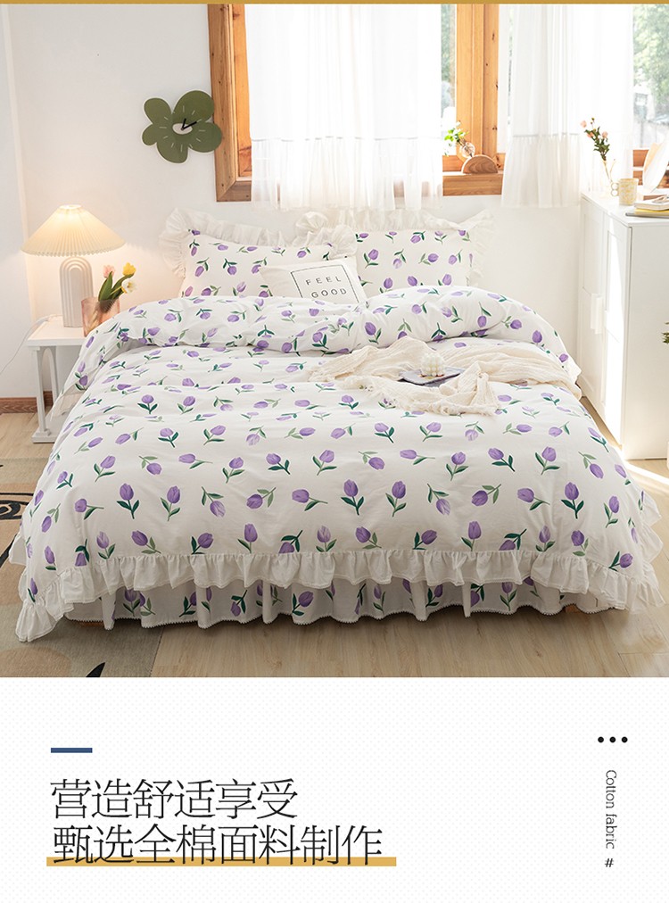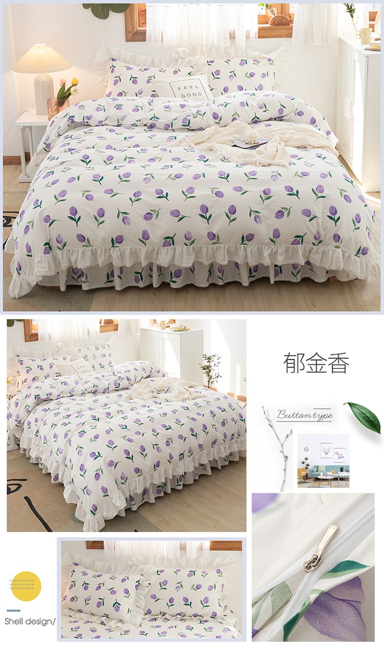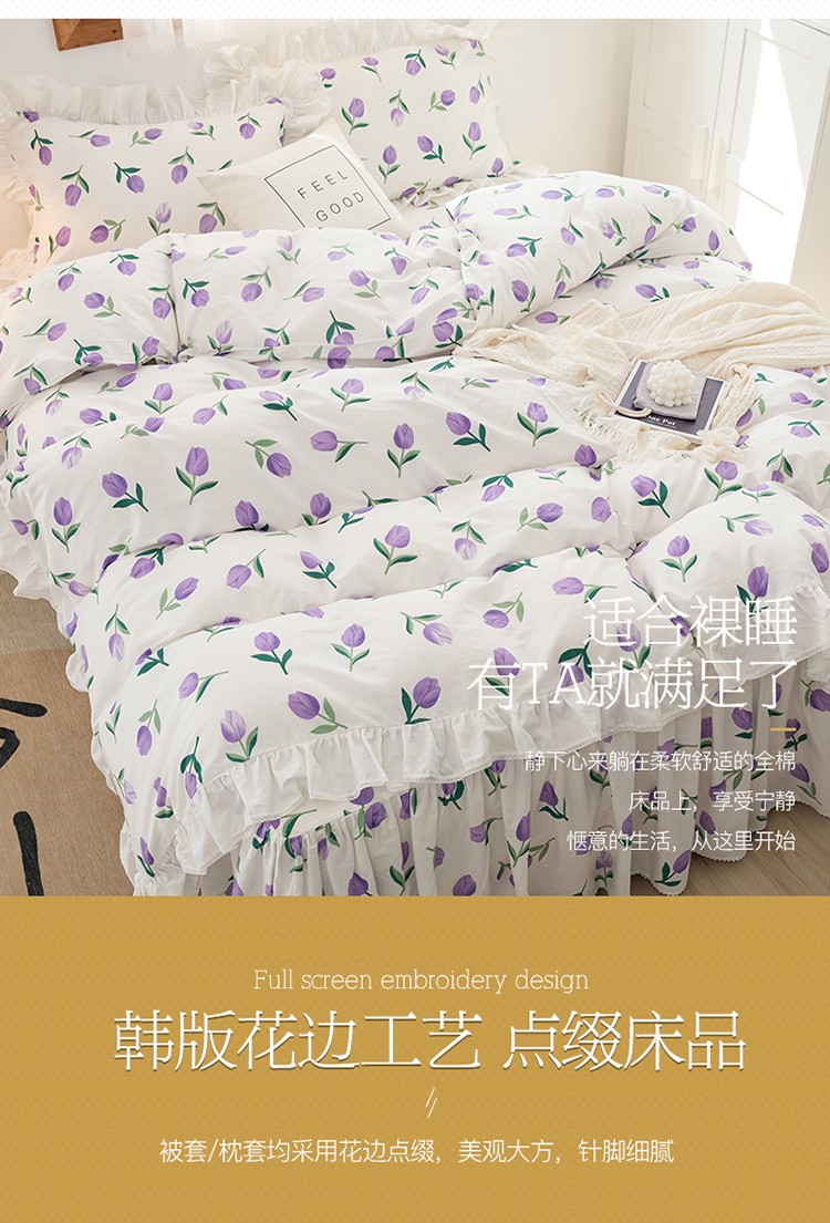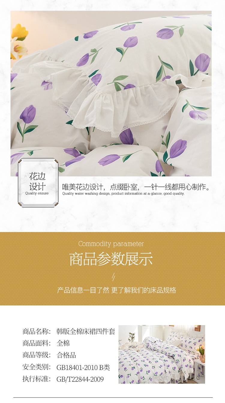 当前位置: 91家纺网 > 商品网购 > 床品套件 > 四件套 > 全棉普通四件套 > 婳庭家居 2021新款韩版全棉床裙四件套 郁金香