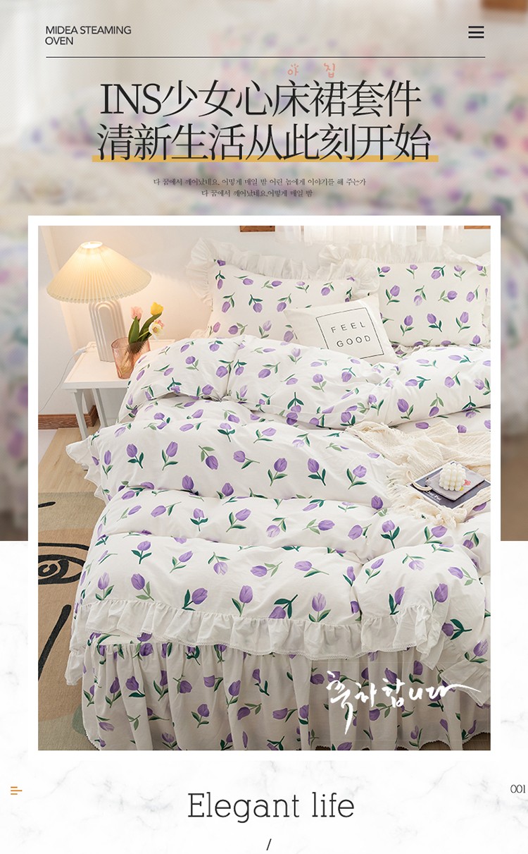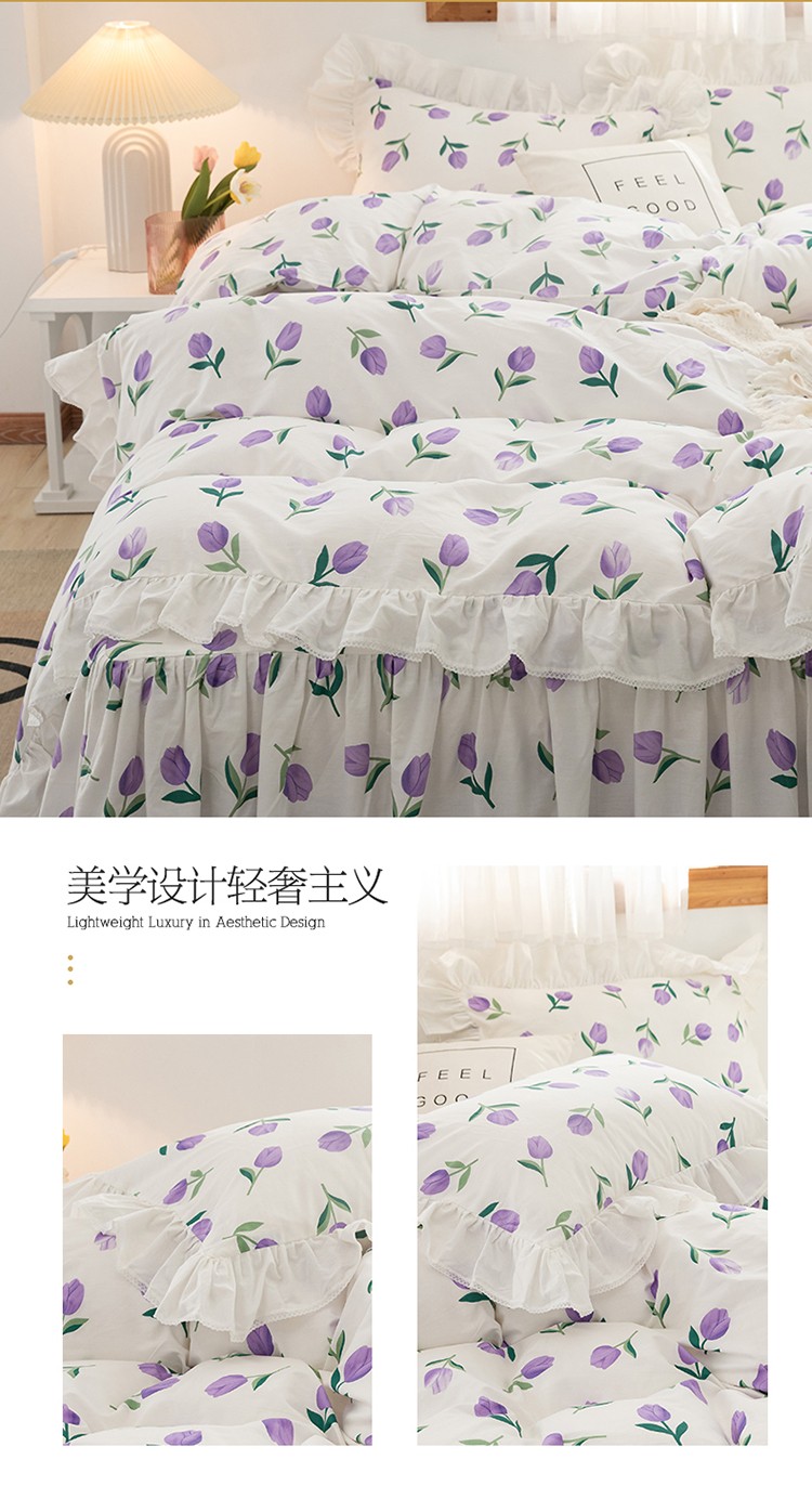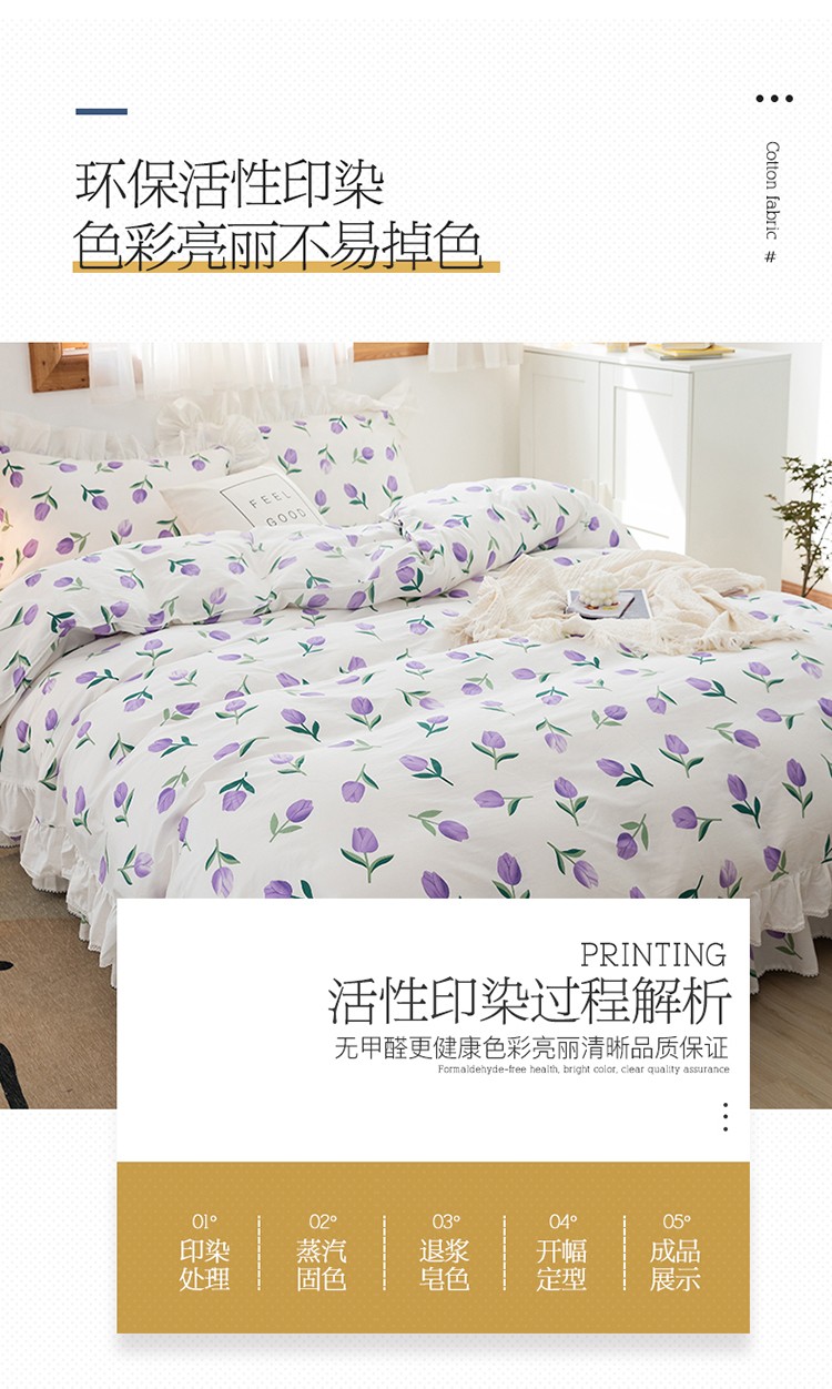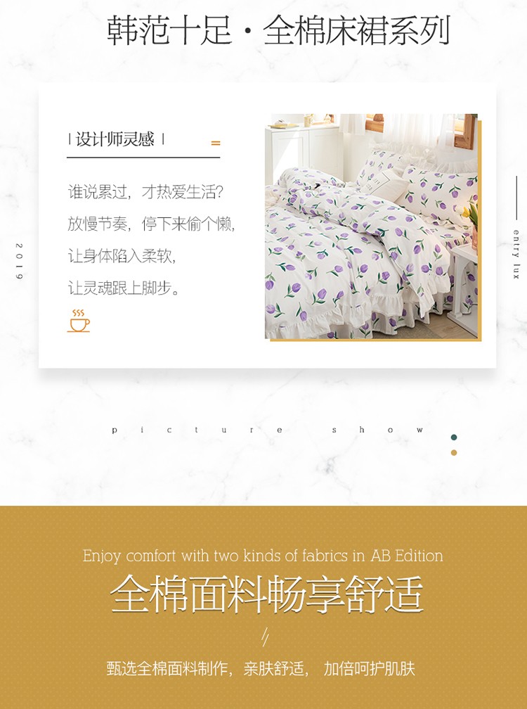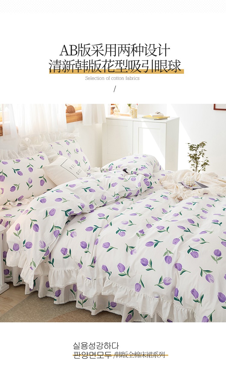 当前位置: 91家纺网 > 商品网购 > 床品套件 > 四件套 > 全棉普通四件套 > 婳庭家居 2021新款韩版全棉床裙四件套 郁金香