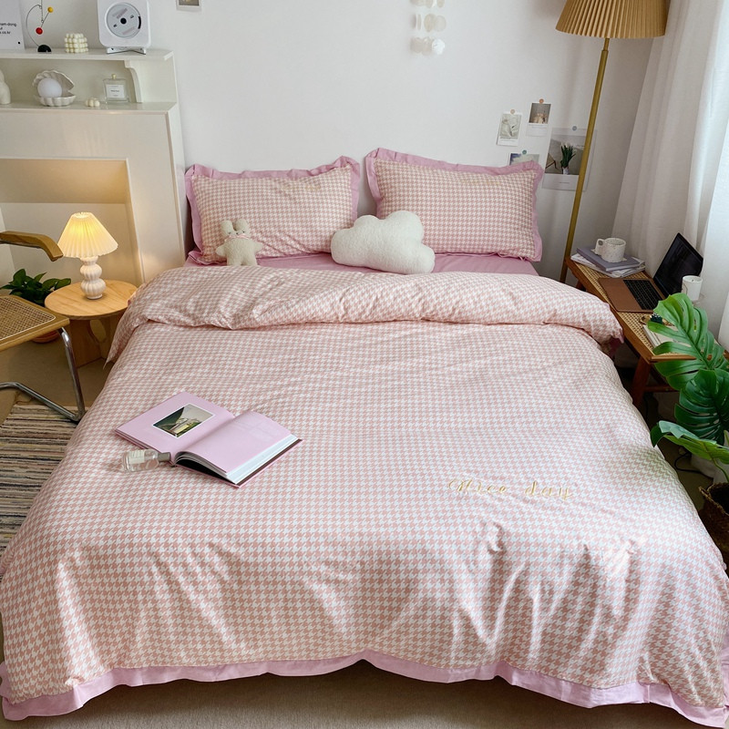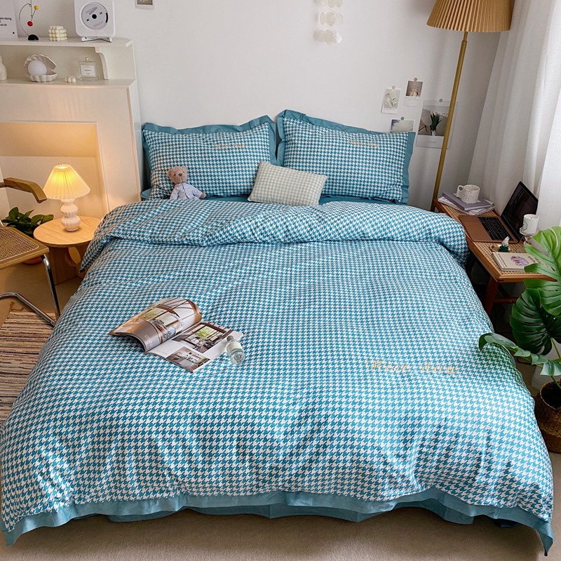 (总)星期八 2021新款13372千鸟格刺绣四件套