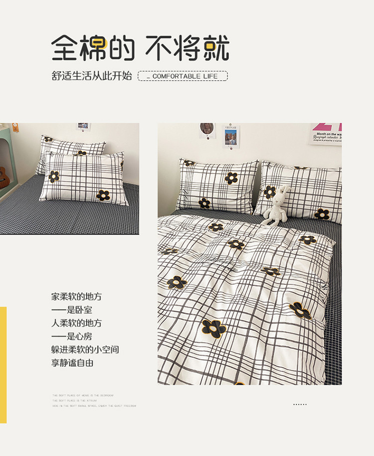 商品名称:珺柔 2021新款全棉印花四件套 格子花