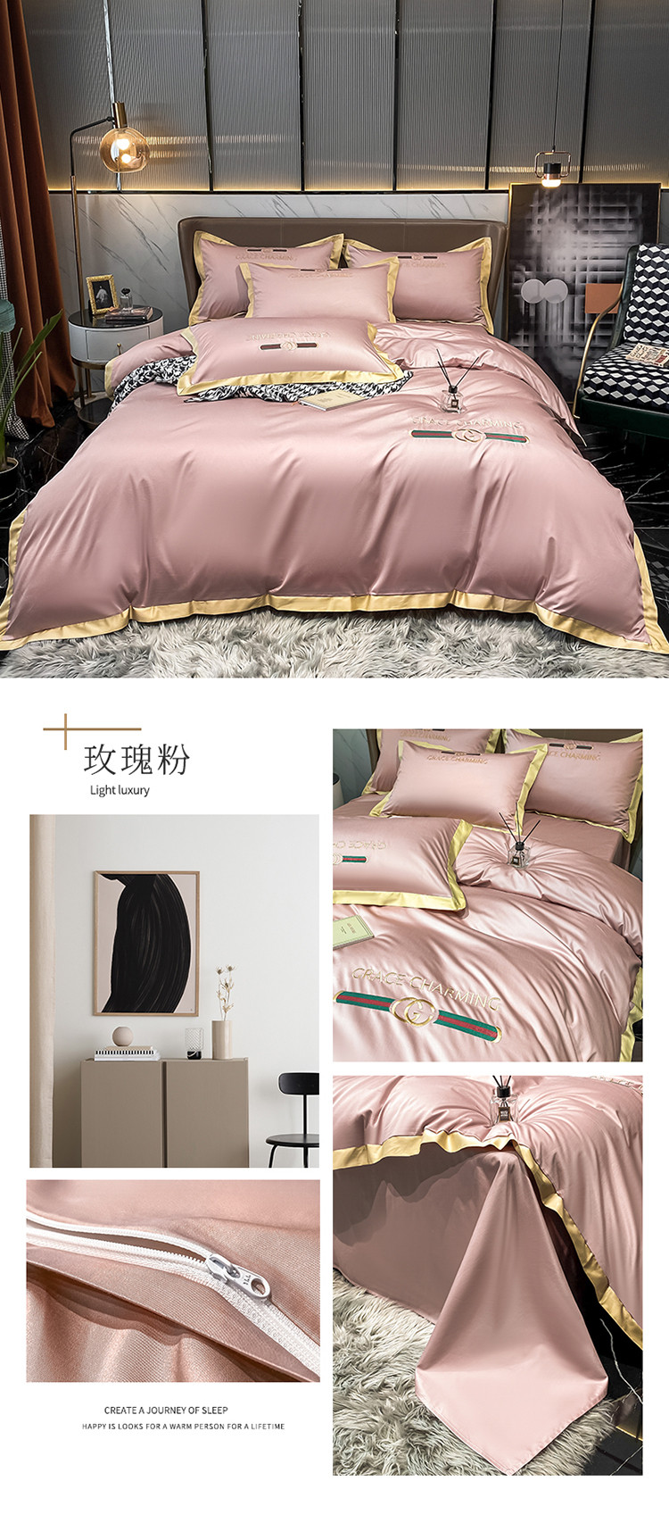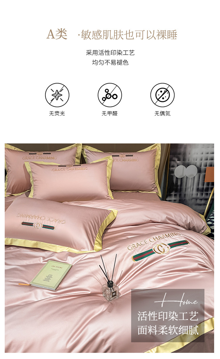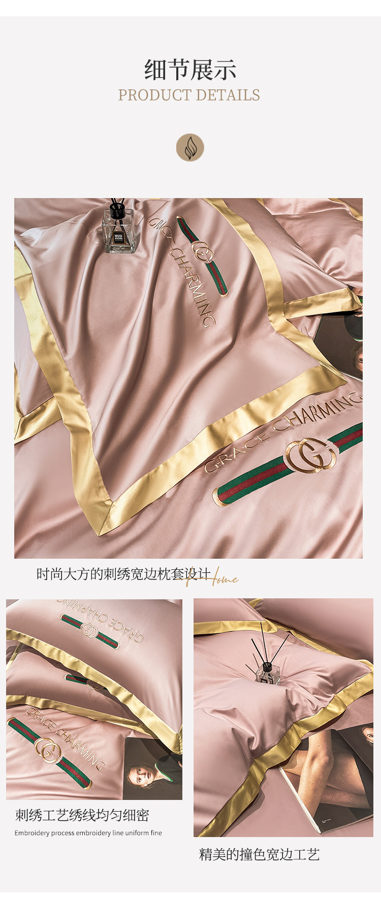 爱缦 2021新款格蕾丝实拍100支澳棉四件套 玫瑰粉