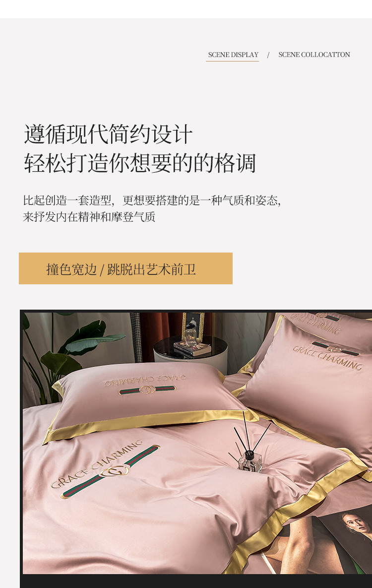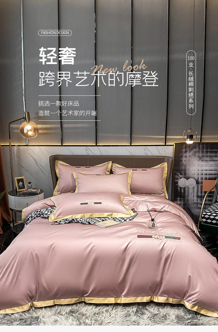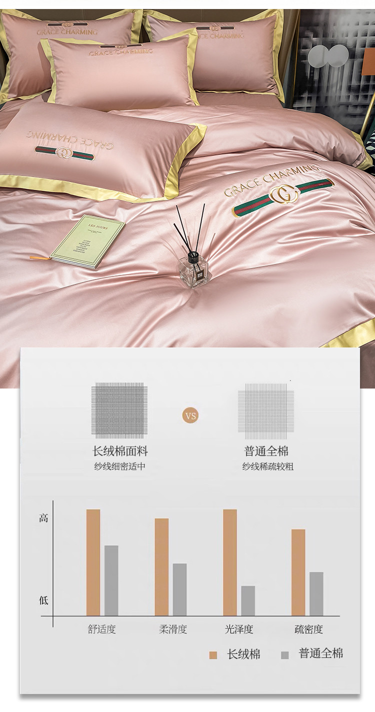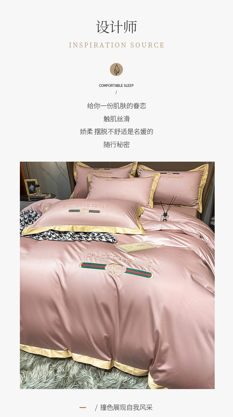 爱缦 2021新款格蕾丝实拍100支澳棉四件套 玫瑰粉