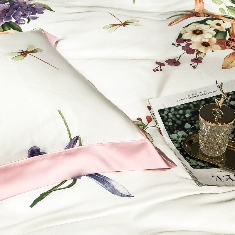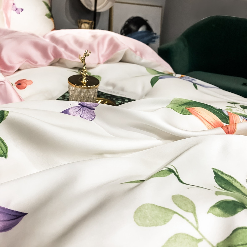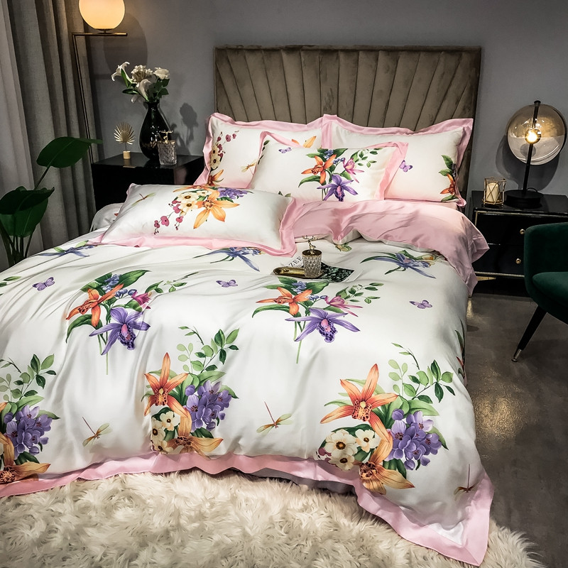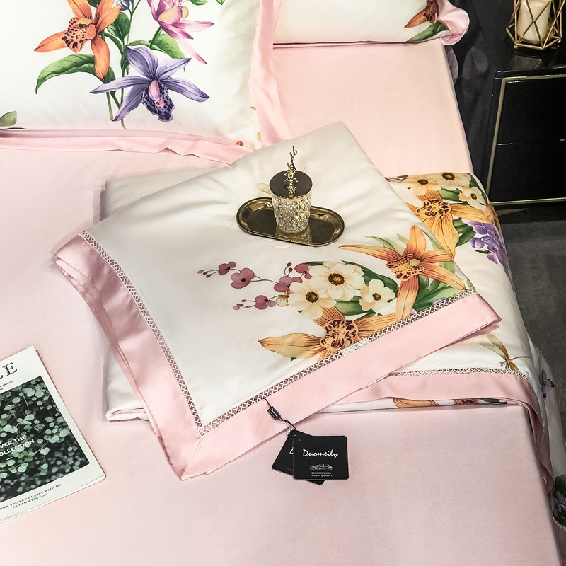 朵美 2021新款60天丝印花四件套 清新百合