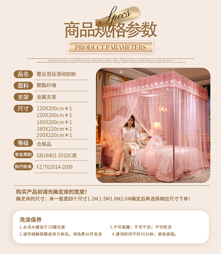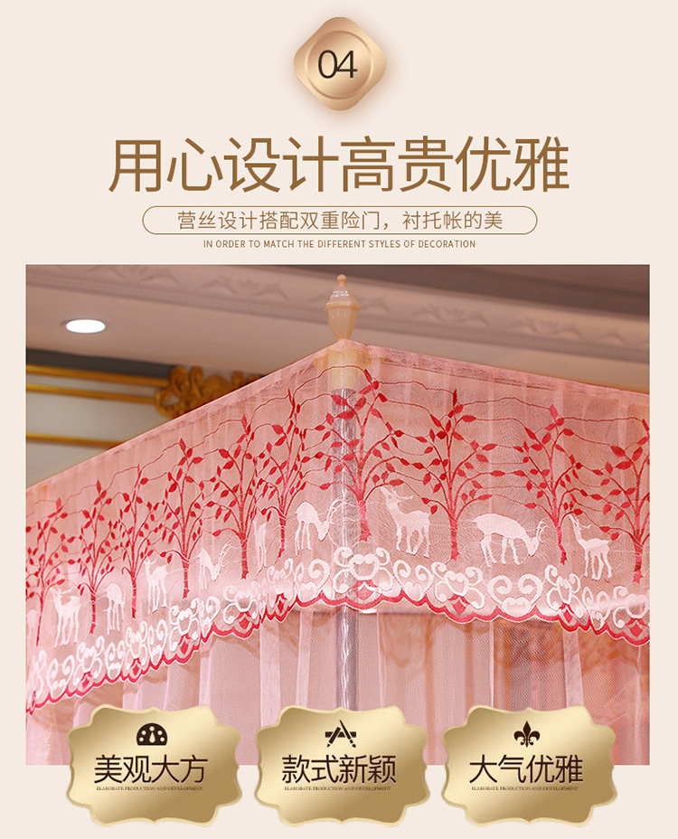 当前位置: 91家纺网 > 商品网购 > 床上用品 > 蚊帐 > 宫廷蚊帐 > 迷仙巢2022新款蕾丝宫廷落地蚊帐-C20小鹿情缘玉色