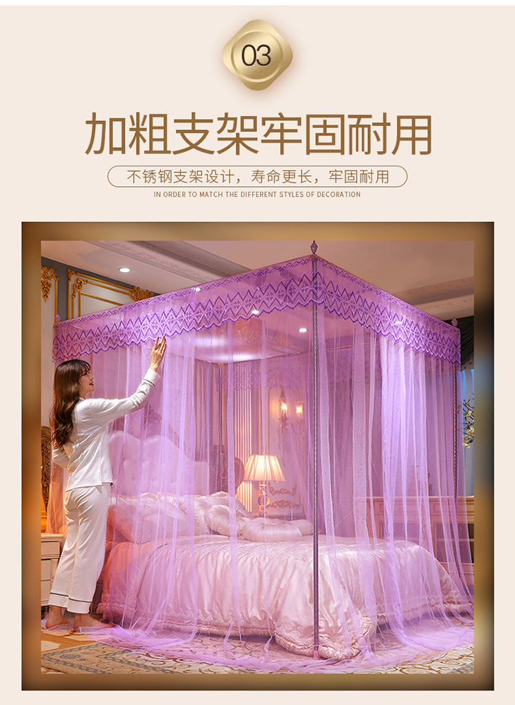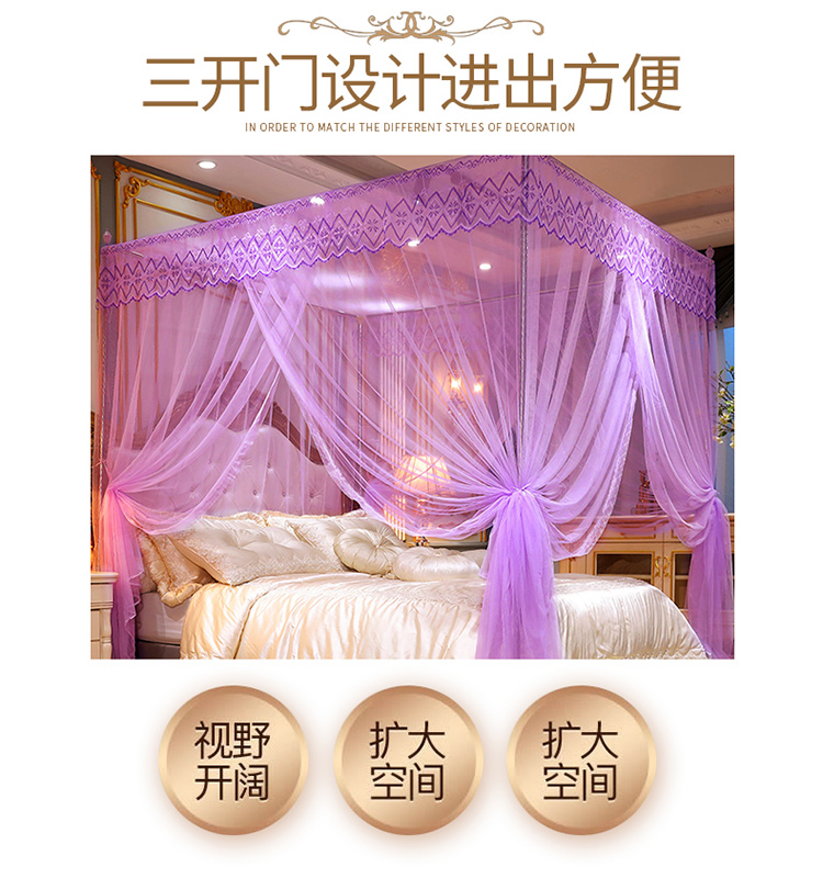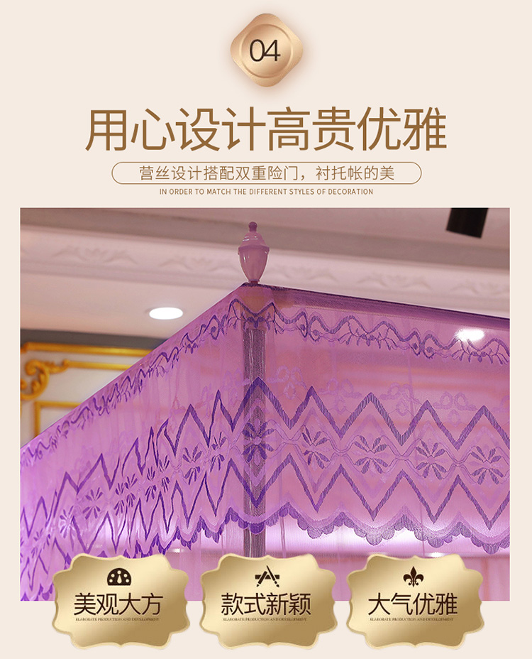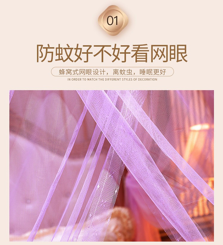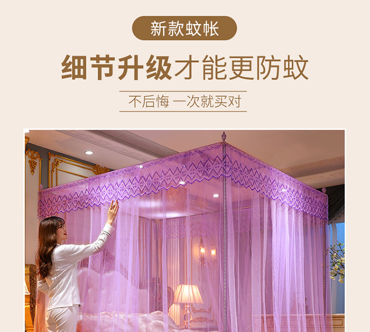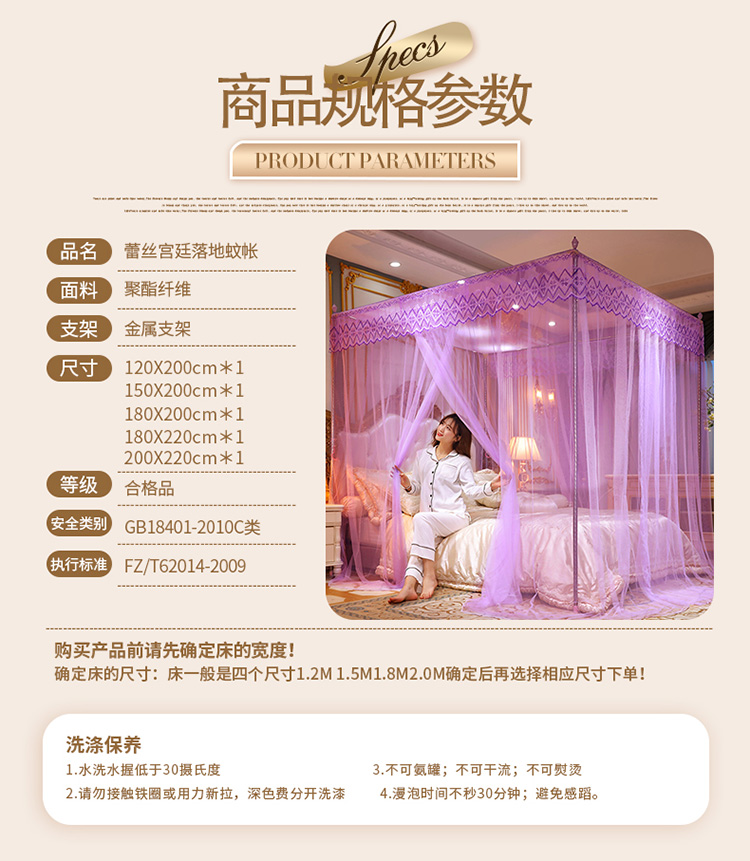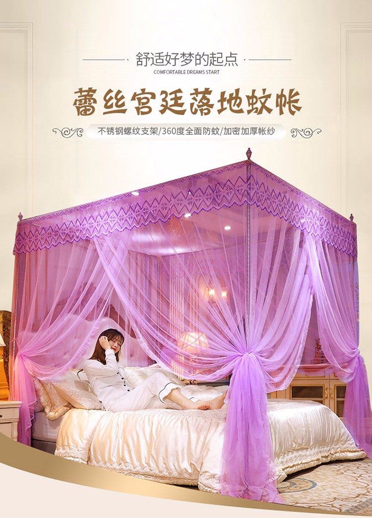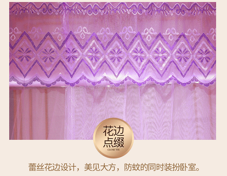 当前位置: 91家纺网 > 商品网购 > 床上用品 > 蚊帐 > 宫廷蚊帐 > 迷仙巢家纺 2021新款蕾丝宫廷落地蚊帐-格调人生紫色