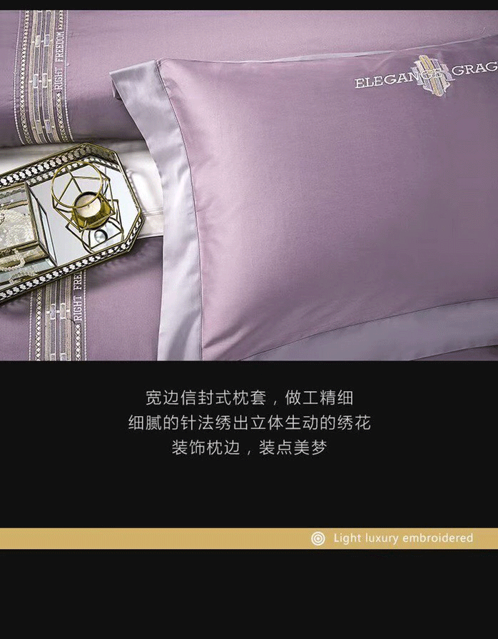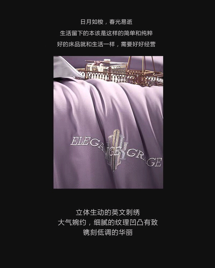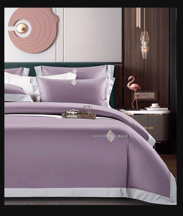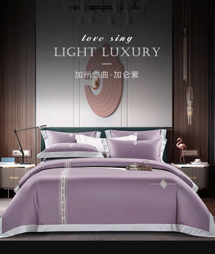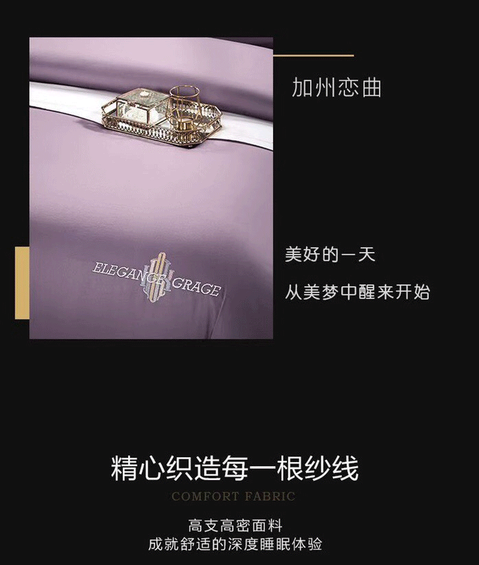 玖玖爱 2021新款160s全棉贡缎四件套加州恋曲 加仑紫