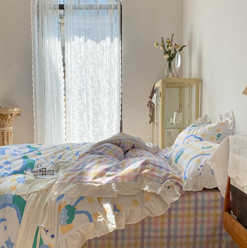 (总)洋铭区(原狠狠爱) 2026新款春季全棉彩边双层纱四件套,爱心宝莉,波斯小懒狗,繁花兔兔,格格小熊,海蓝小木马,红格小马,红枣小兔,花朵兔兔,焦糖小熊,兰花香,绿芽小马,萌宠小分队,奶茶蝴蝶结,奶糕熊熊,汽车派对,桃桃粉花,甜果小象,图图小狮子,幸运小可爱,熊猫嘟嘟,遇见粉花,月光宝宝