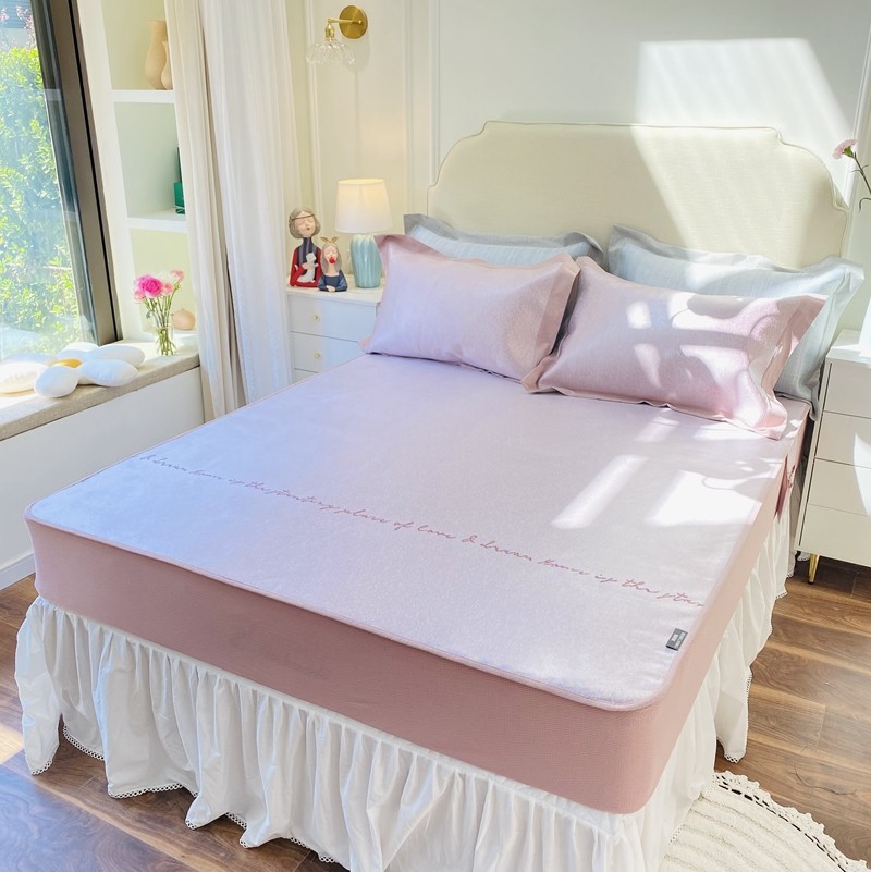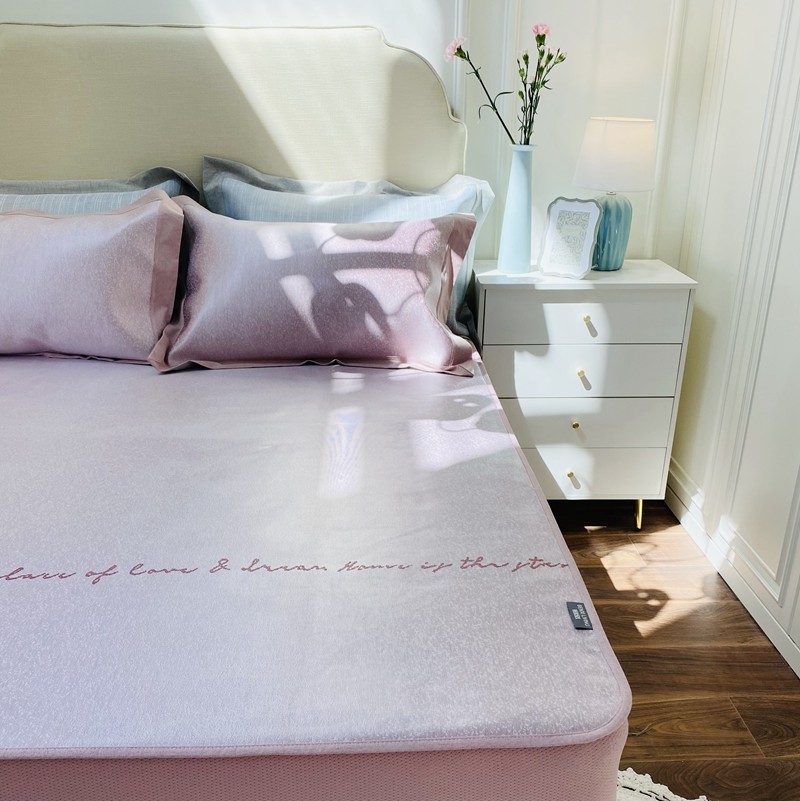 本希家居 新款高端可水洗冰丝席提花床笠款 奥黛丽-贵族粉