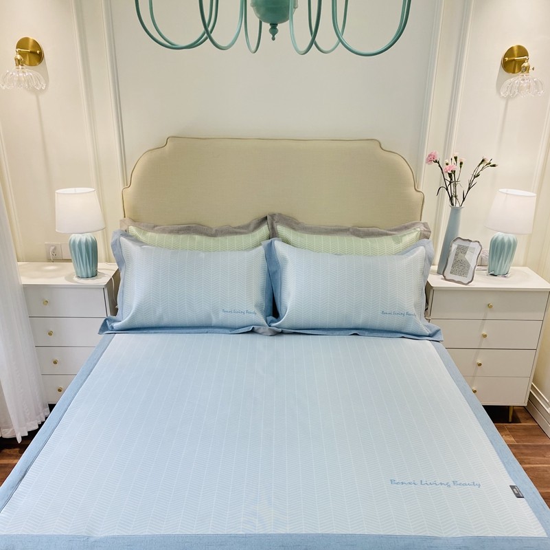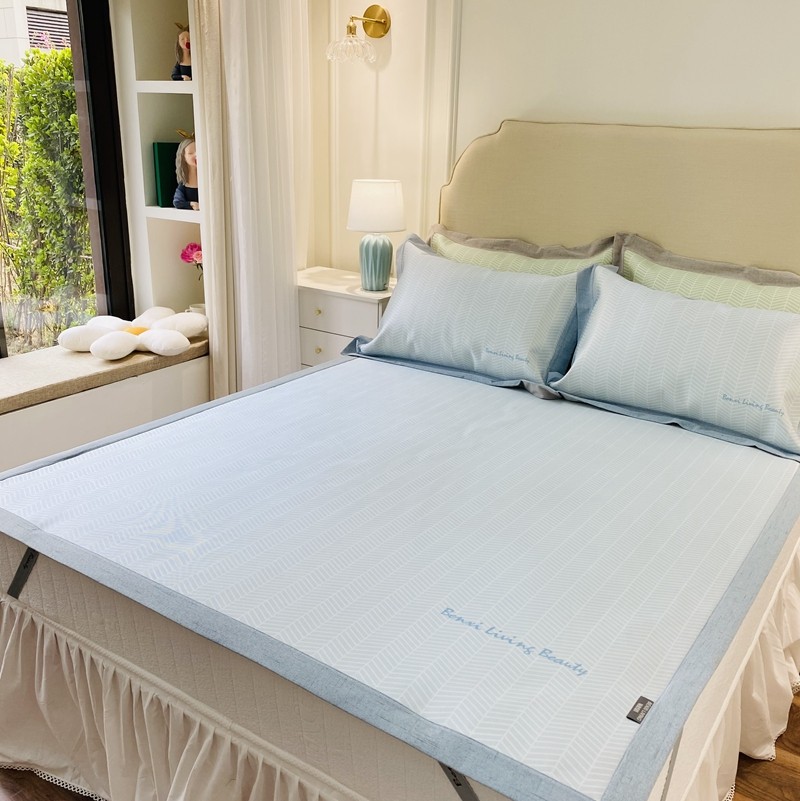 本希家居 2021新款高端可水洗冰丝席数码印花 雅致-天空蓝