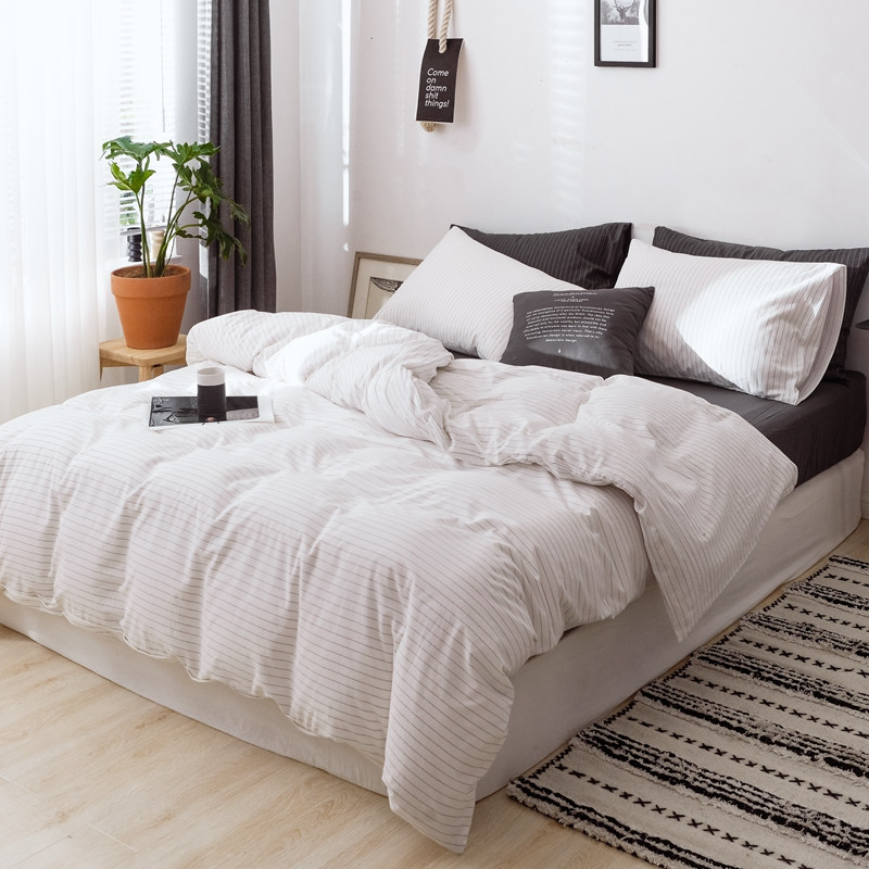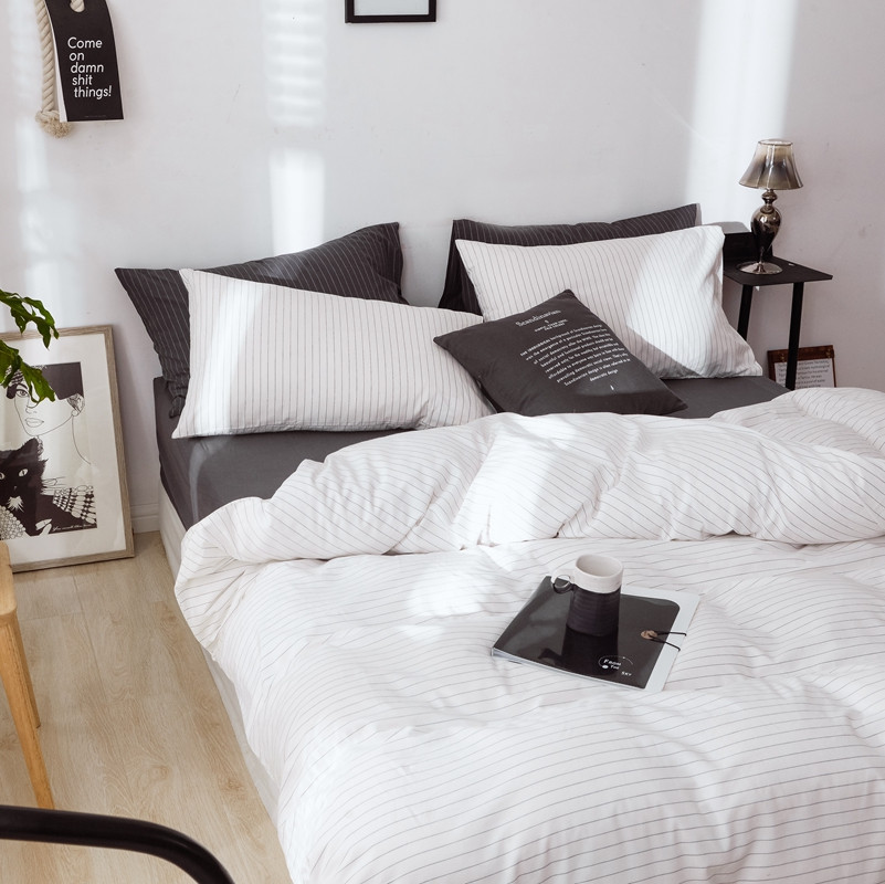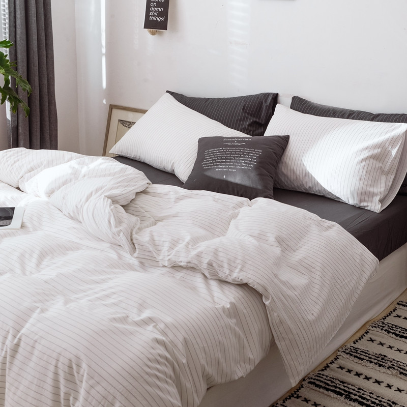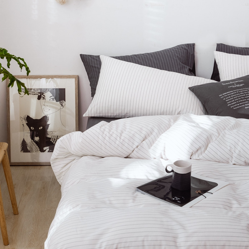 当前位置: 91家纺网 > 商品网购 > 床品套件 > 四件套 > 水洗棉四件套 > 安莱生活 2021新款全棉水洗棉条纹格子四件套 白灰细条
