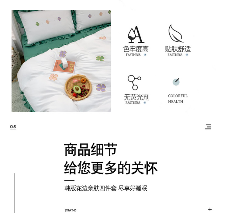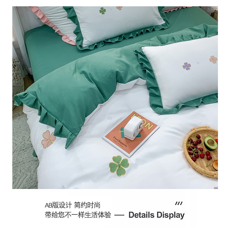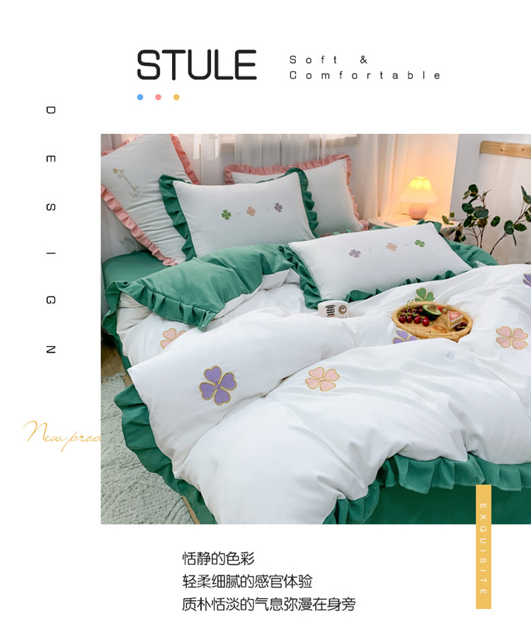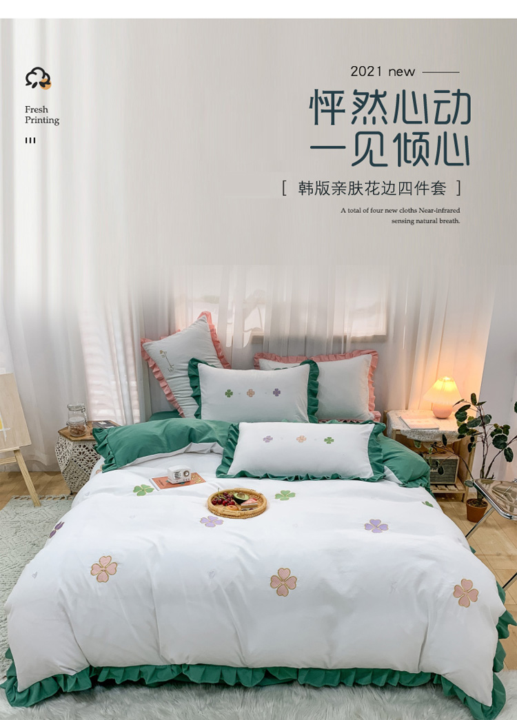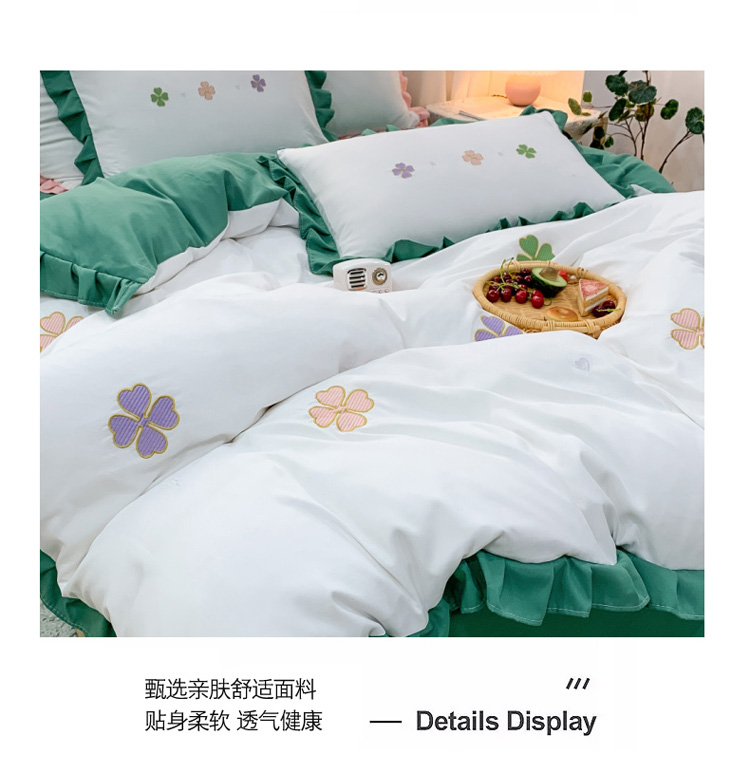 麦朵 2021新款小清新全棉刺绣花边款四件套 小幸运-白