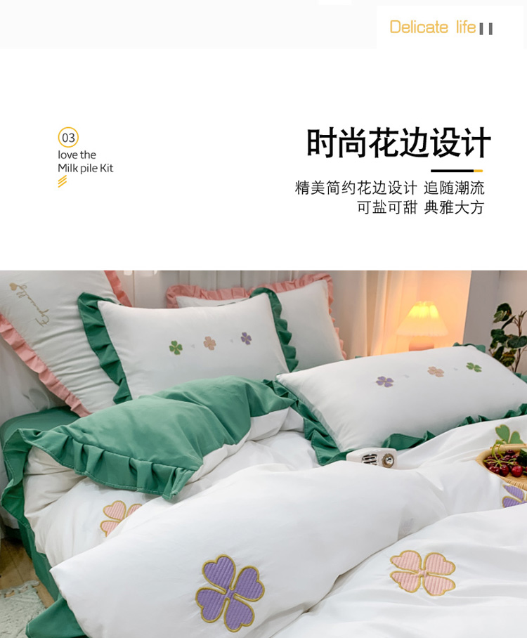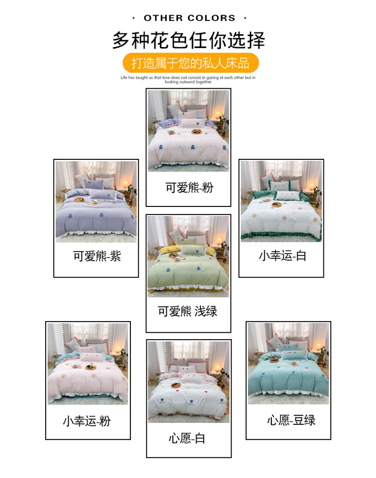 (总)麦朵 2023花边款毛巾绣牛奶绒四件套兔兔绒爱心法莱绒四件套,爱心-白粉,爱心-白黄,爱心-白蓝,爱心-白绿,爱心-白紫,爱心-粉色,爱心-天空蓝