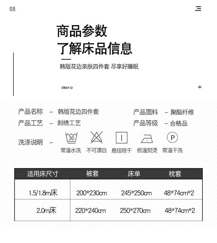 商品名称:麦朵 2021新款小清新全棉刺绣花边款四件套 小幸运-白