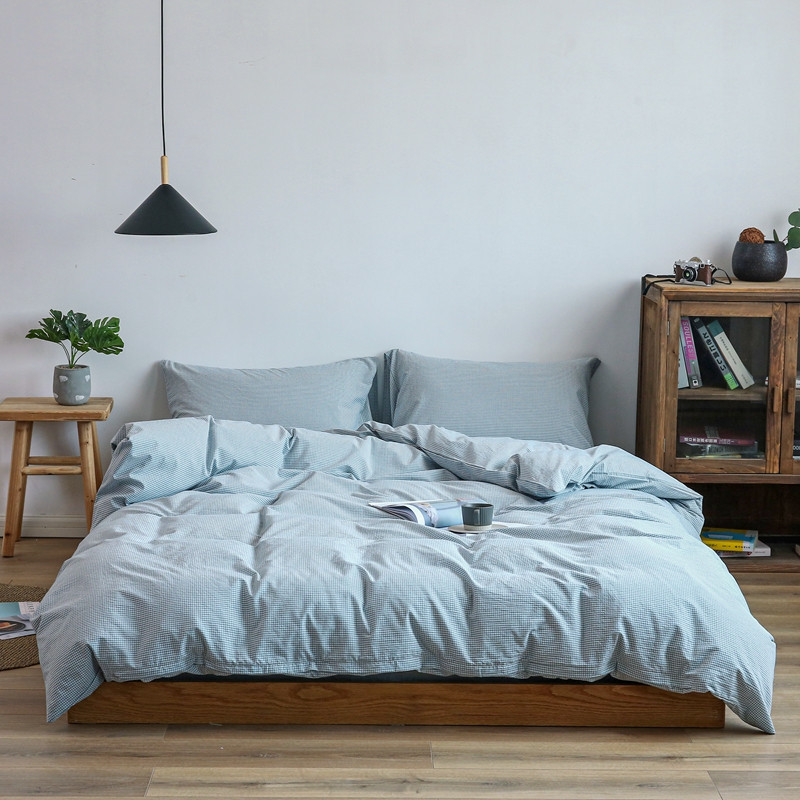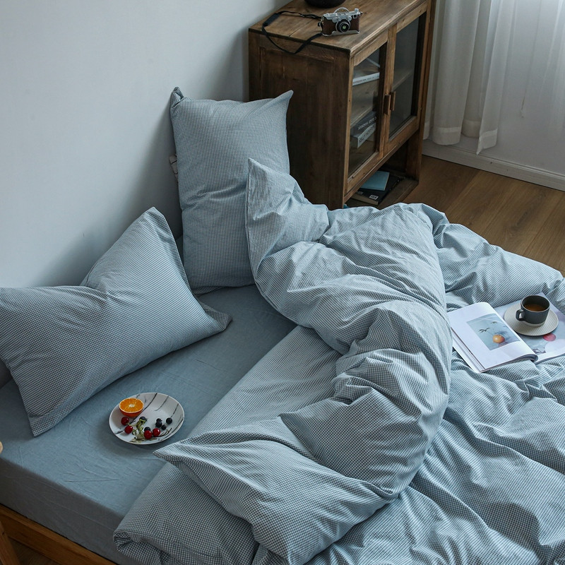 当前位置: 91家纺网 > 商品网购 > 床品套件 > 四件套 > 水洗棉四件套 > 安莱生活 2021新款全棉水洗棉小小格系列四件套 浅蓝微小格