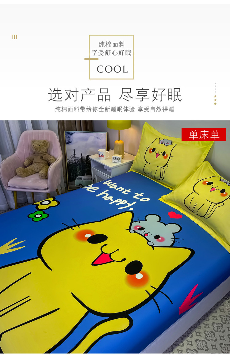 金爱家 2021新款全棉大版单品床笠 萌咪