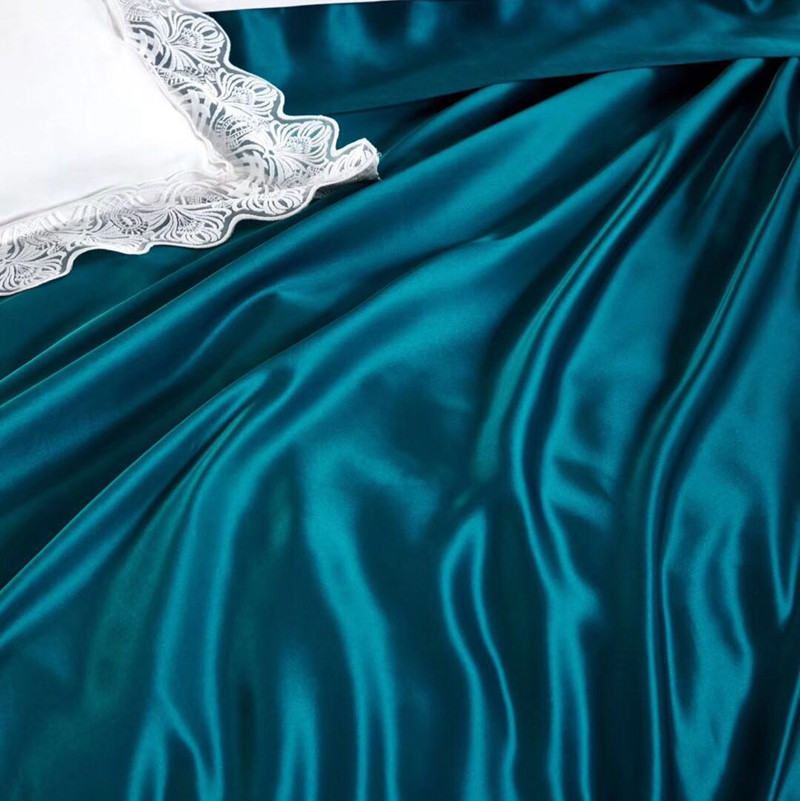 商品名称:雅韵诗真丝馆 2023新款素色真丝四件套 素色孔雀蓝