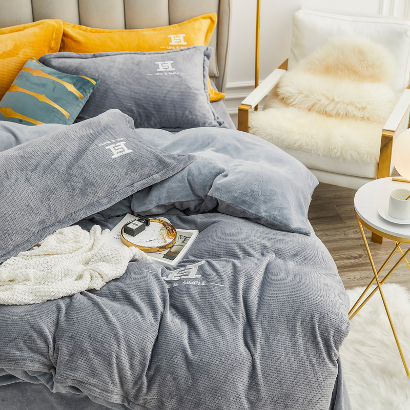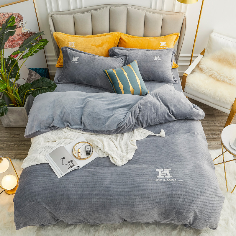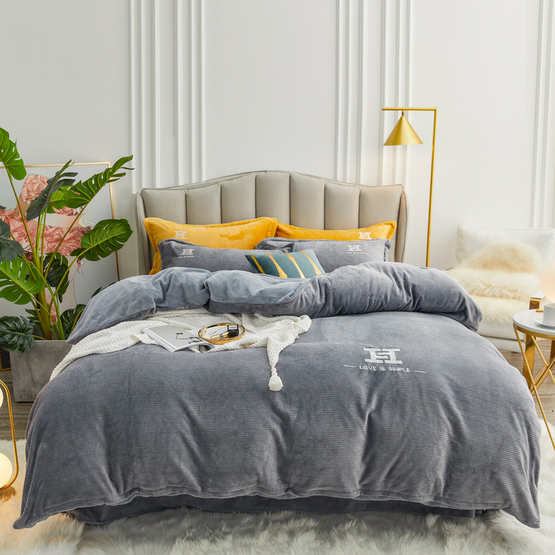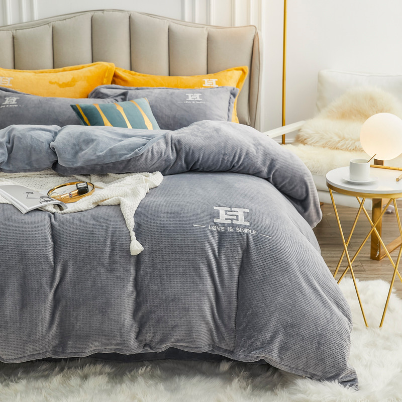 锦罗绣 2021新款牛奶绒绣花四件套 love灰