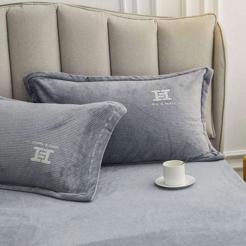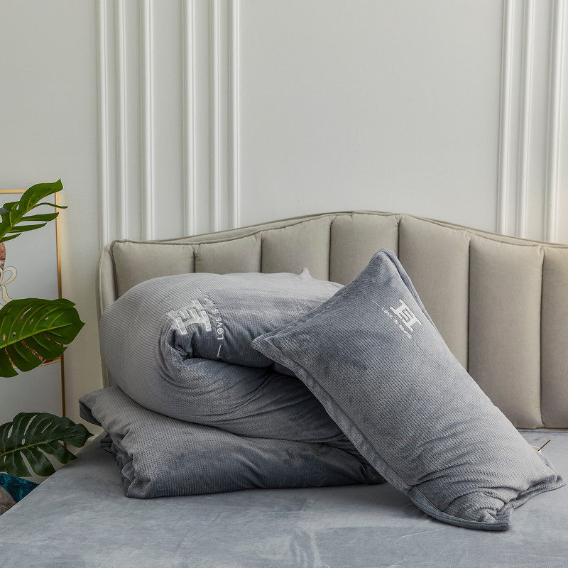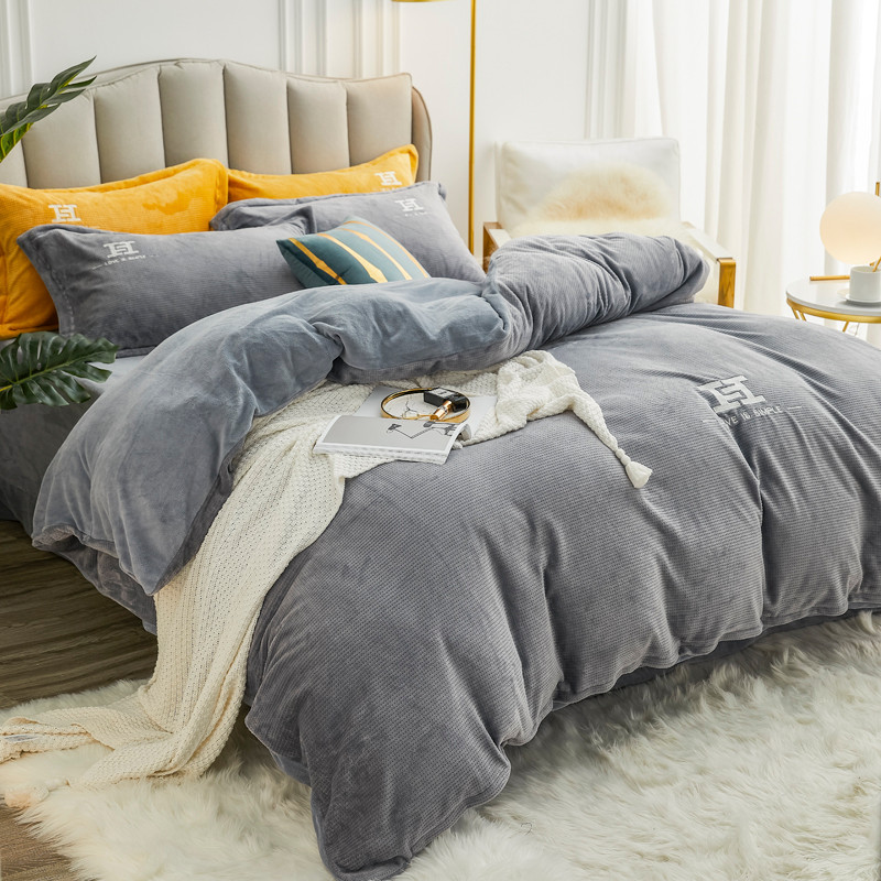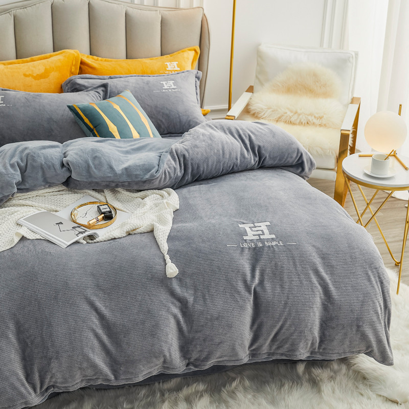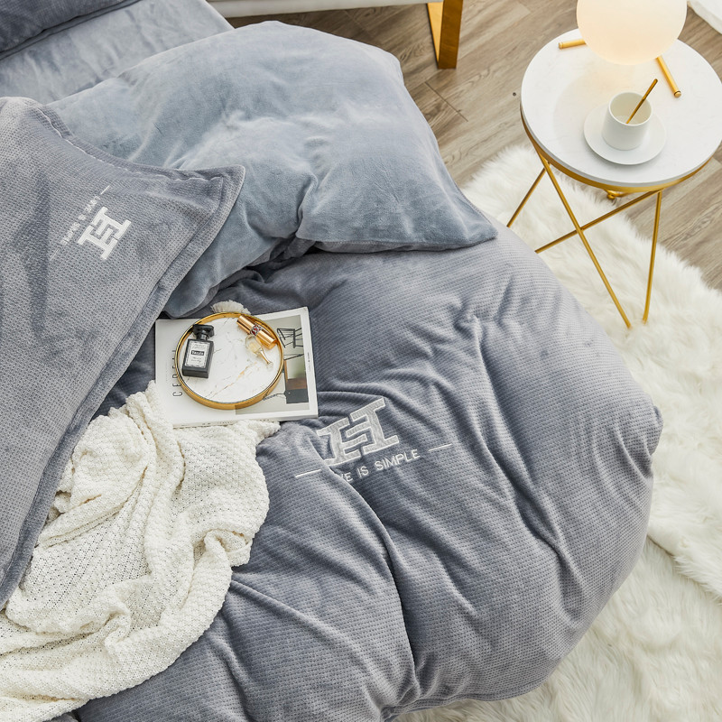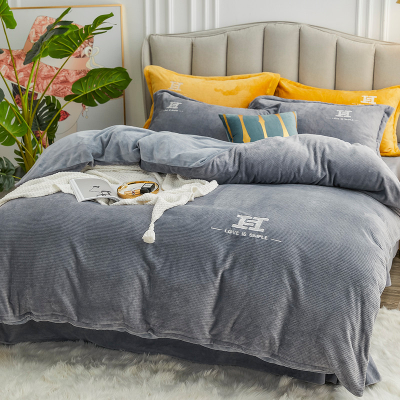 商品名称:锦罗绣 2021新款牛奶绒绣花四件套 love灰