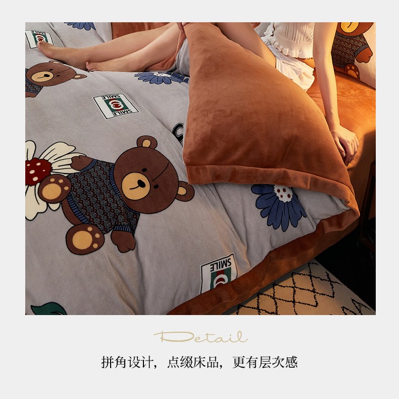澳洲羽 2024年新牛奶绒拼角印花四件套水晶法莱绒直播供货 泰迪熊