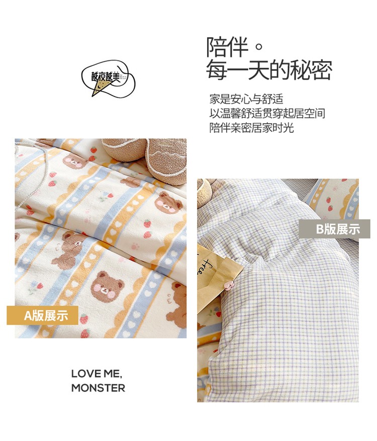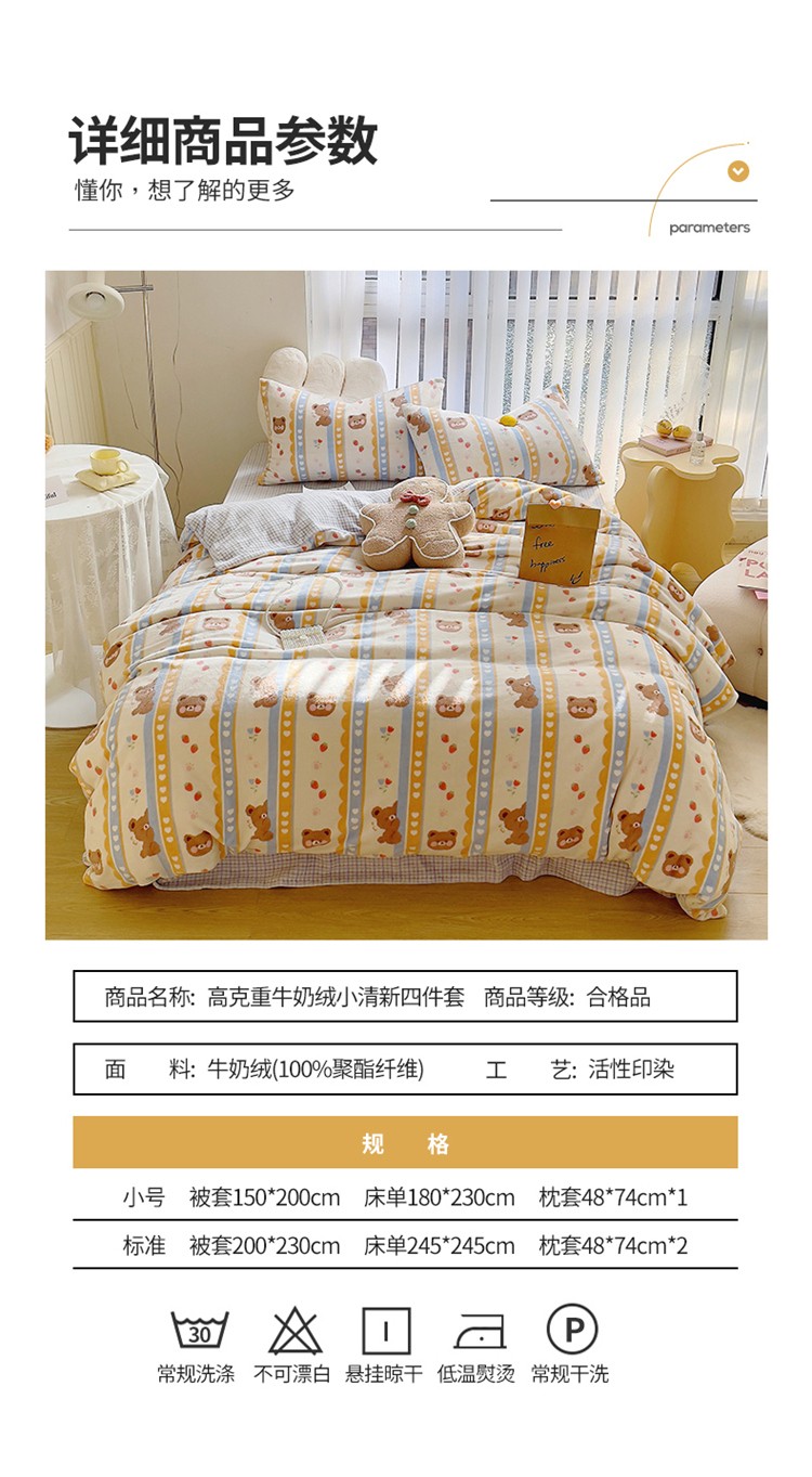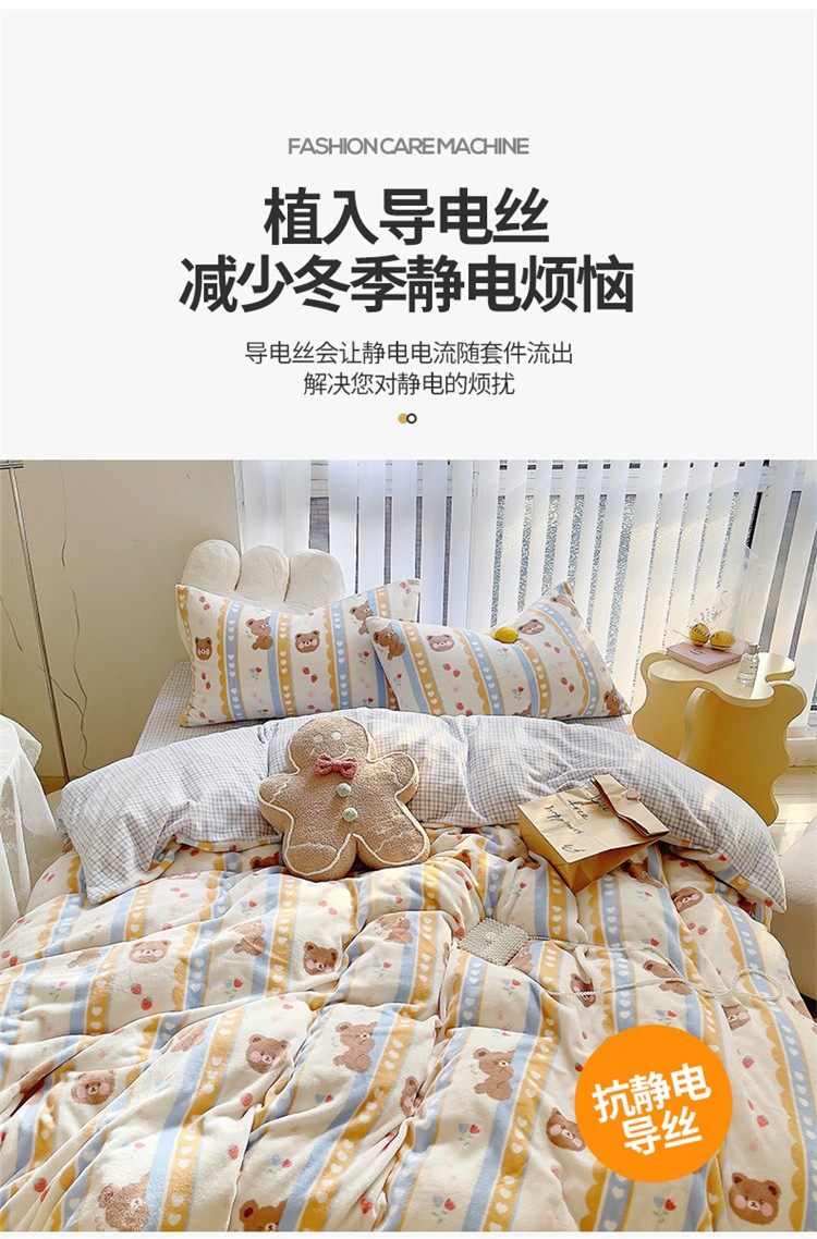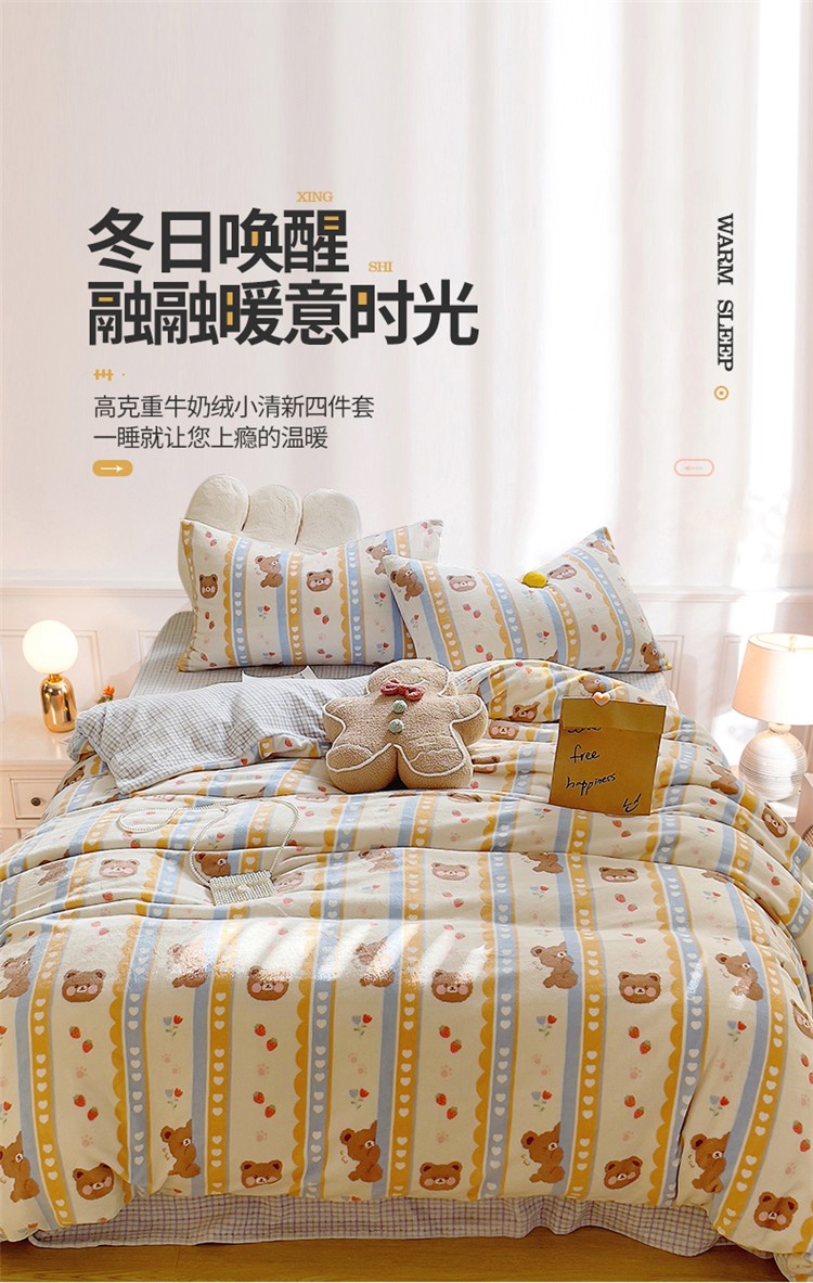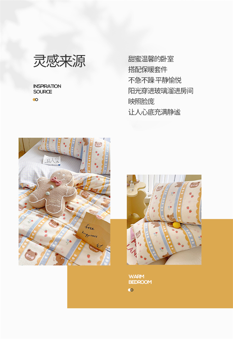 商品名称:圆岛 2021新款高克重牛奶绒ins小清新四件套 软萌熊