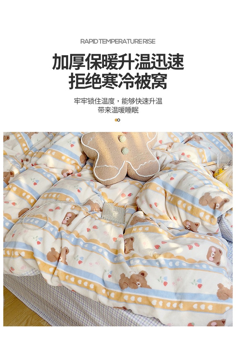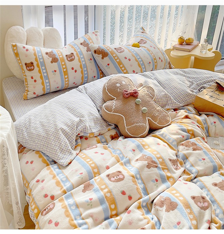 圆岛 2021新款高克重牛奶绒ins小清新四件套 软萌熊