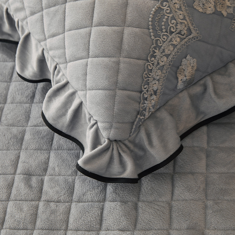 (总)瑞宝 2025新款雕花牛奶绒花边夹棉床盖四件套-莫妮卡,奶昔白,抹茶绿,奶茶咖,少女粉,雾蓝