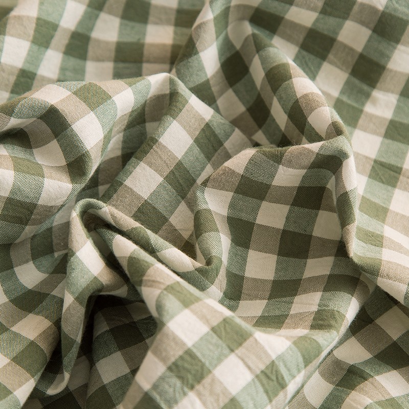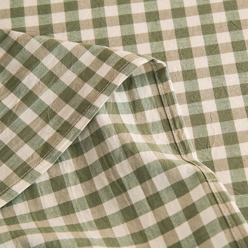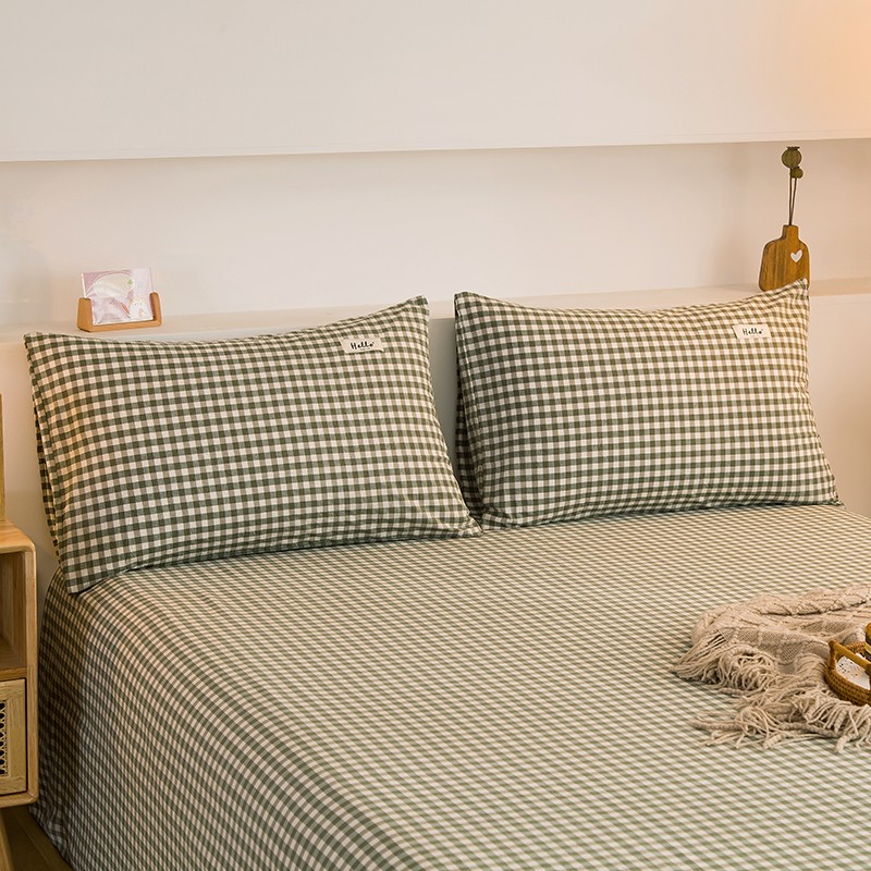 柠萌2021新款全棉色织水洗棉枕套 草绿小格(一对)