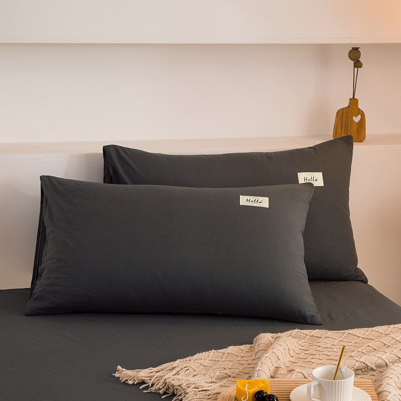 商品名称:柠萌2021新款全棉色织水洗棉枕套 黑灰色(一对)