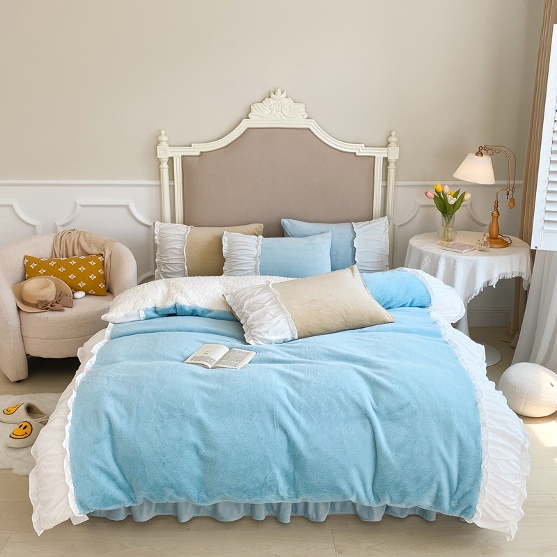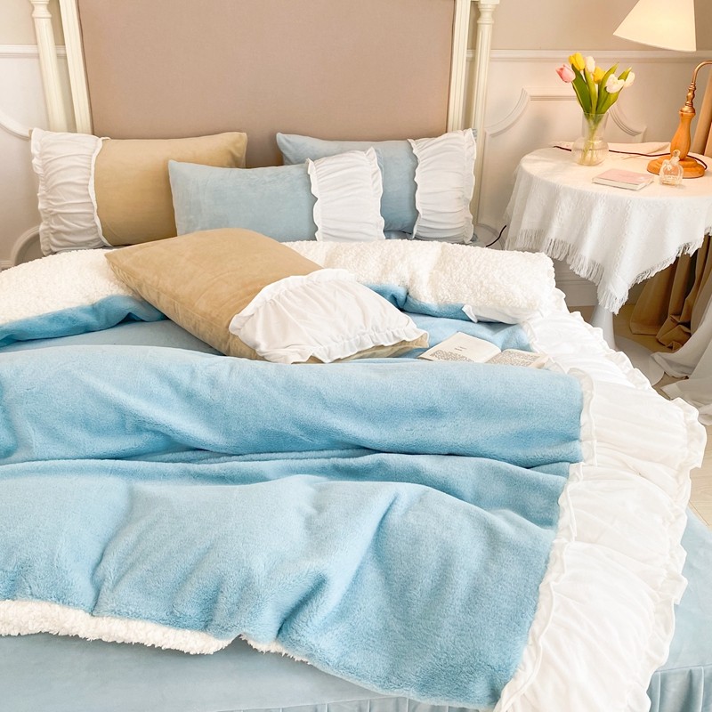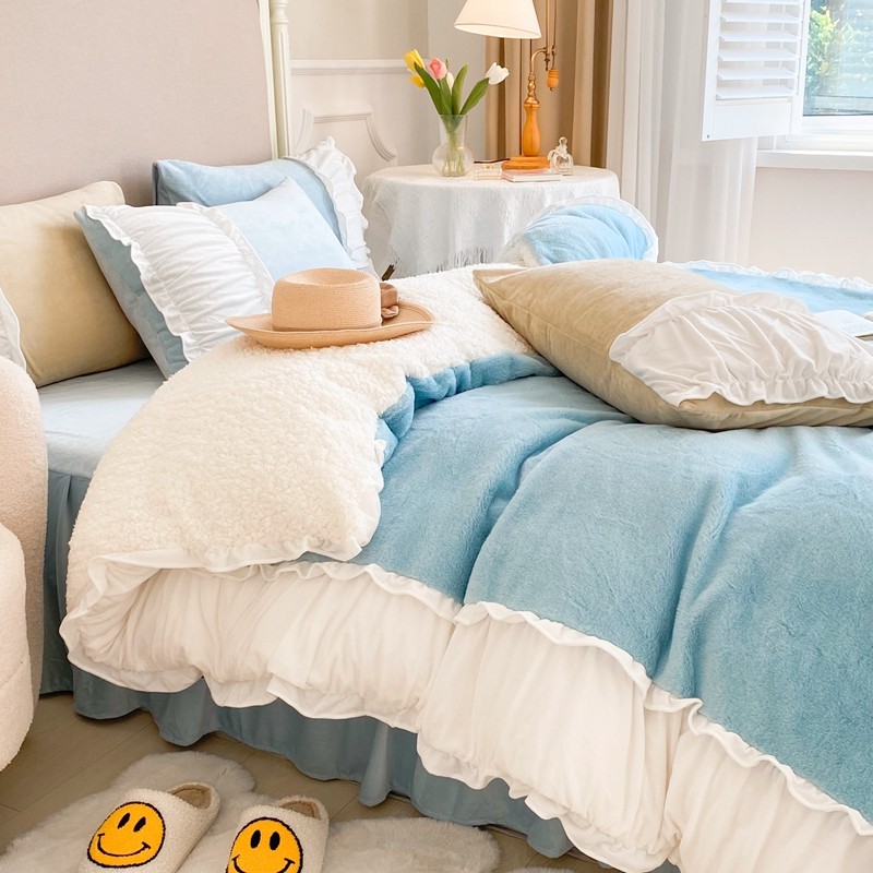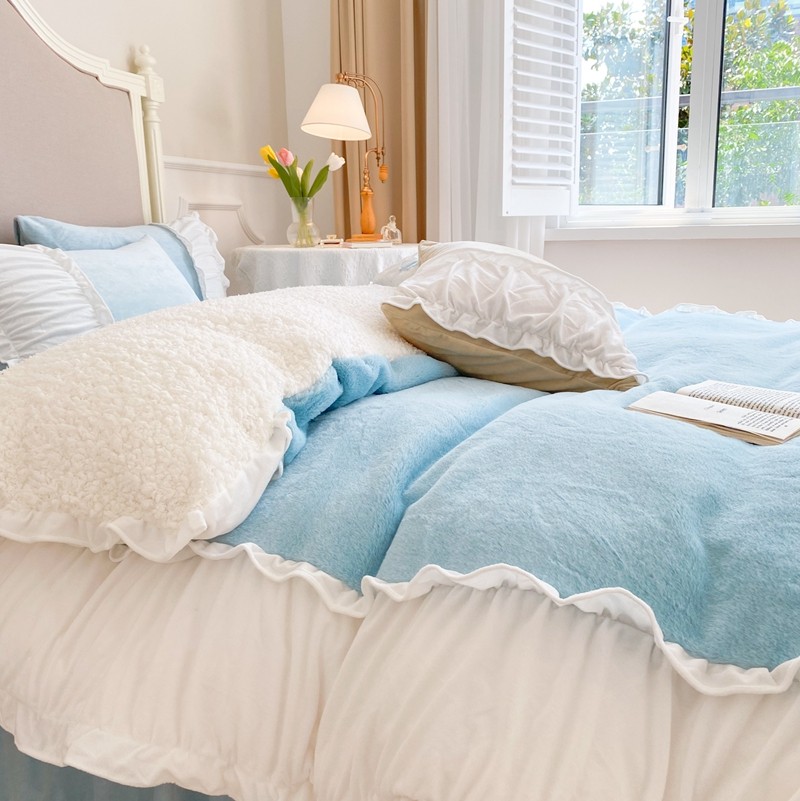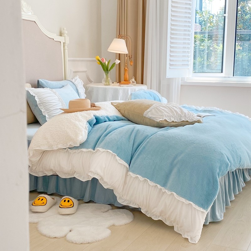 漫调 2021新款荷叶边兔兔绒韩版四件套 Tiffany 兰