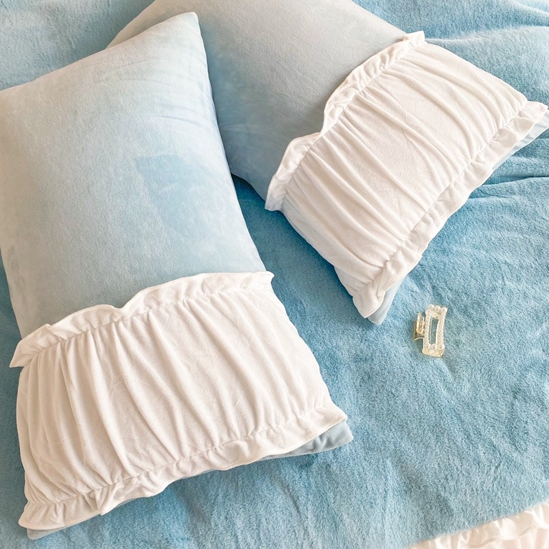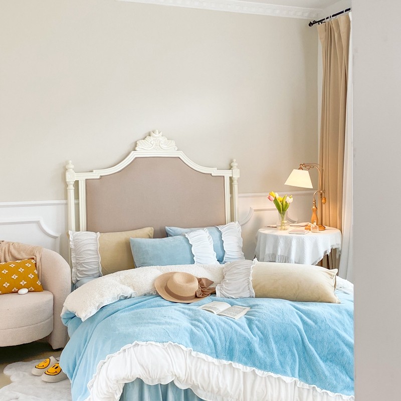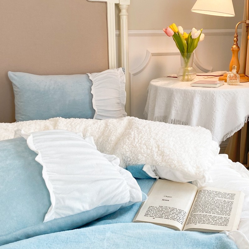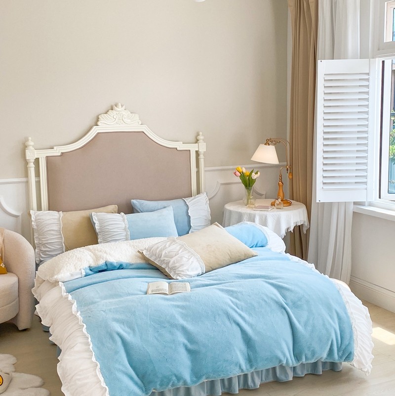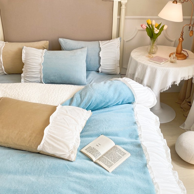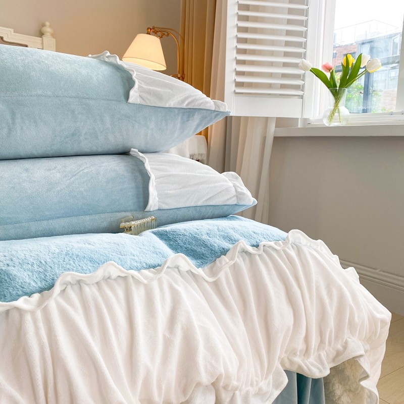 漫调 2021新款荷叶边兔兔绒韩版四件套 Tiffany 兰