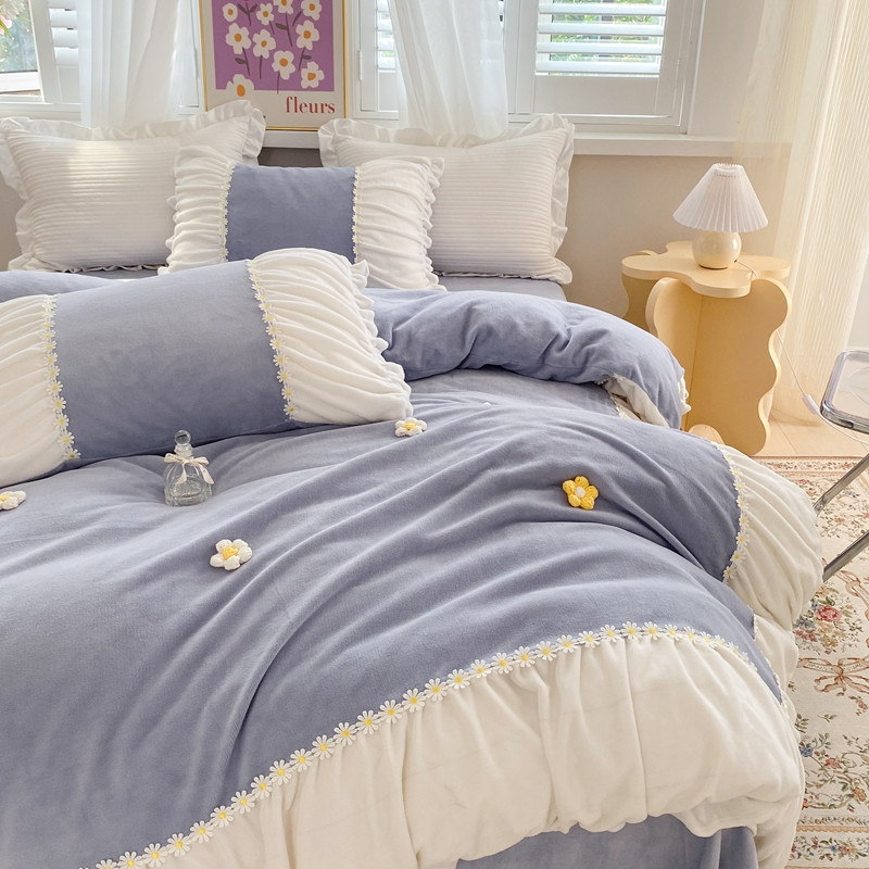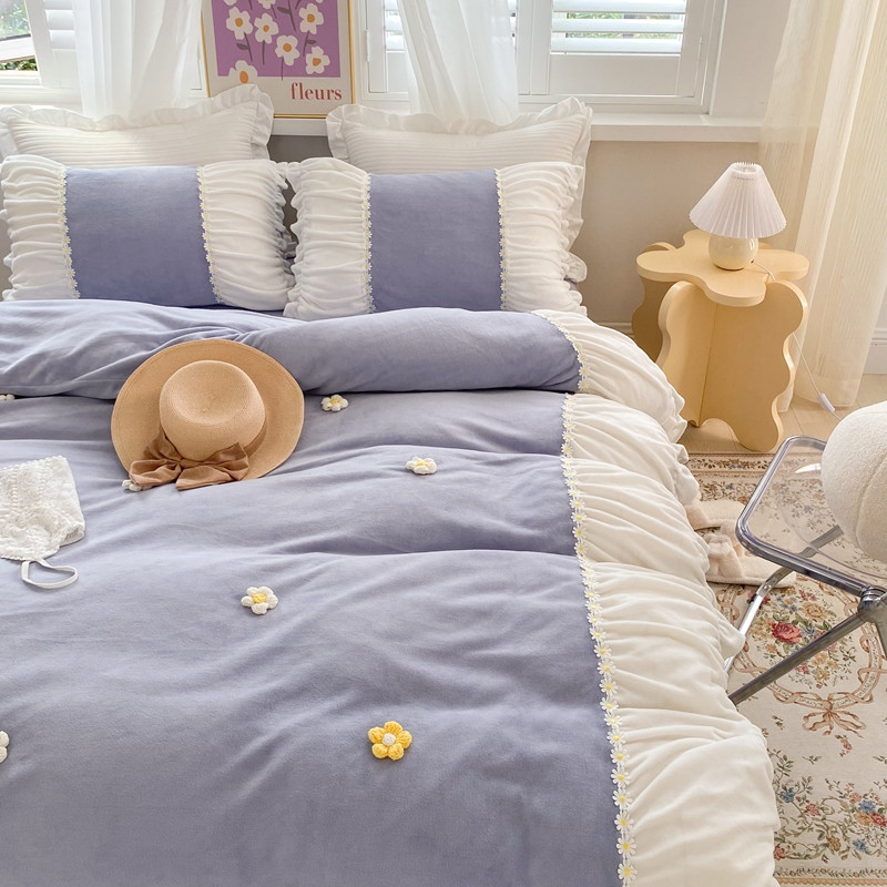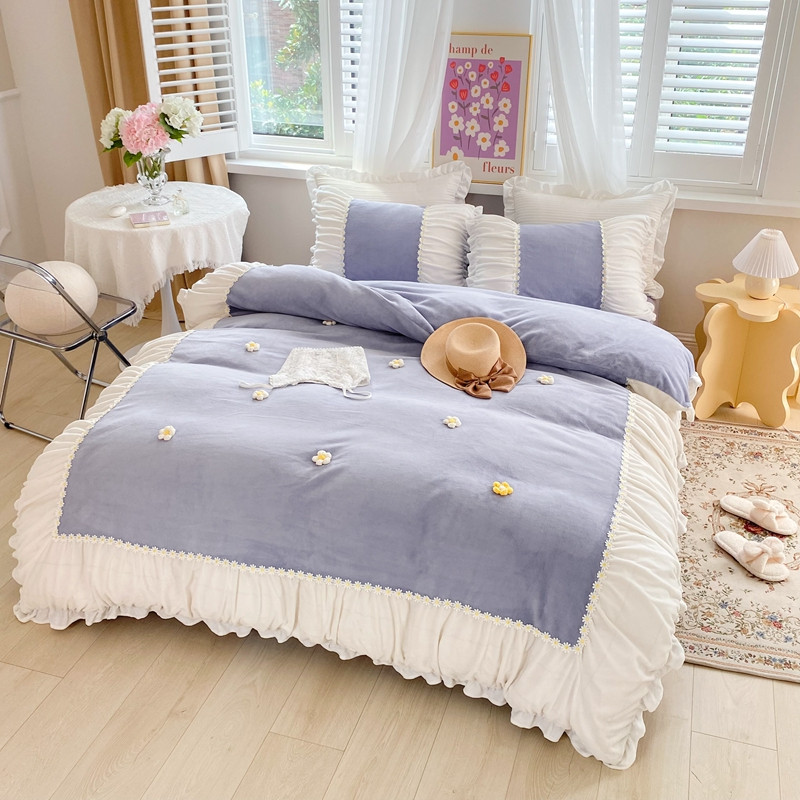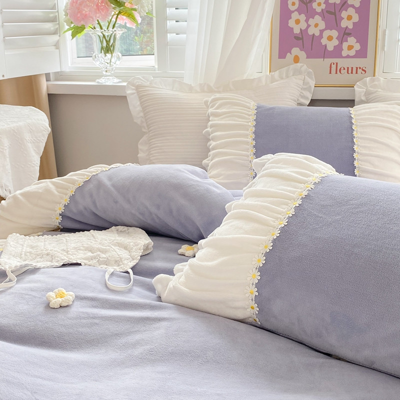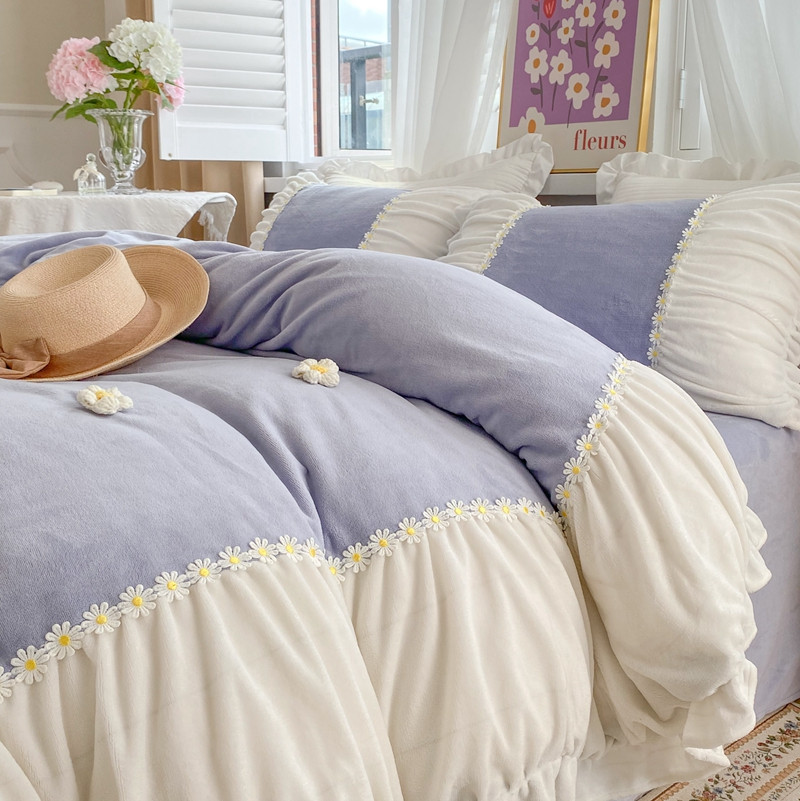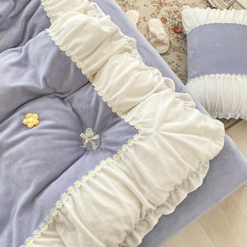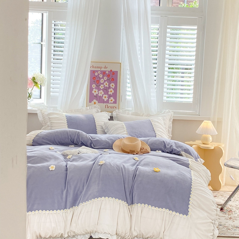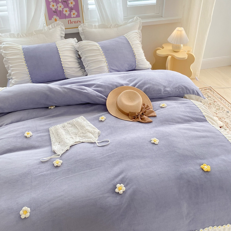 漫调家纺2021新款法式安妮小花朵牛奶绒四件套 安妮小花 紫