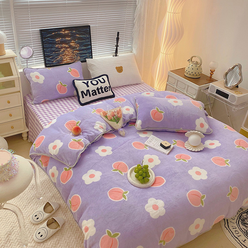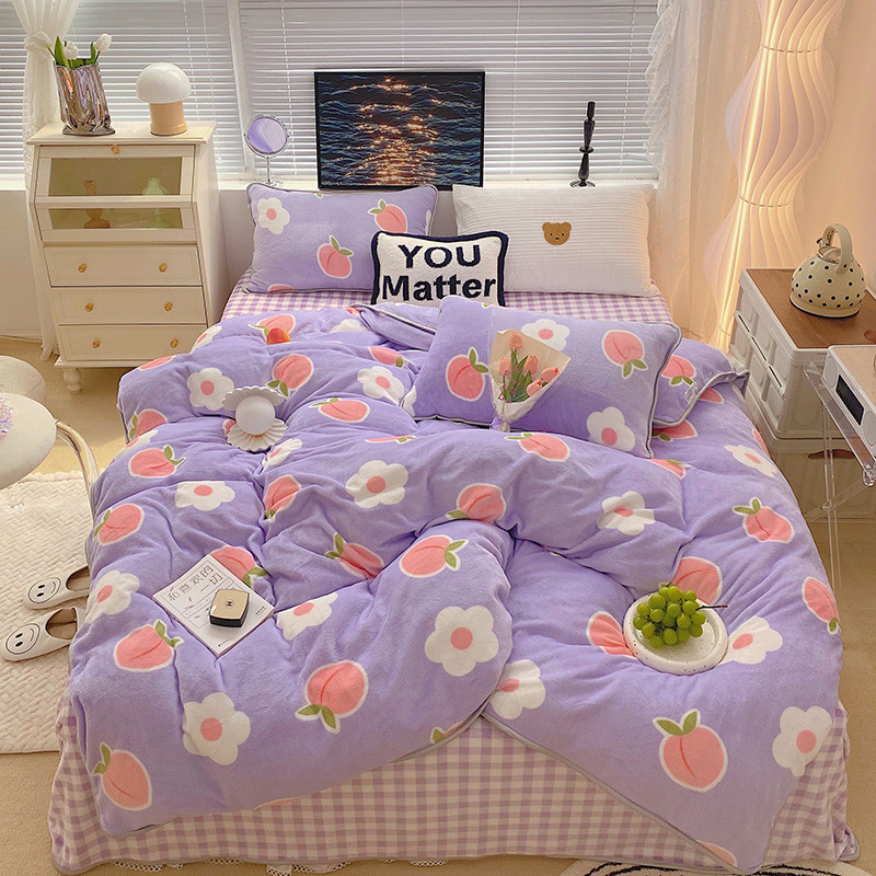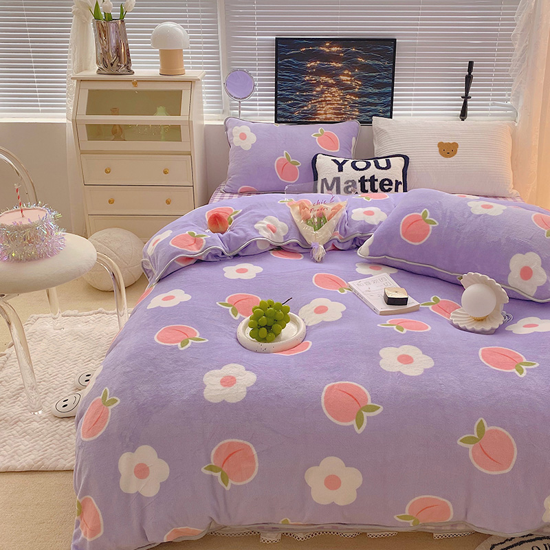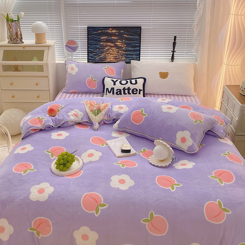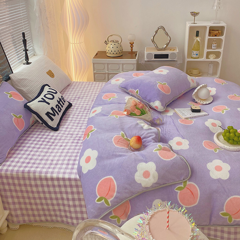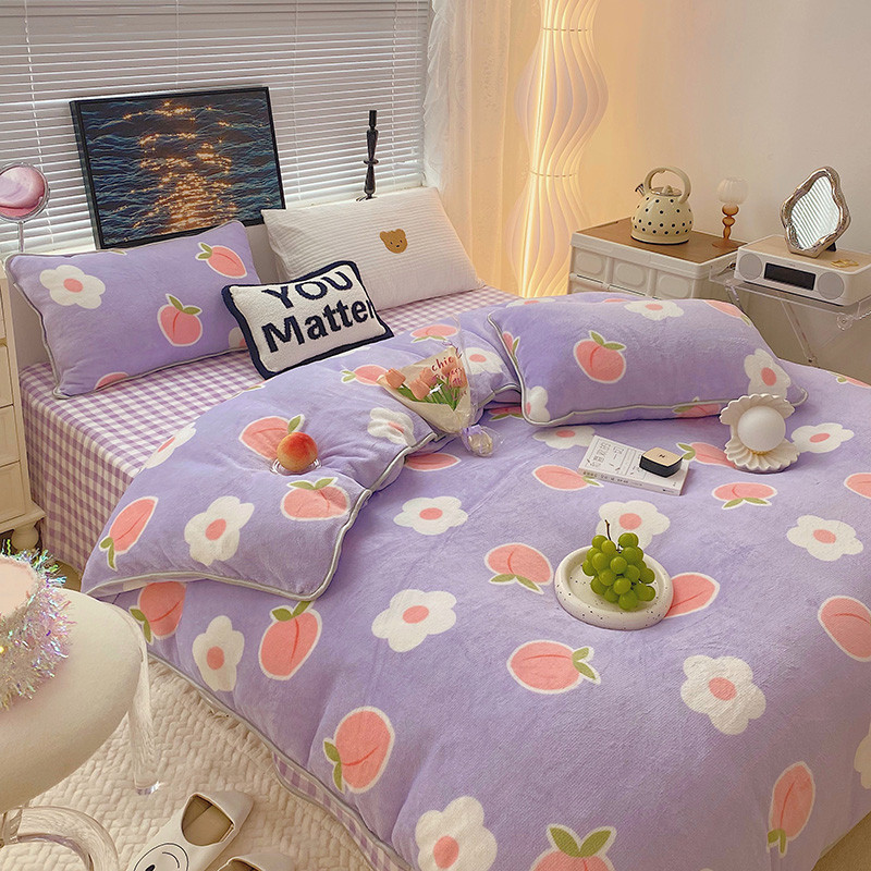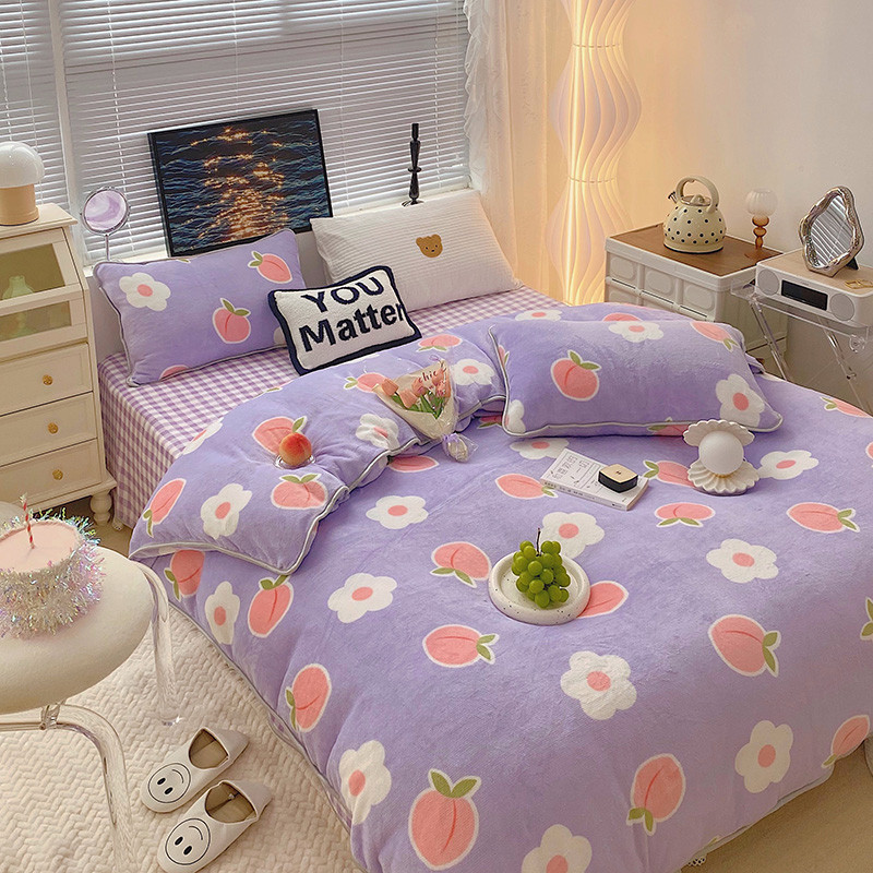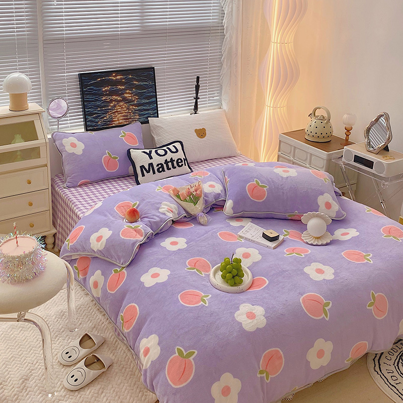 顾里2021新款ins韩国高端保暖牛奶绒四件套 花朵蜜桃
