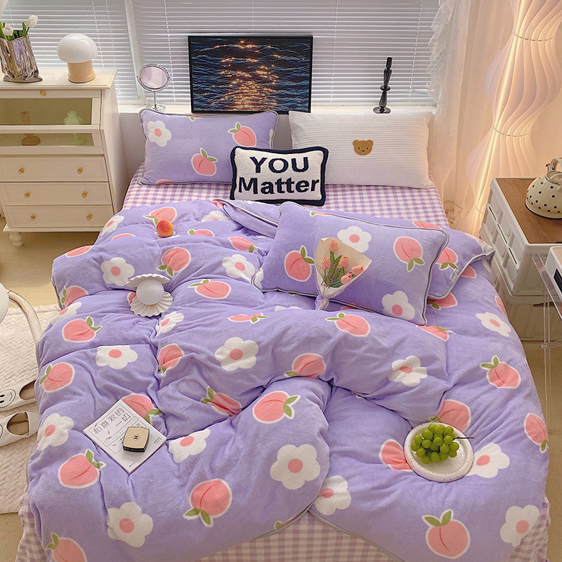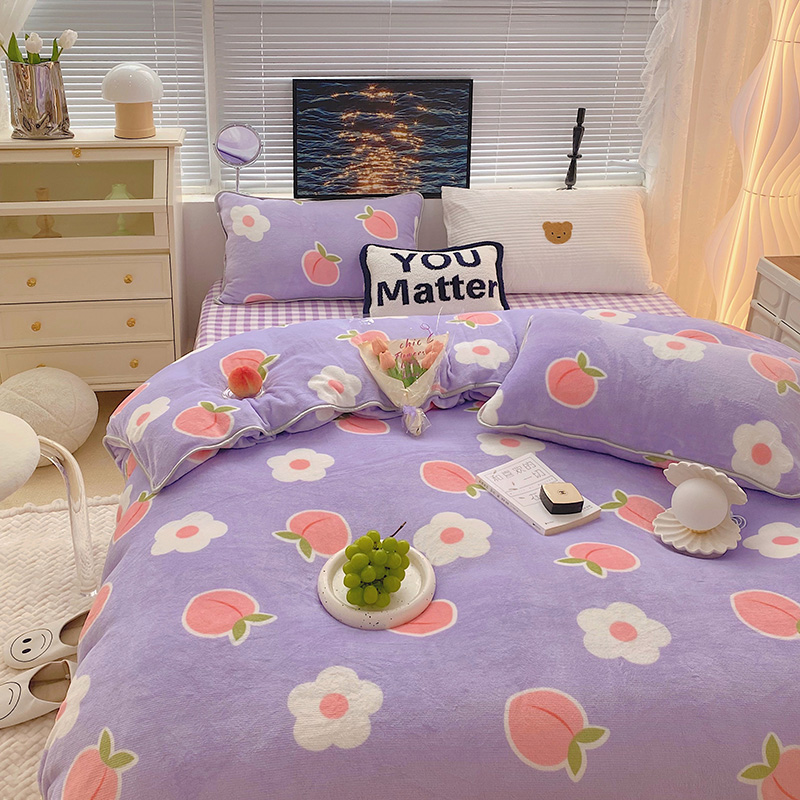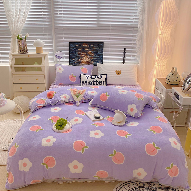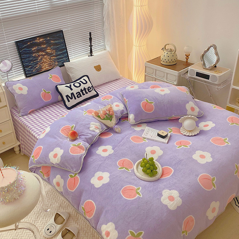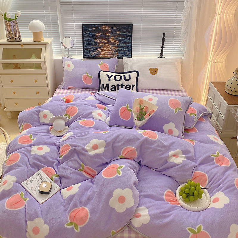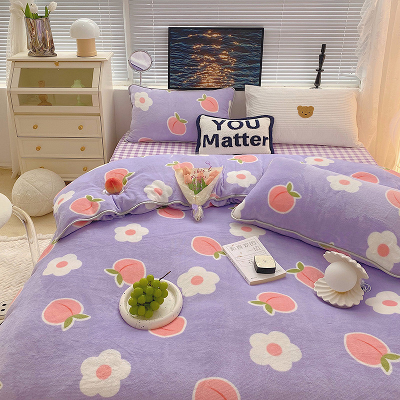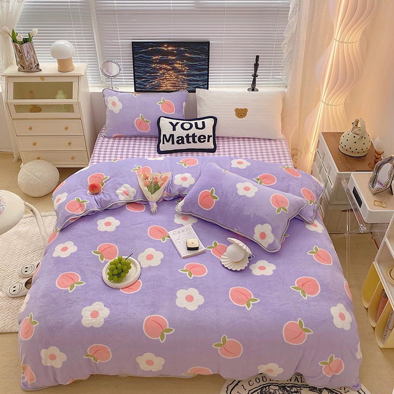顾里2021新款ins韩国高端保暖牛奶绒四件套 花朵蜜桃