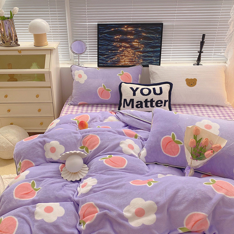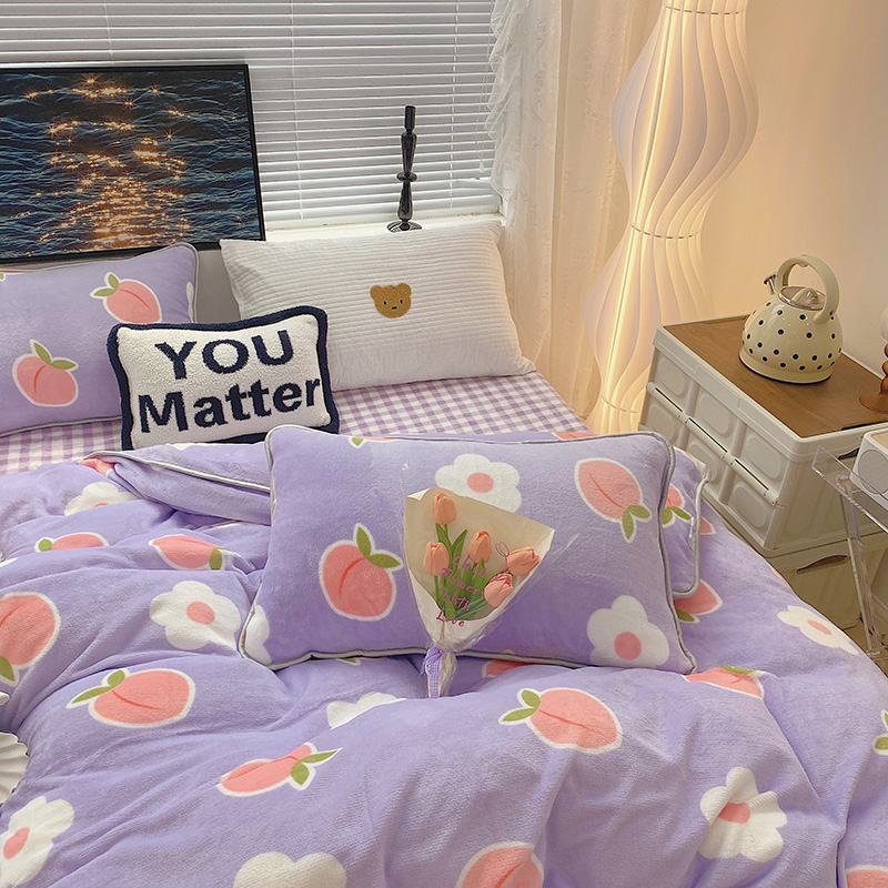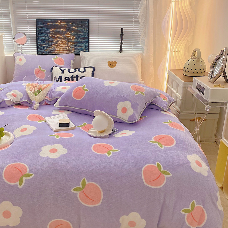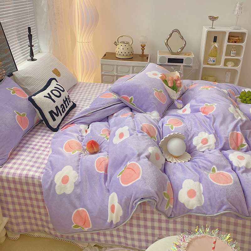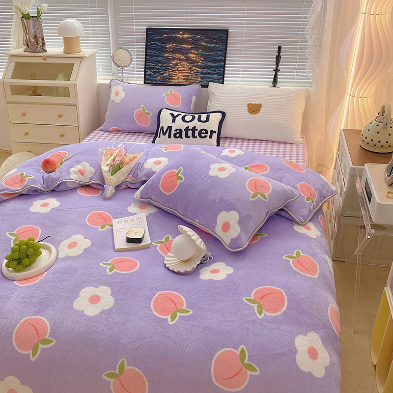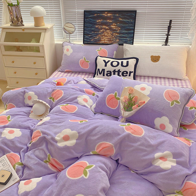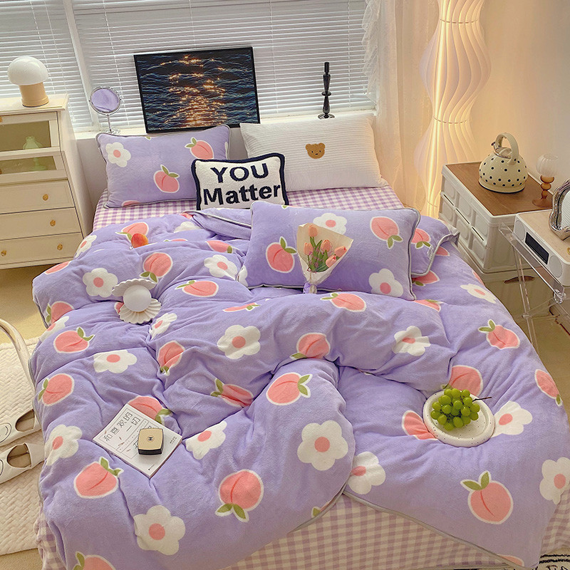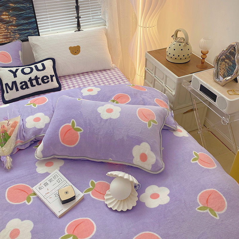 顾里2021新款ins韩国高端保暖牛奶绒四件套 花朵蜜桃