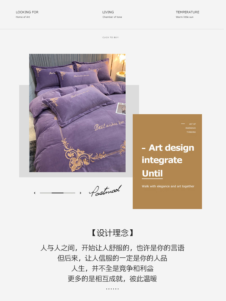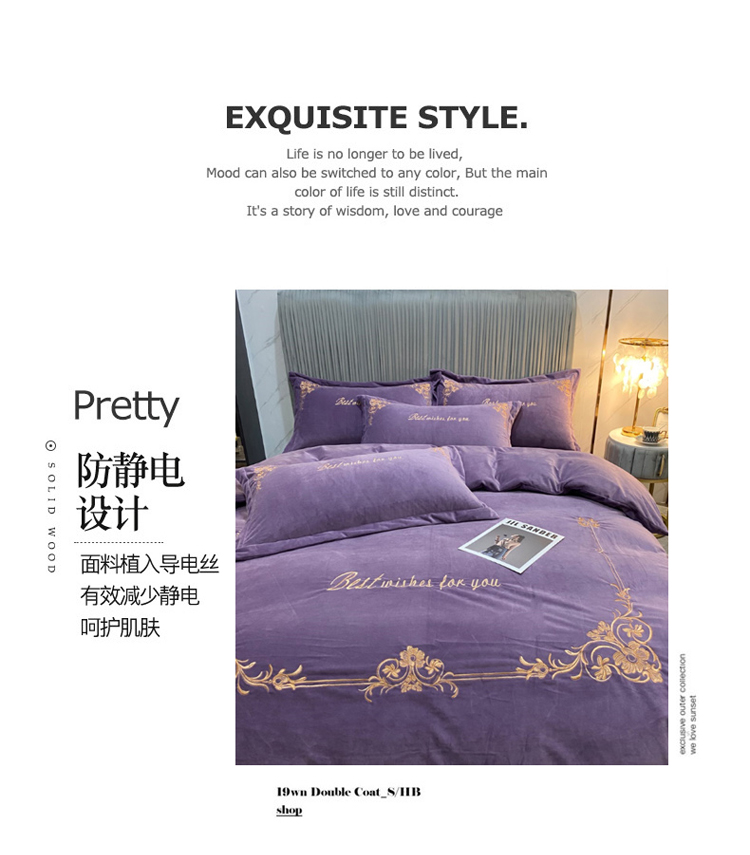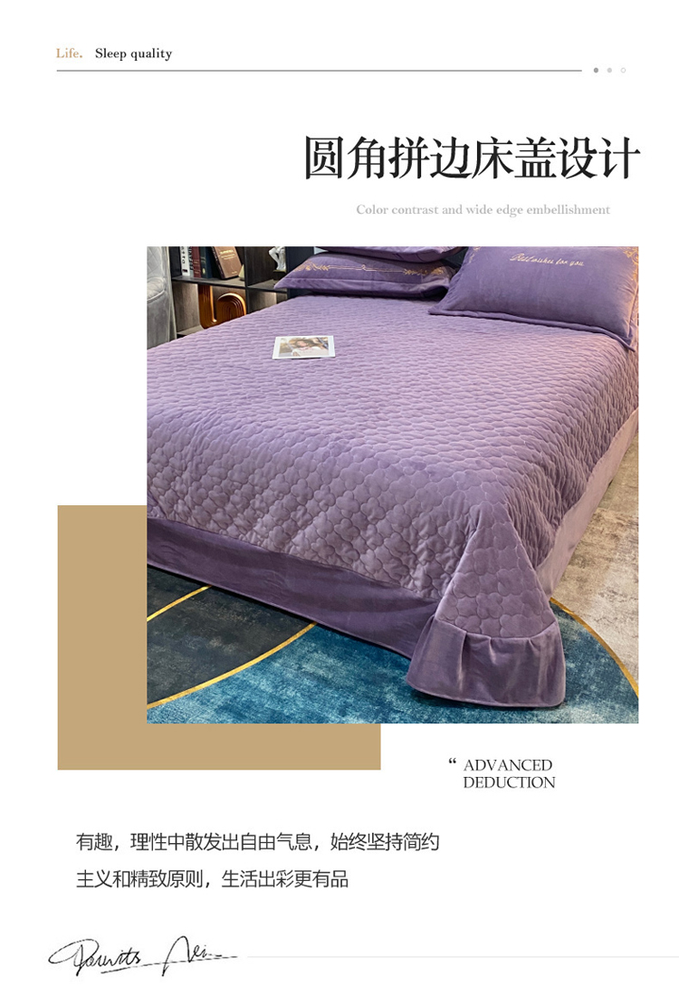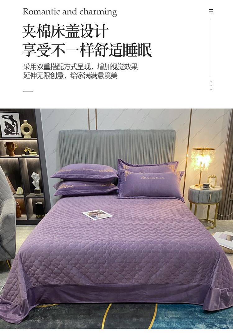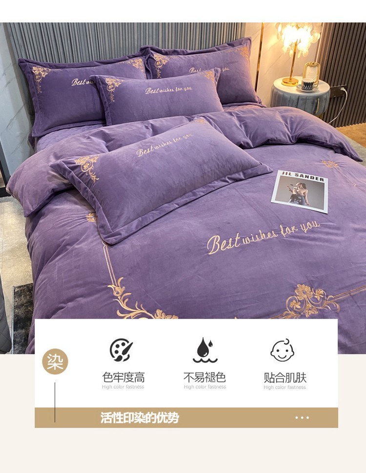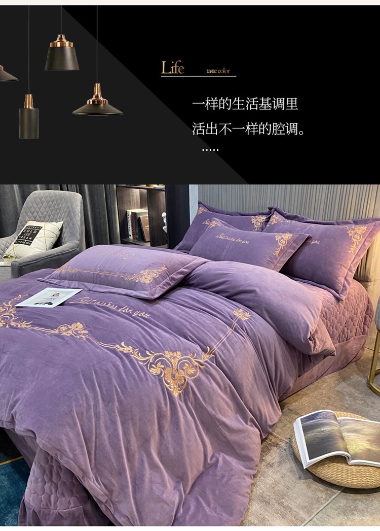 商品名称:星尚2021高品质婴儿绒夹棉床盖绣花四件套牛奶法莱绒 优雅紫