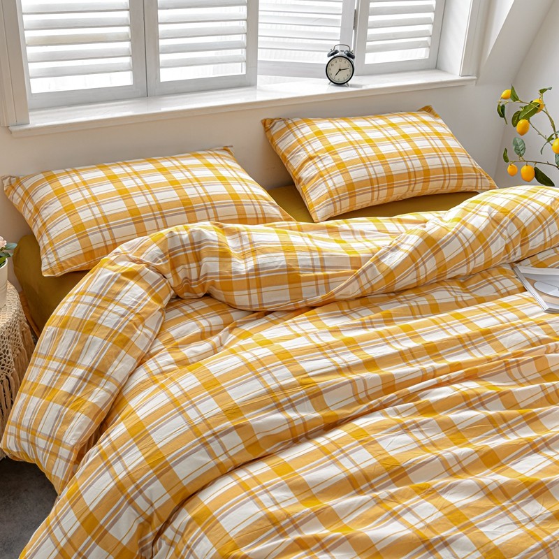 商品名称:雅珺 2021新款色织全棉水洗棉四件套AB版 芒果格