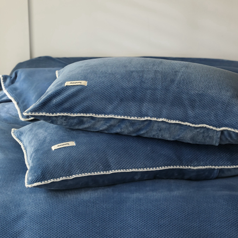 商品名称:富瑞阁 2024新款太阳格加厚提花牛奶绒枕套对装 深海蓝
