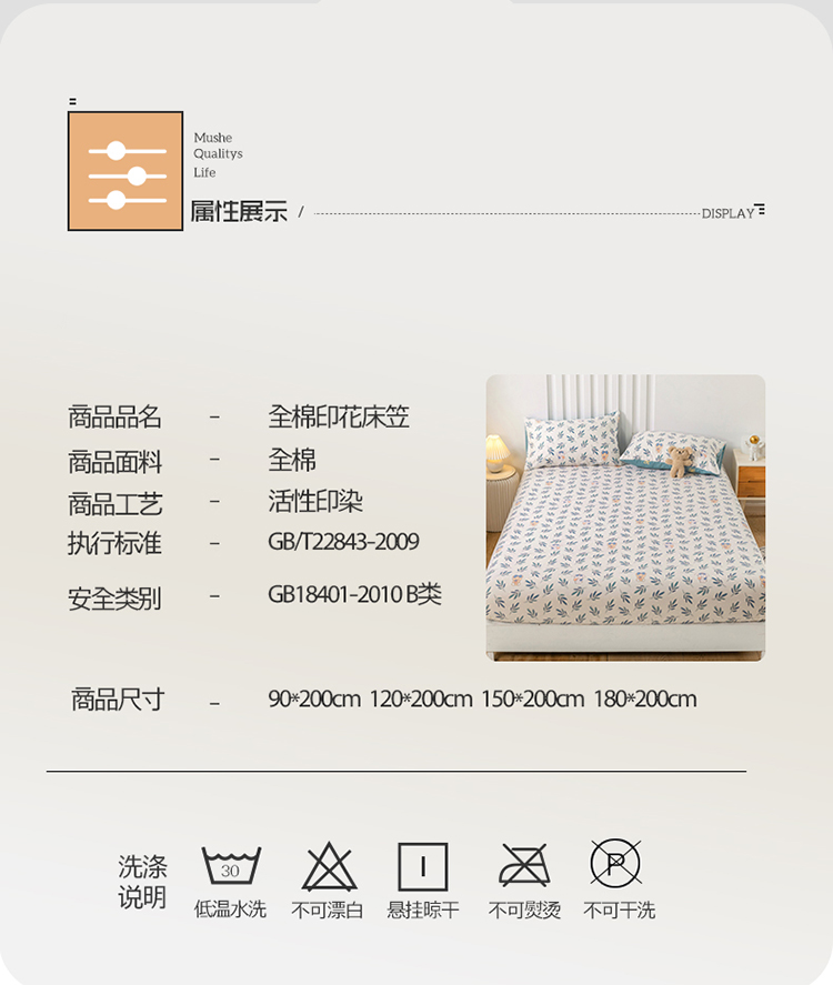 商品名称:名兮 2022新款纯棉印花床笠 花花熊