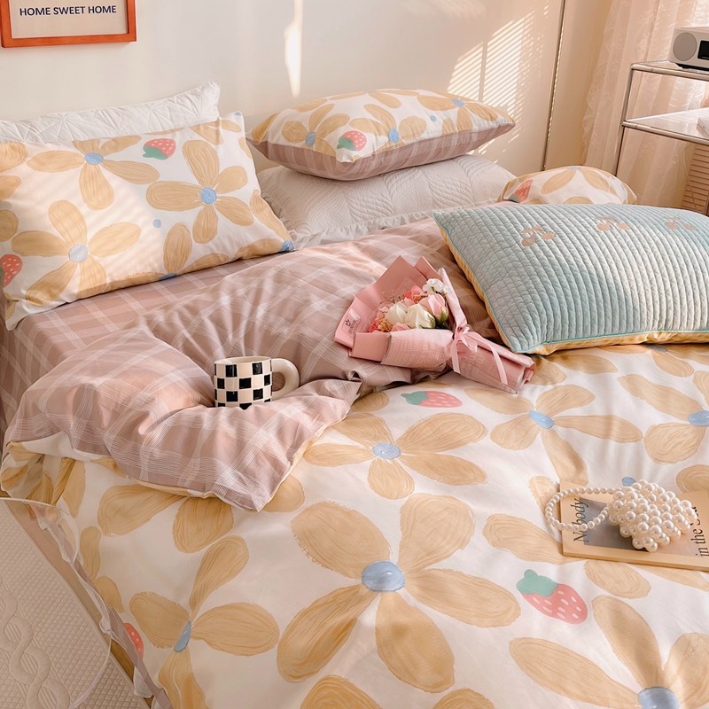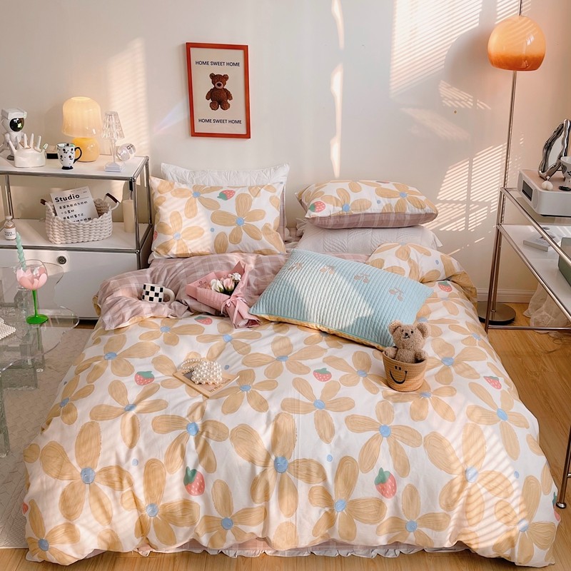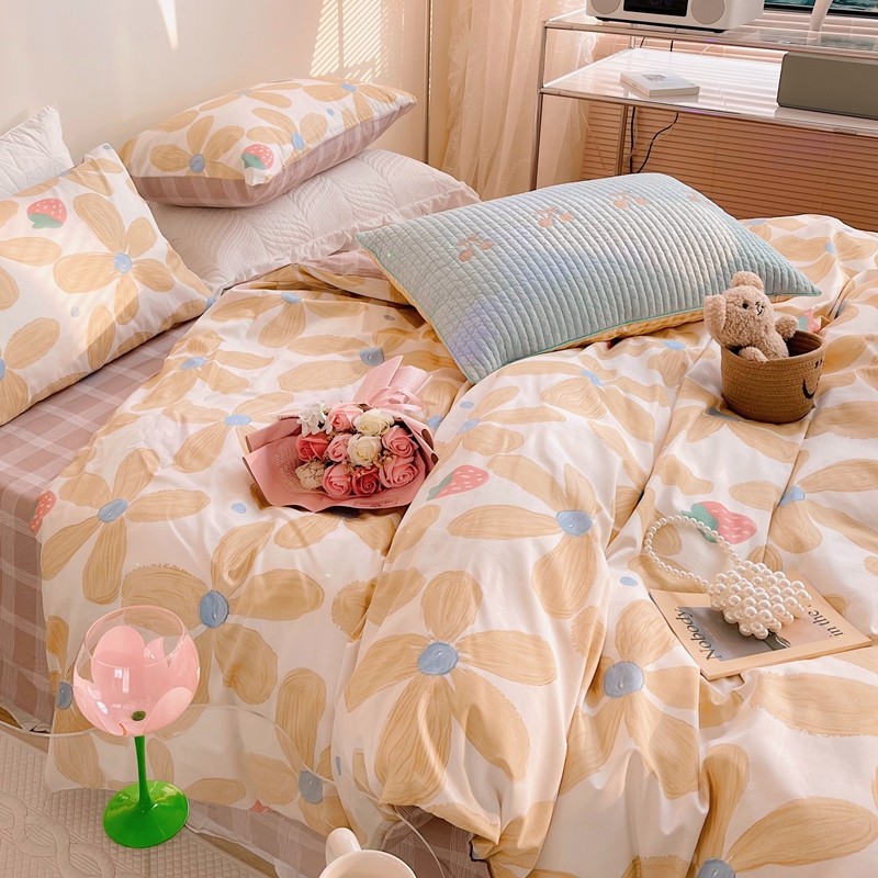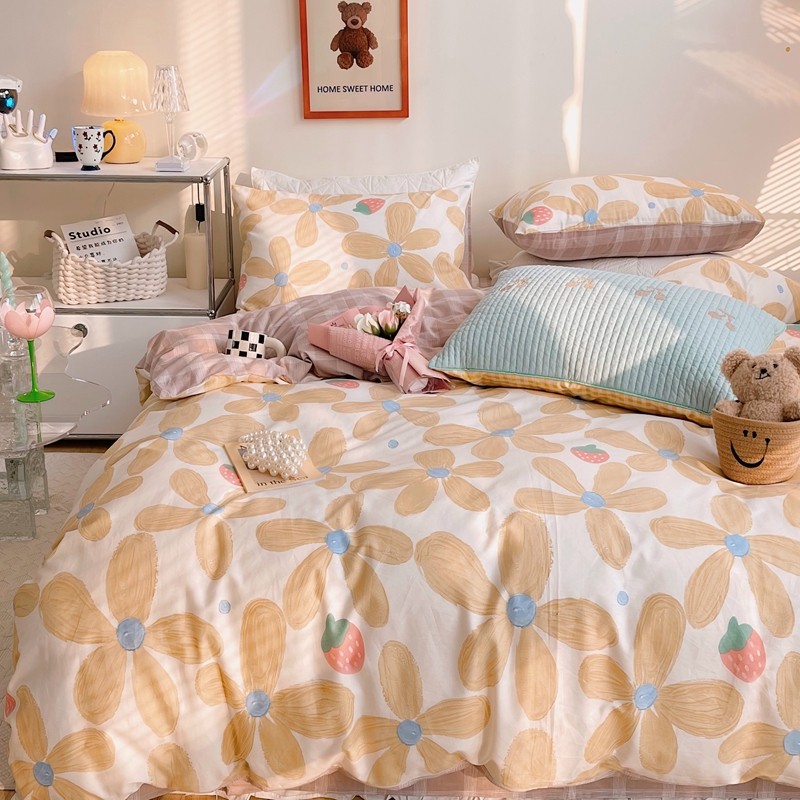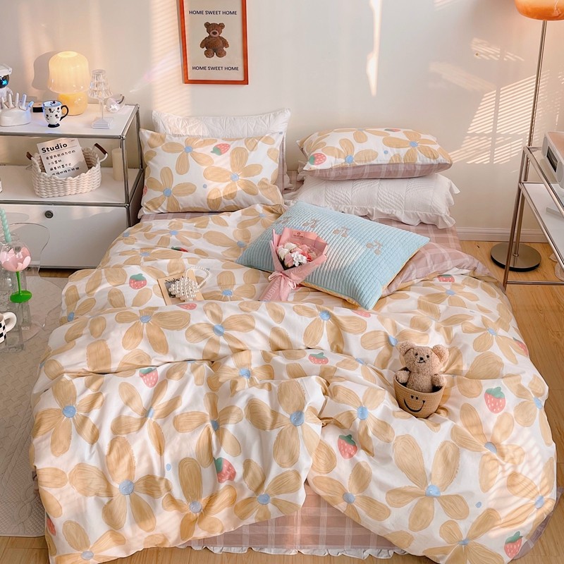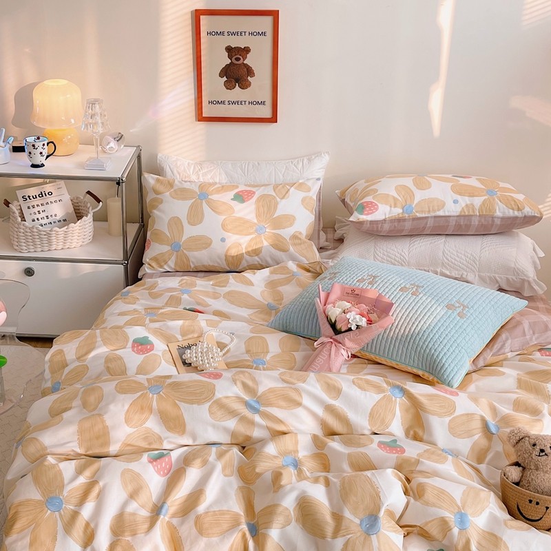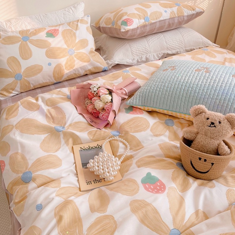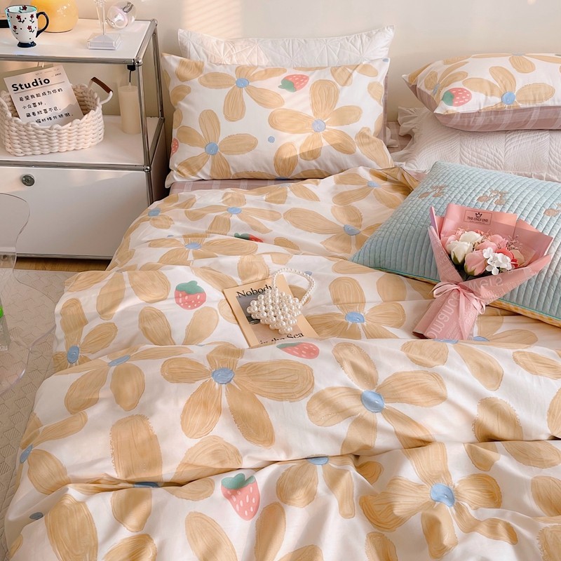 商品名称:顾里 2022新款13372全棉四件套-韩系花卉类 黄花草莓