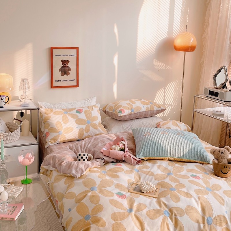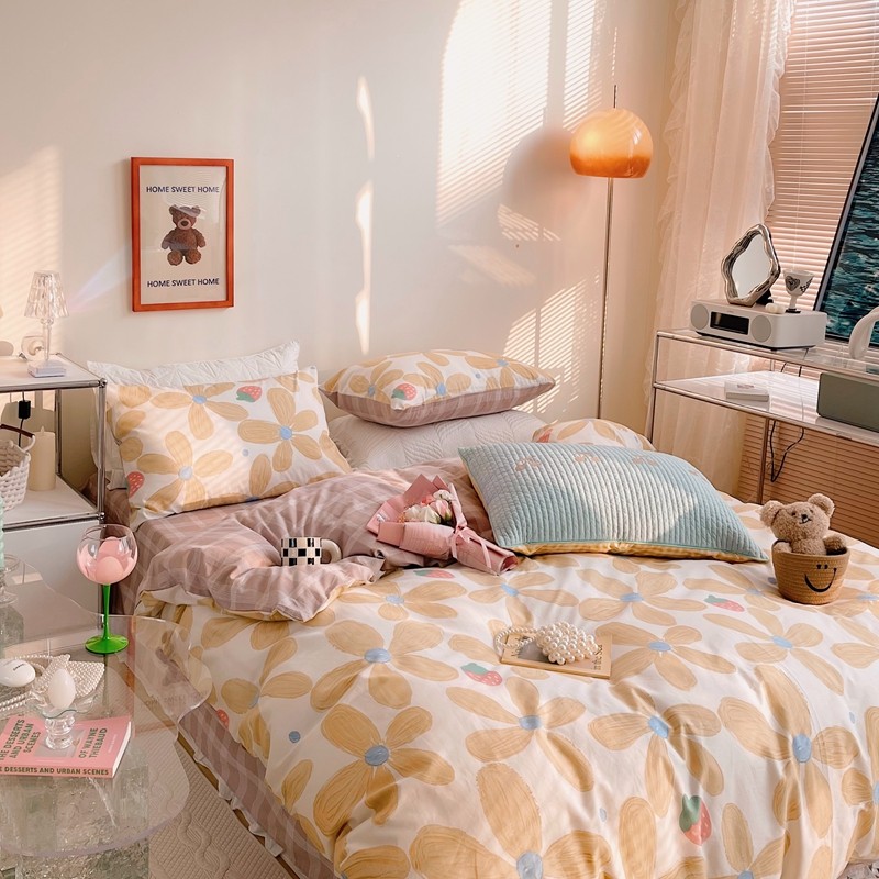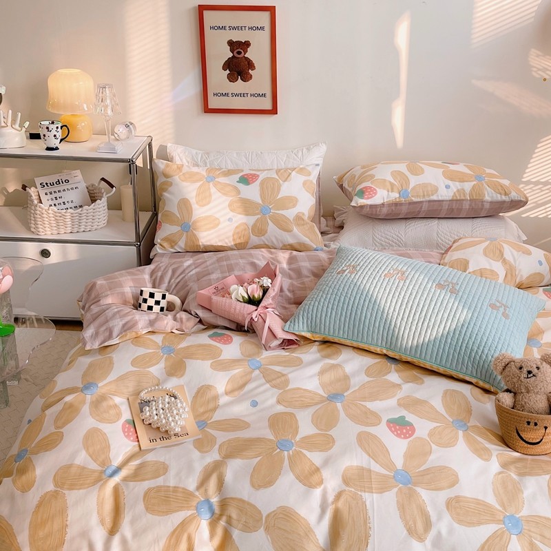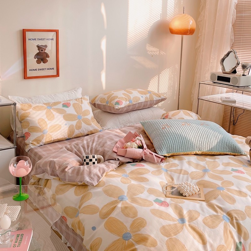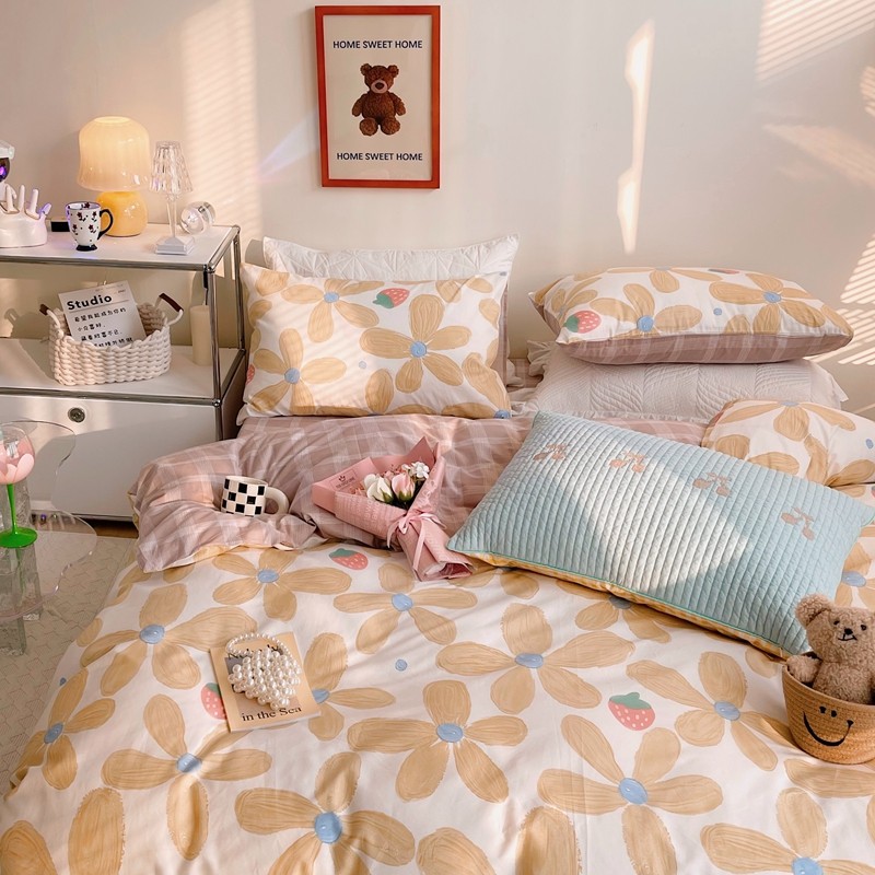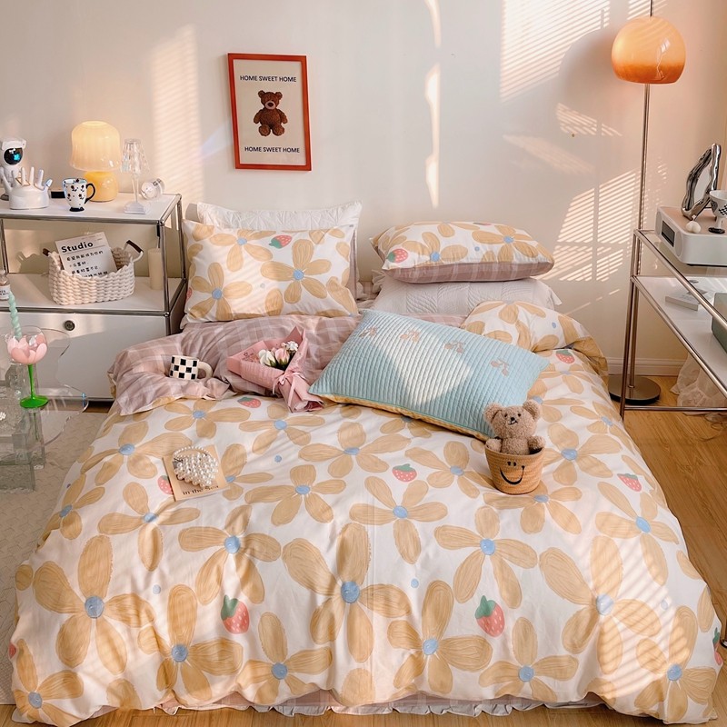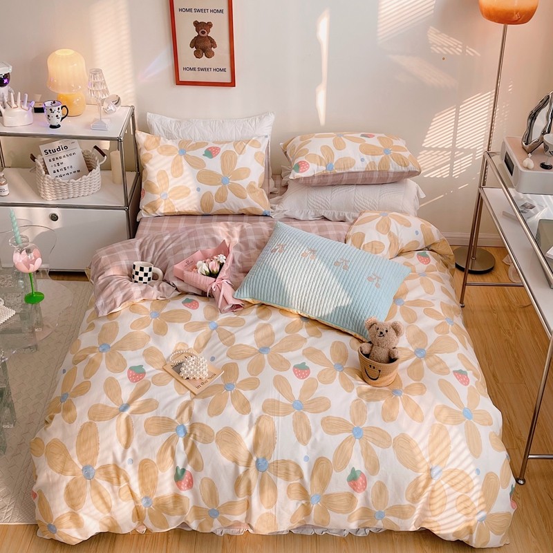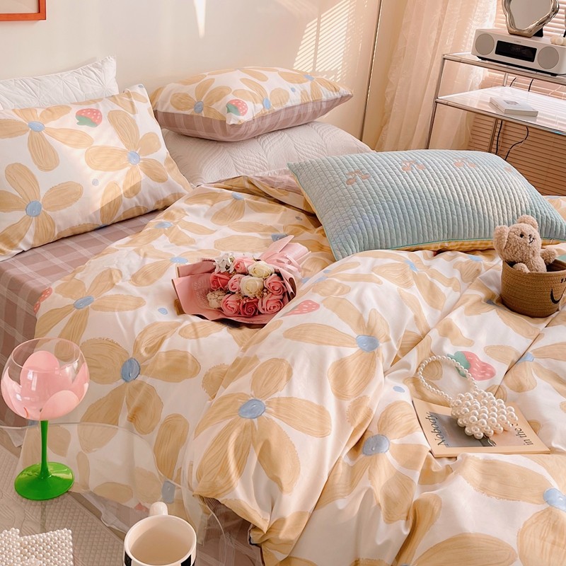 商品名称:顾里 2022新款13372全棉四件套-韩系花卉类 黄花草莓