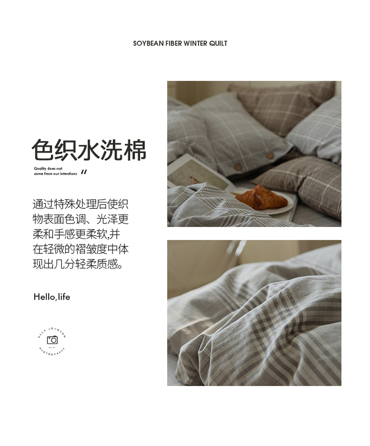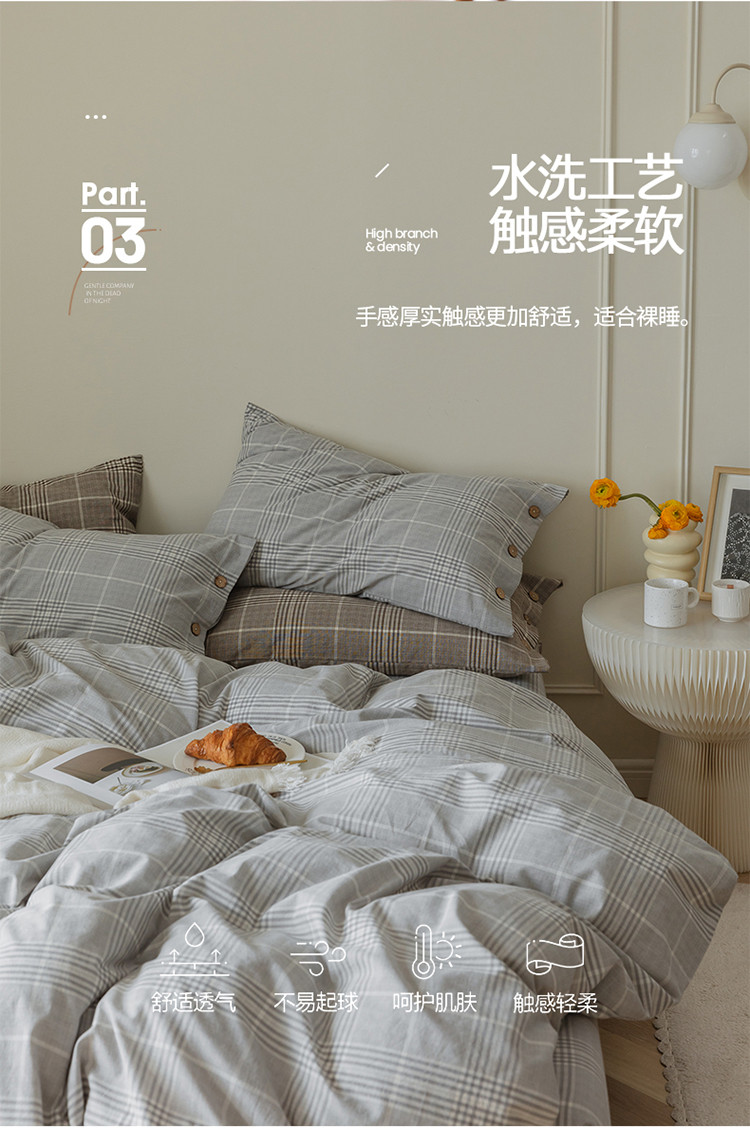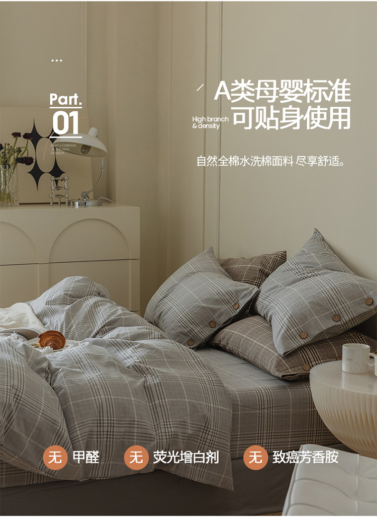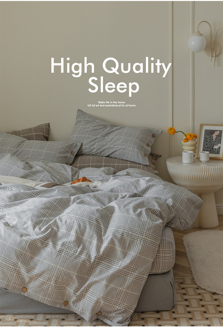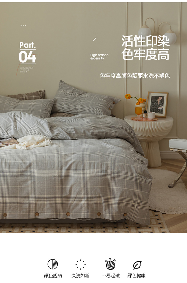 当前位置: 91家纺网 > 商品网购 > 床品套件 > 四件套 > 水洗棉四件套 > 寐眠 22年A类水洗棉全棉纽扣款四件套 冷灰格纽扣款