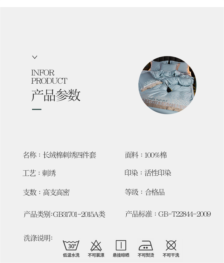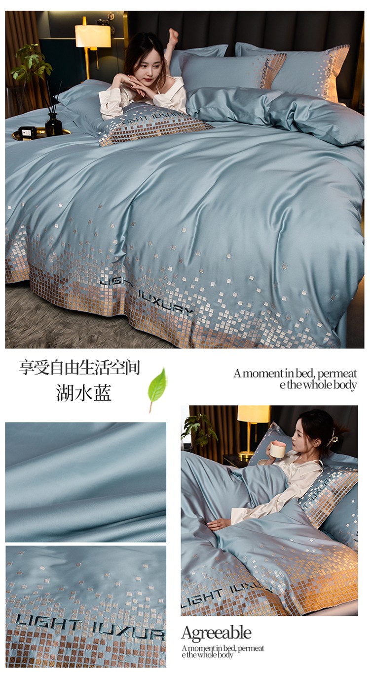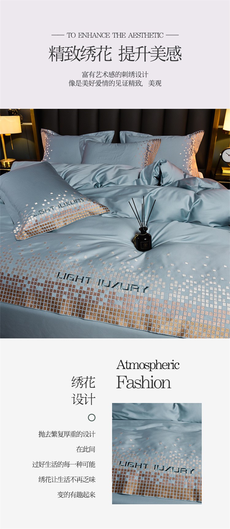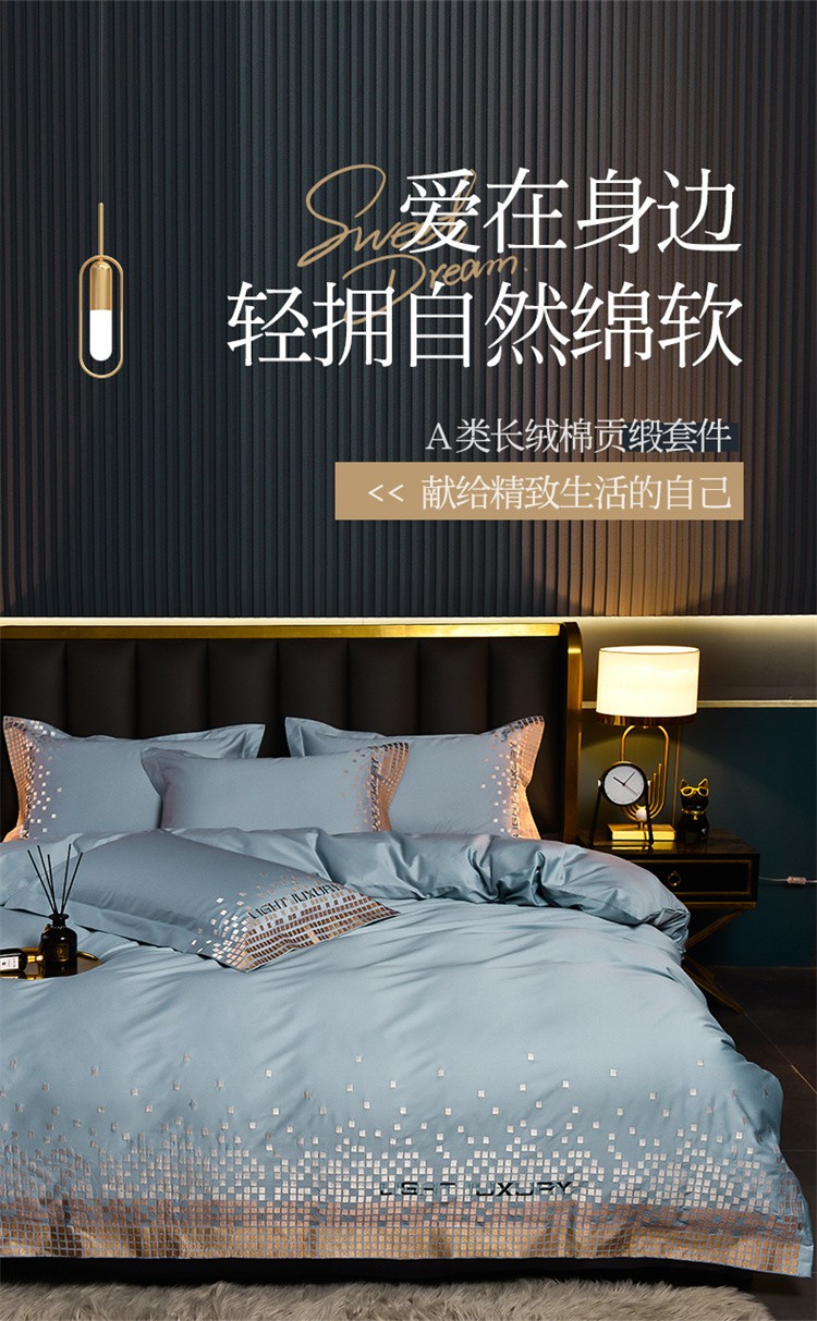 当前位置: 91家纺网 > 商品网购 > 床品套件 > 四件套 > 长绒棉四件套 > 米奈 2024新款A类100S长绒棉刺绣四件套有质检报告-戴纳湖水蓝