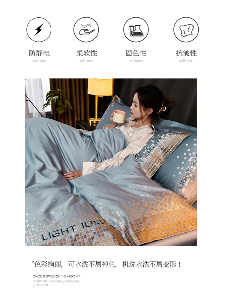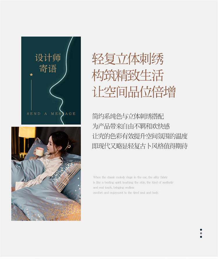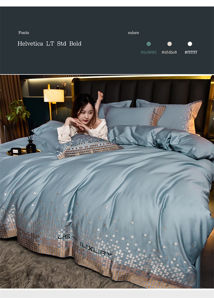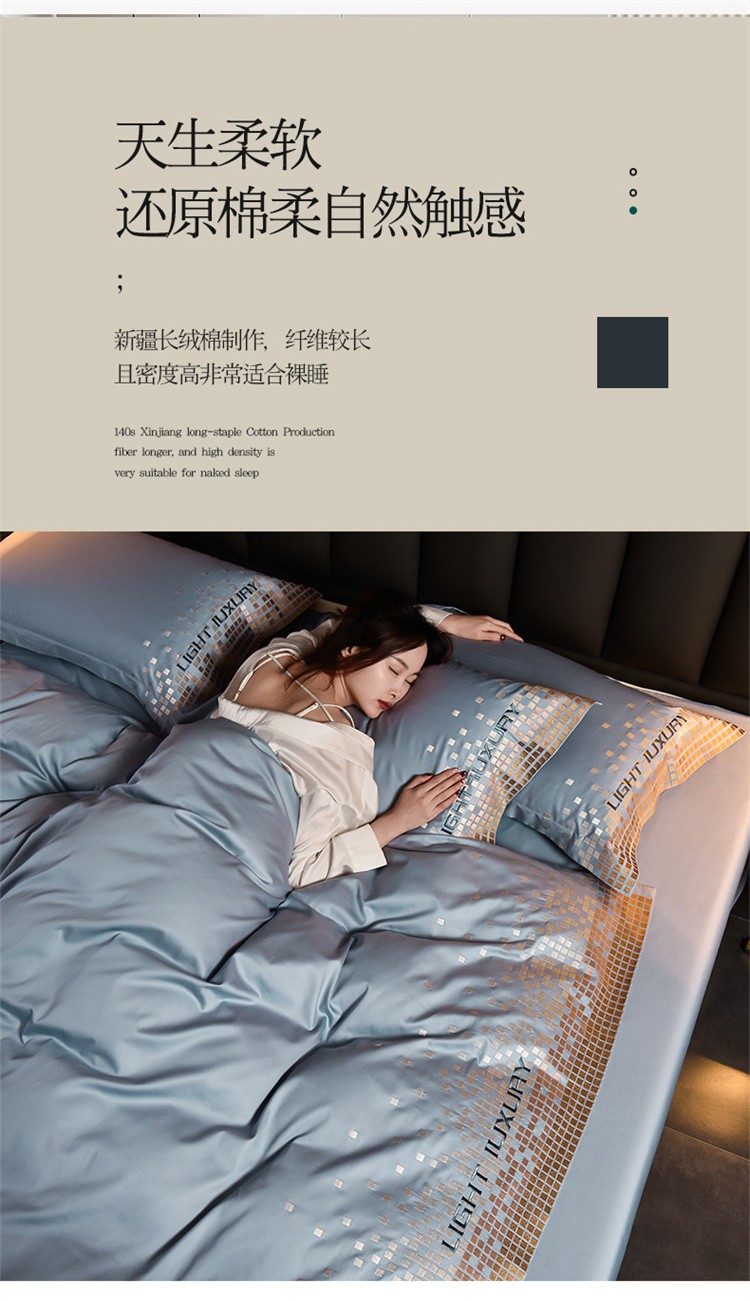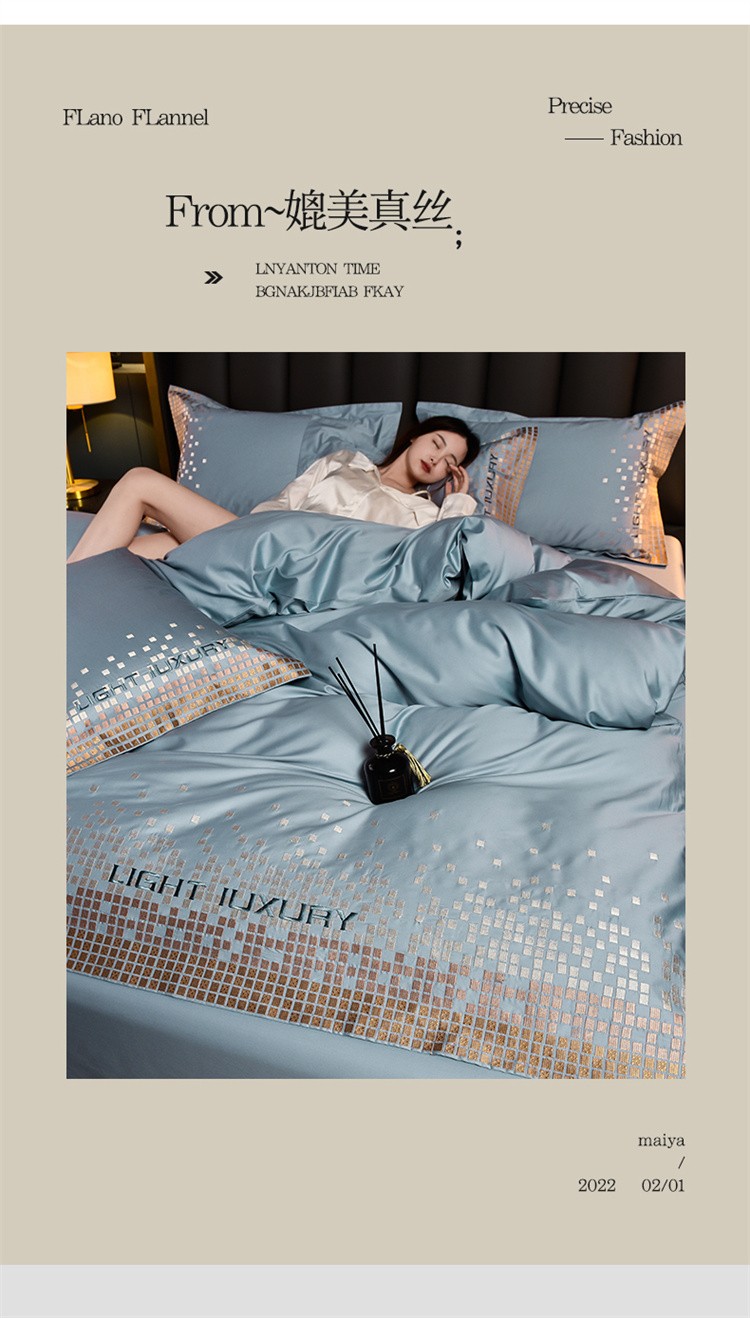 当前位置: 91家纺网 > 商品网购 > 床品套件 > 四件套 > 长绒棉四件套 > 米奈 2024新款A类100S长绒棉刺绣四件套有质检报告-戴纳湖水蓝