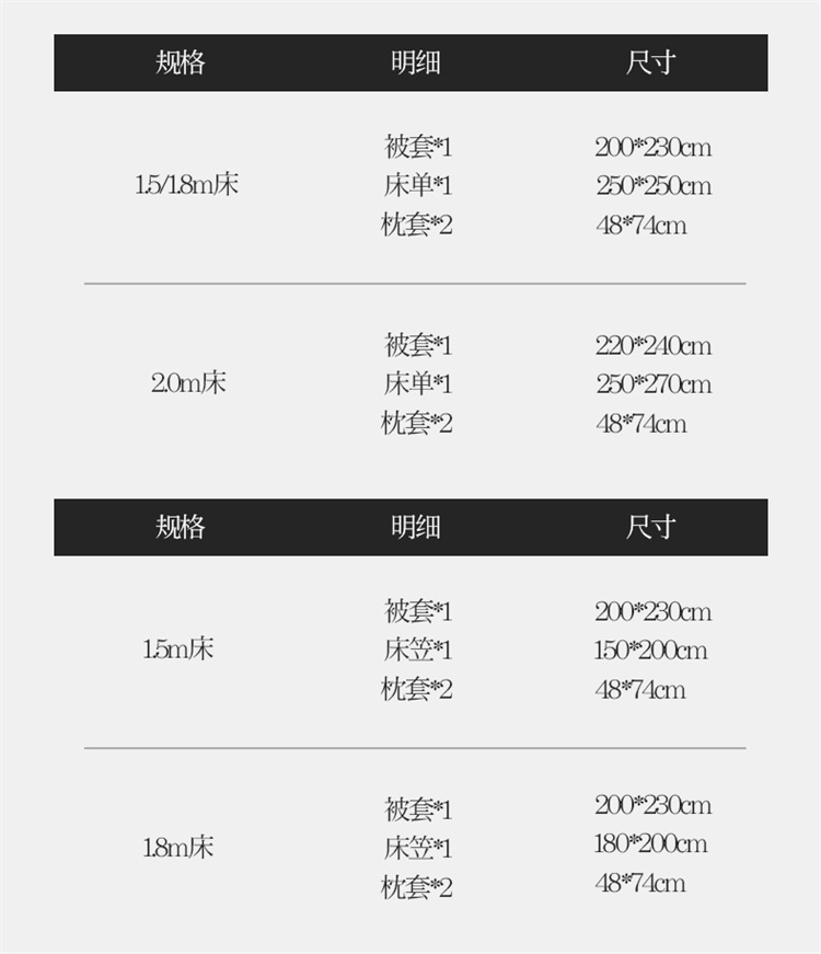 加大1.5m床笠款四件套床笠不退换 | ¥340.00 |